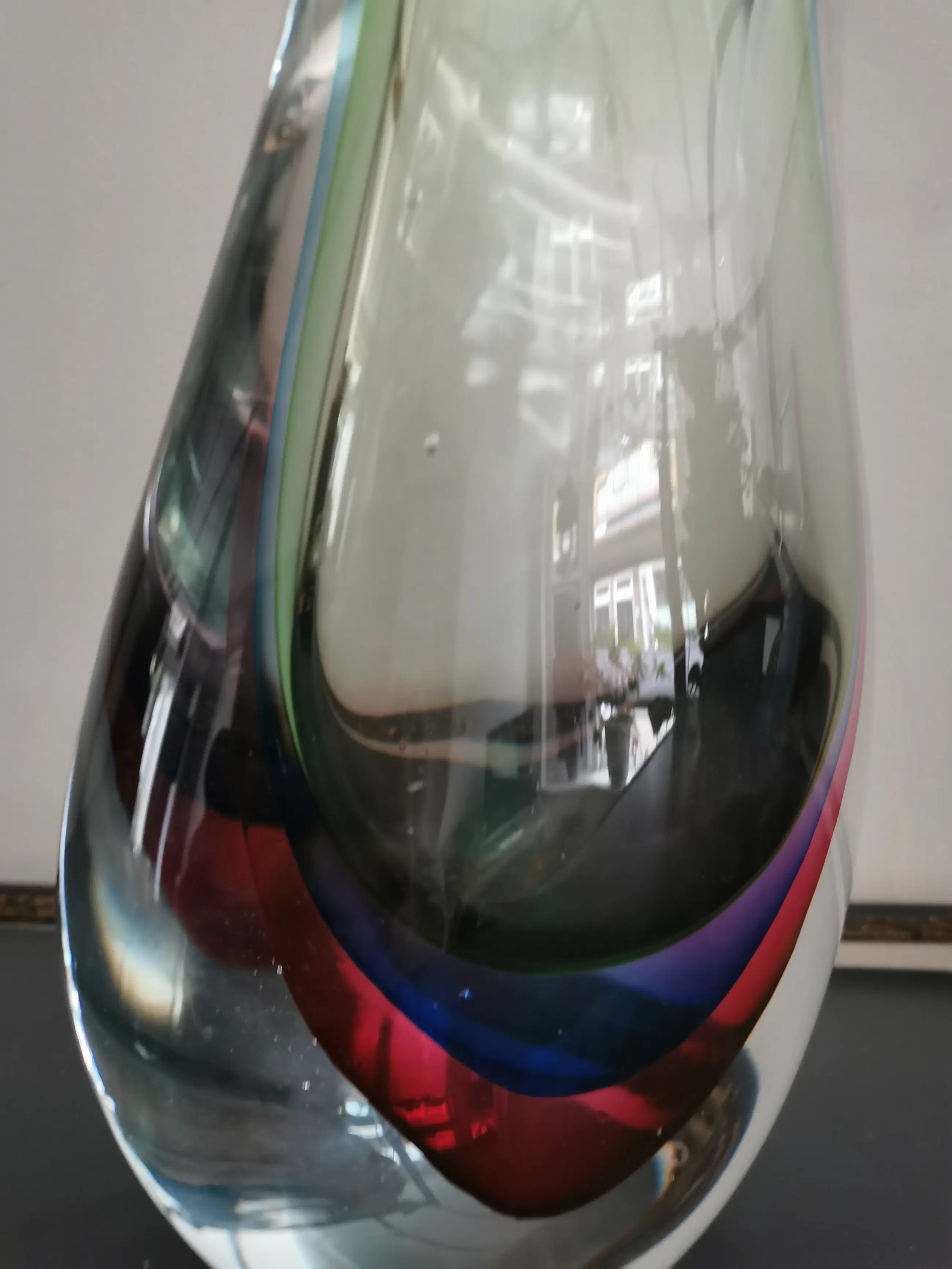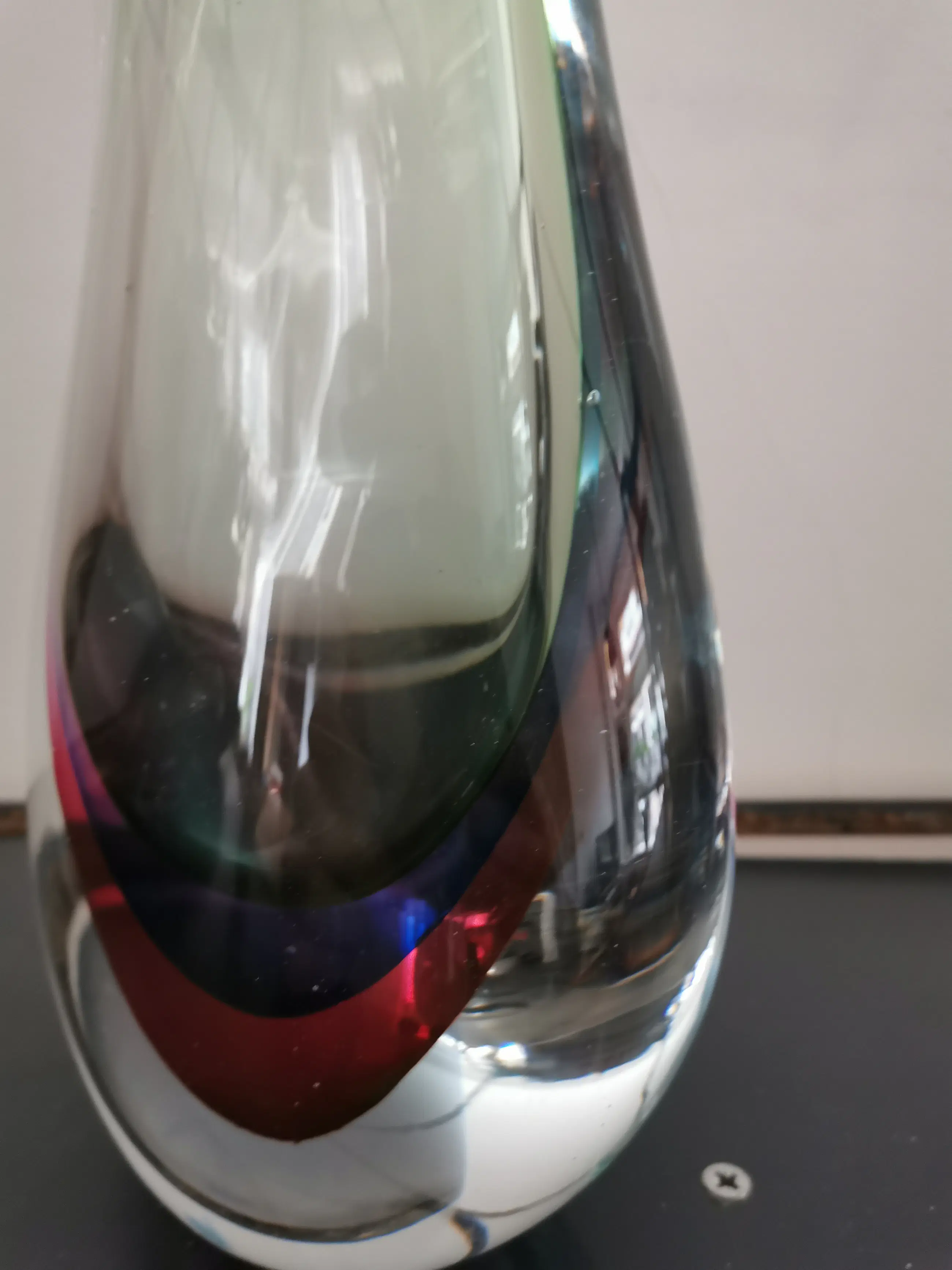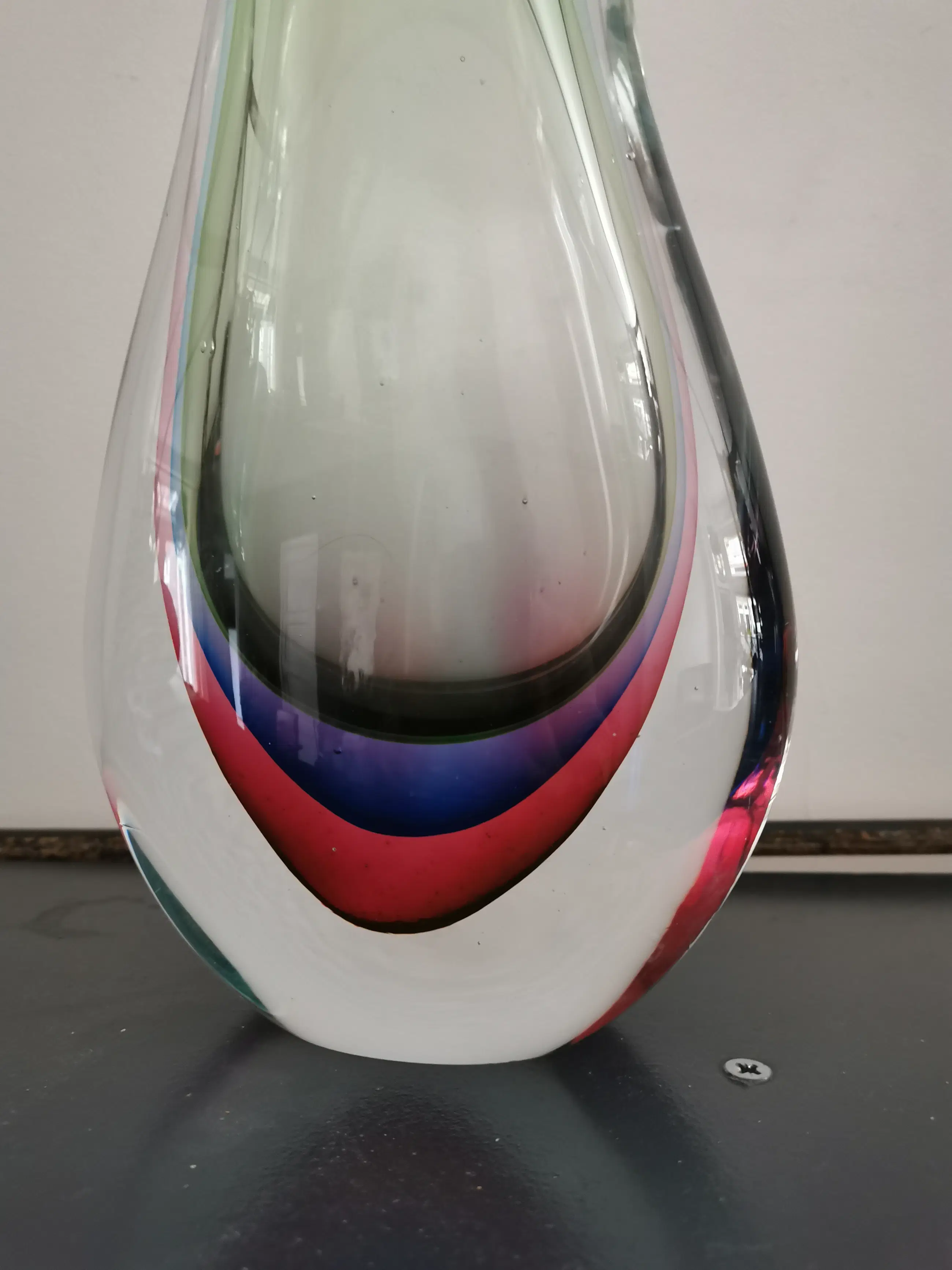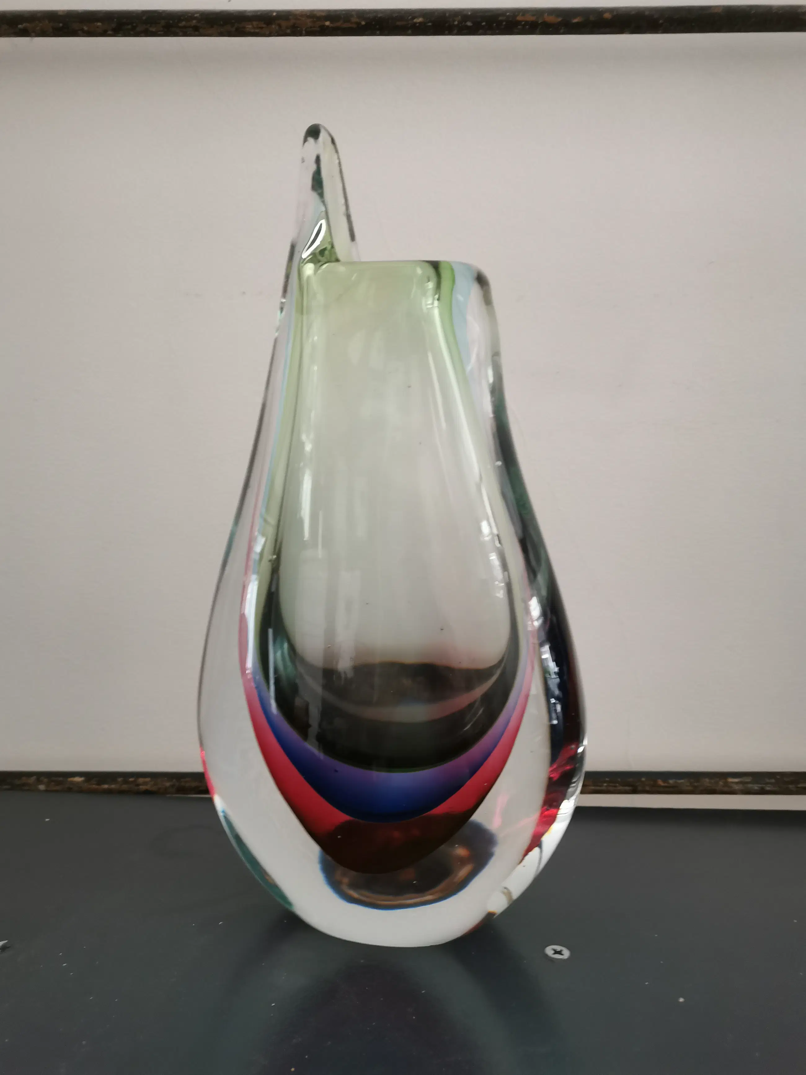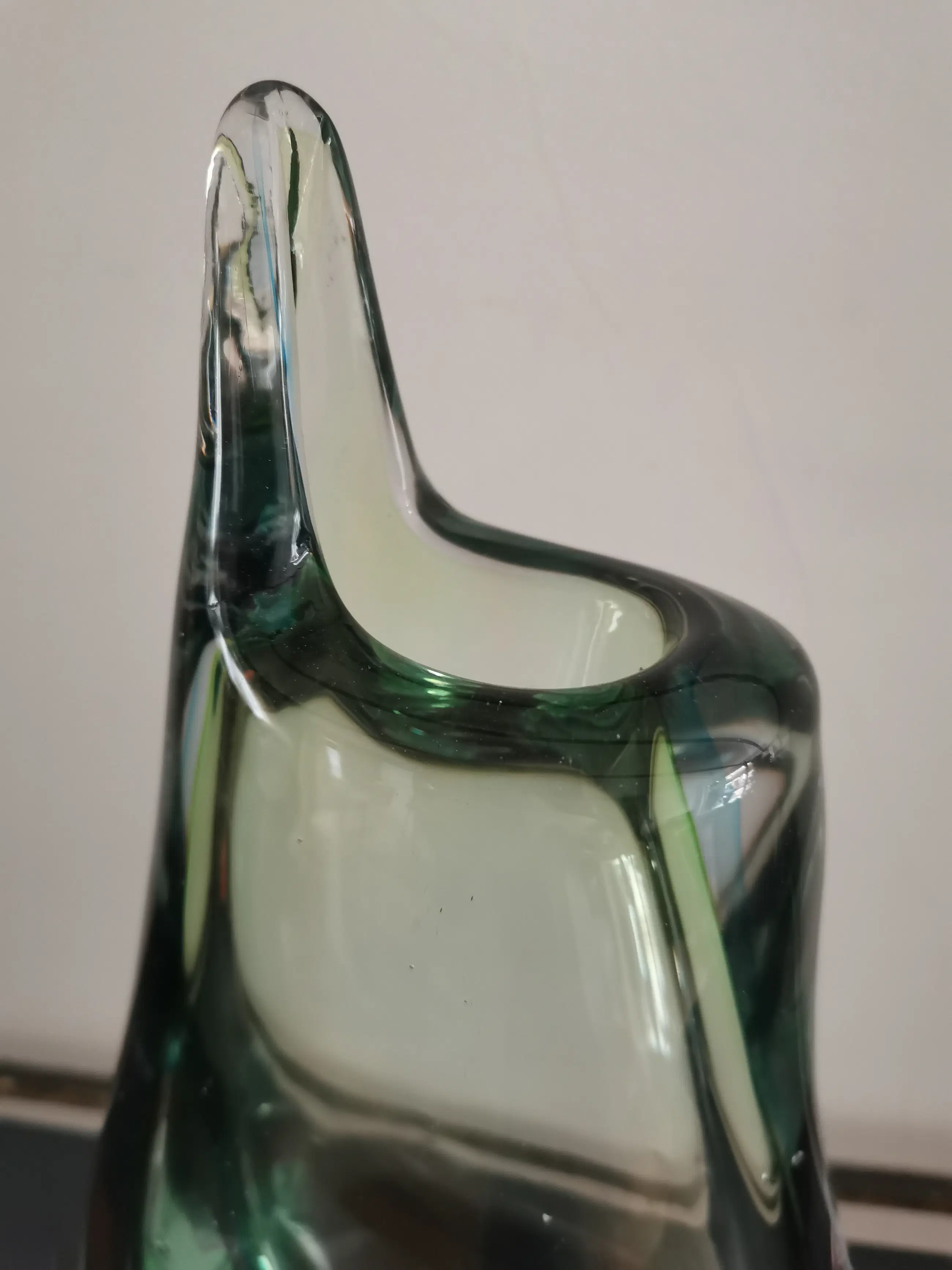 Prachtige gedetailleerde Sommerso snavel vaas die uitloop in een punt, waarschijnlijk gemaakt door Flavio Poli voor Seguso arte uit Murano Italië.