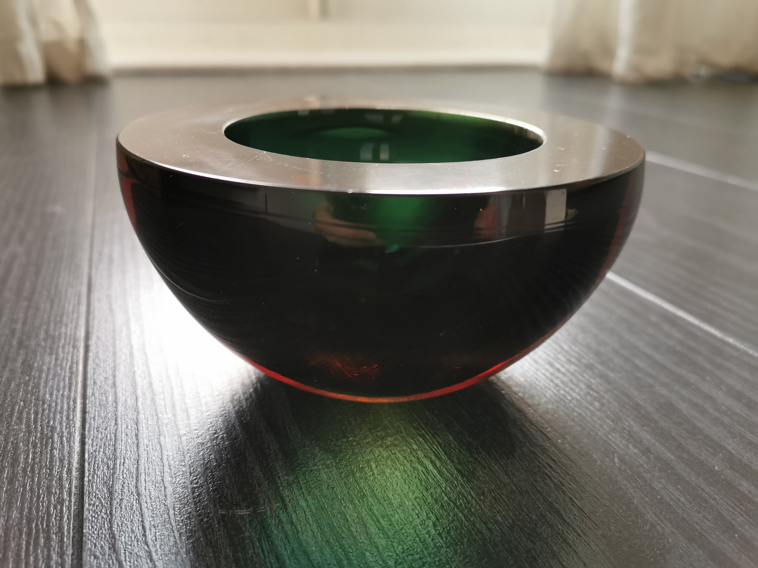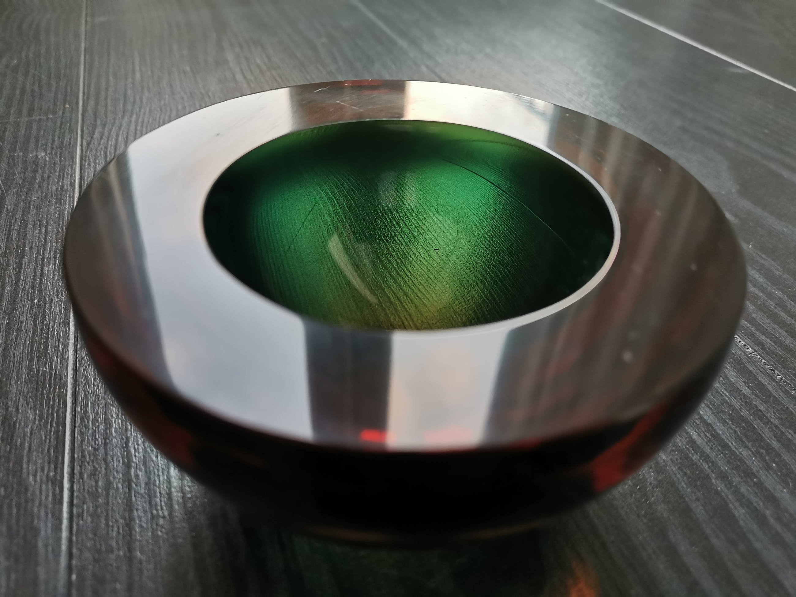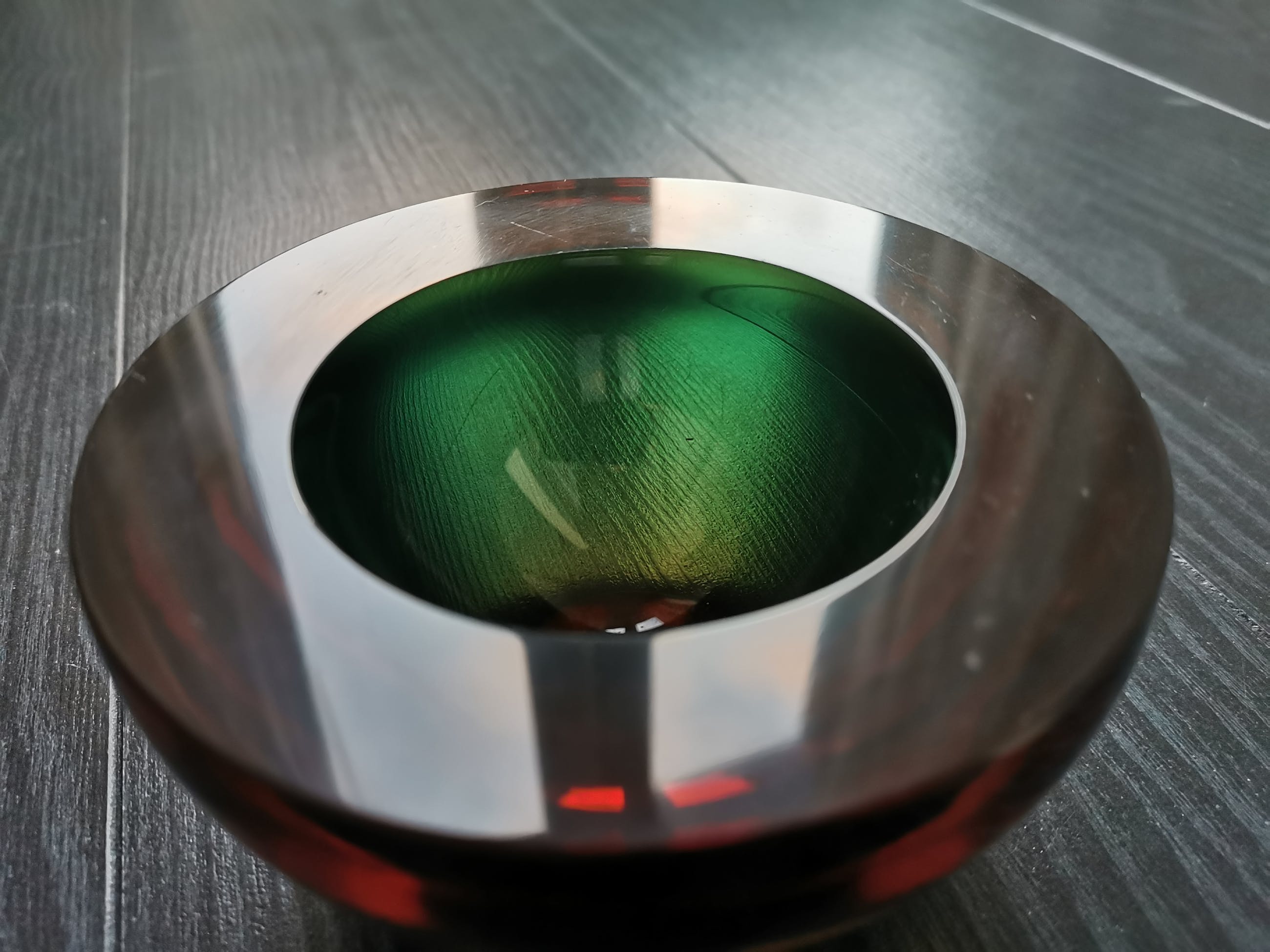 Prachtig schaaltje van Murano in de sommerso stijl van Flavio poli waarschijnlijk, prachtige heldere kleuren van groen met oranje.