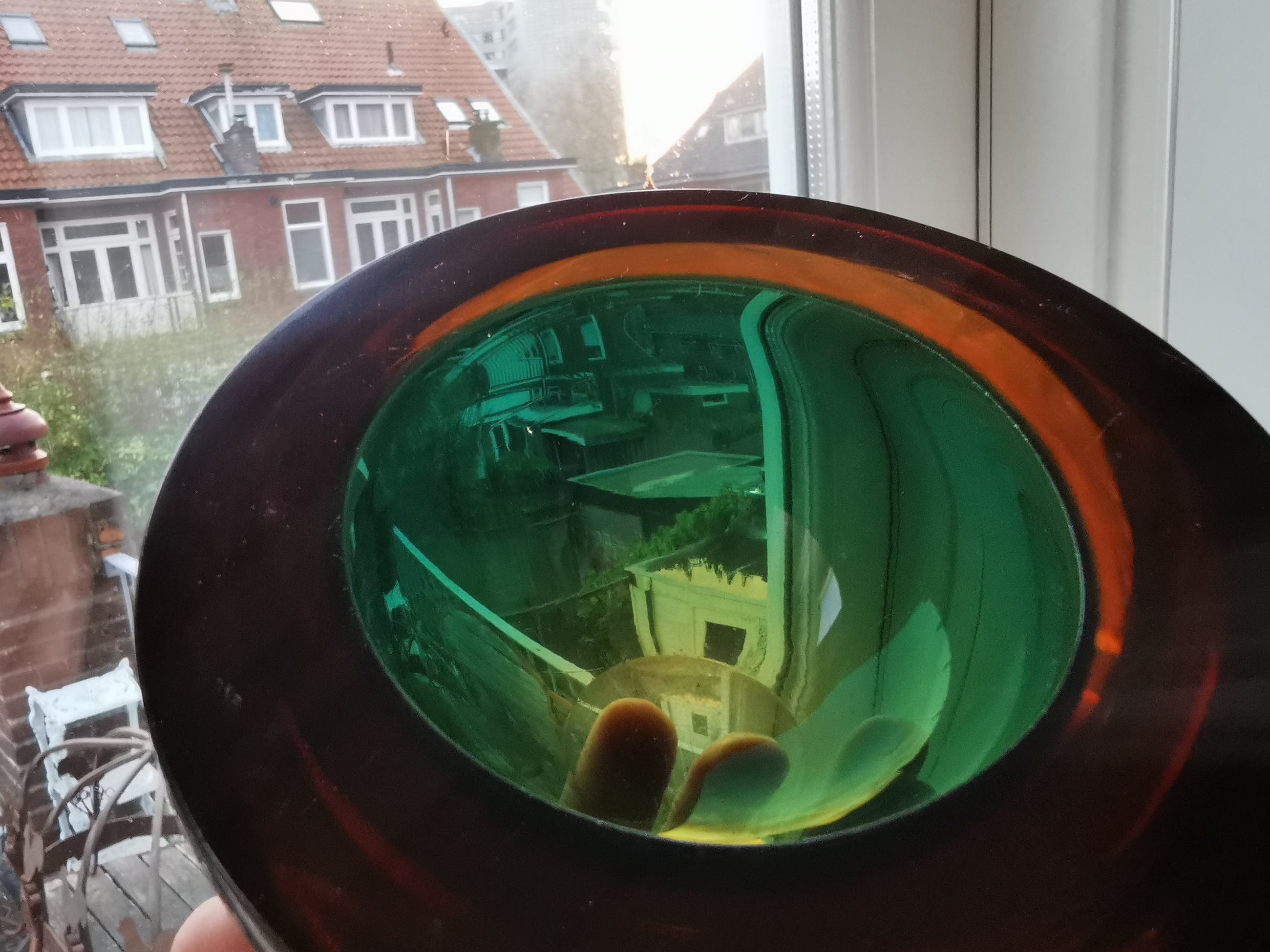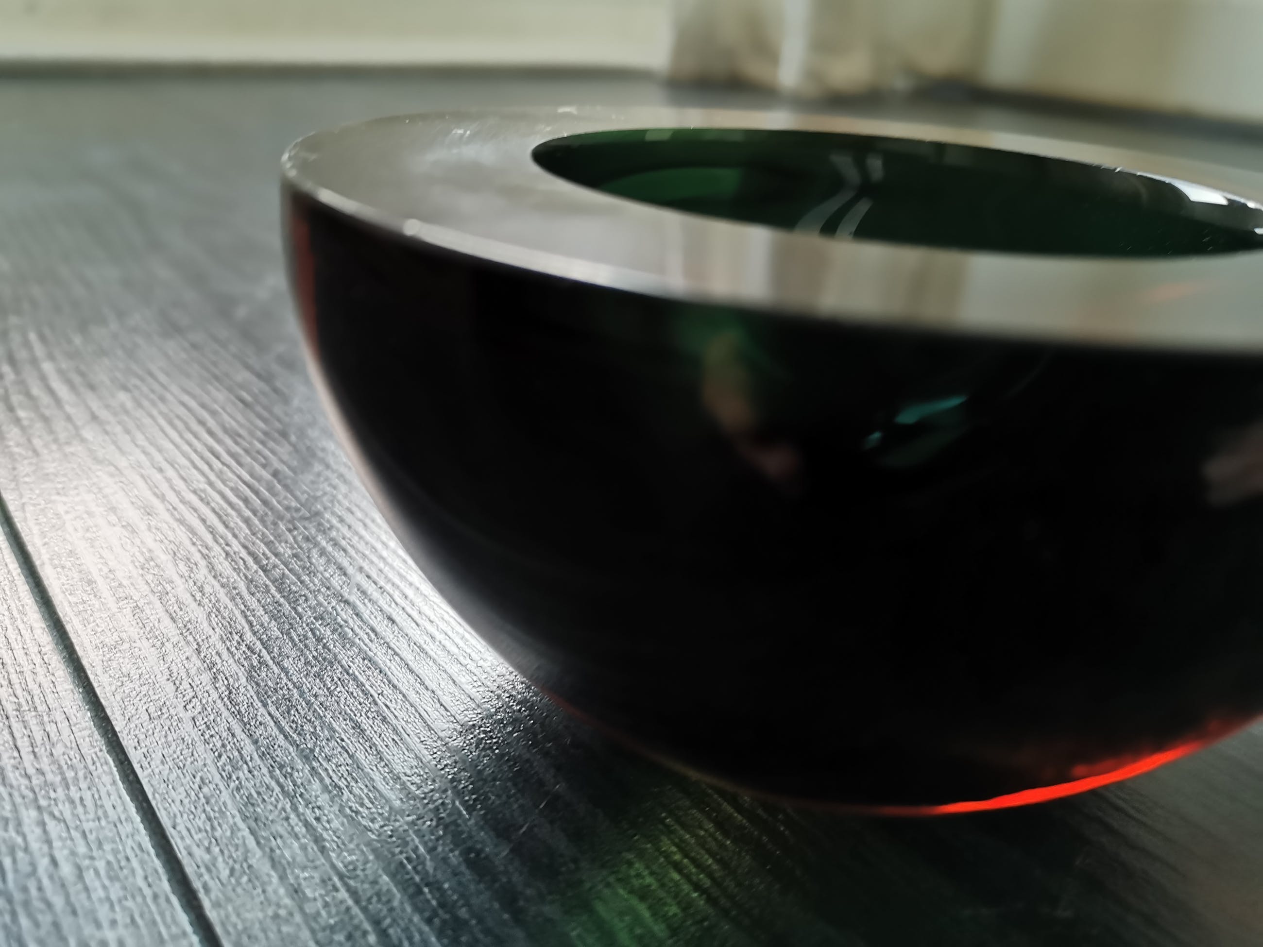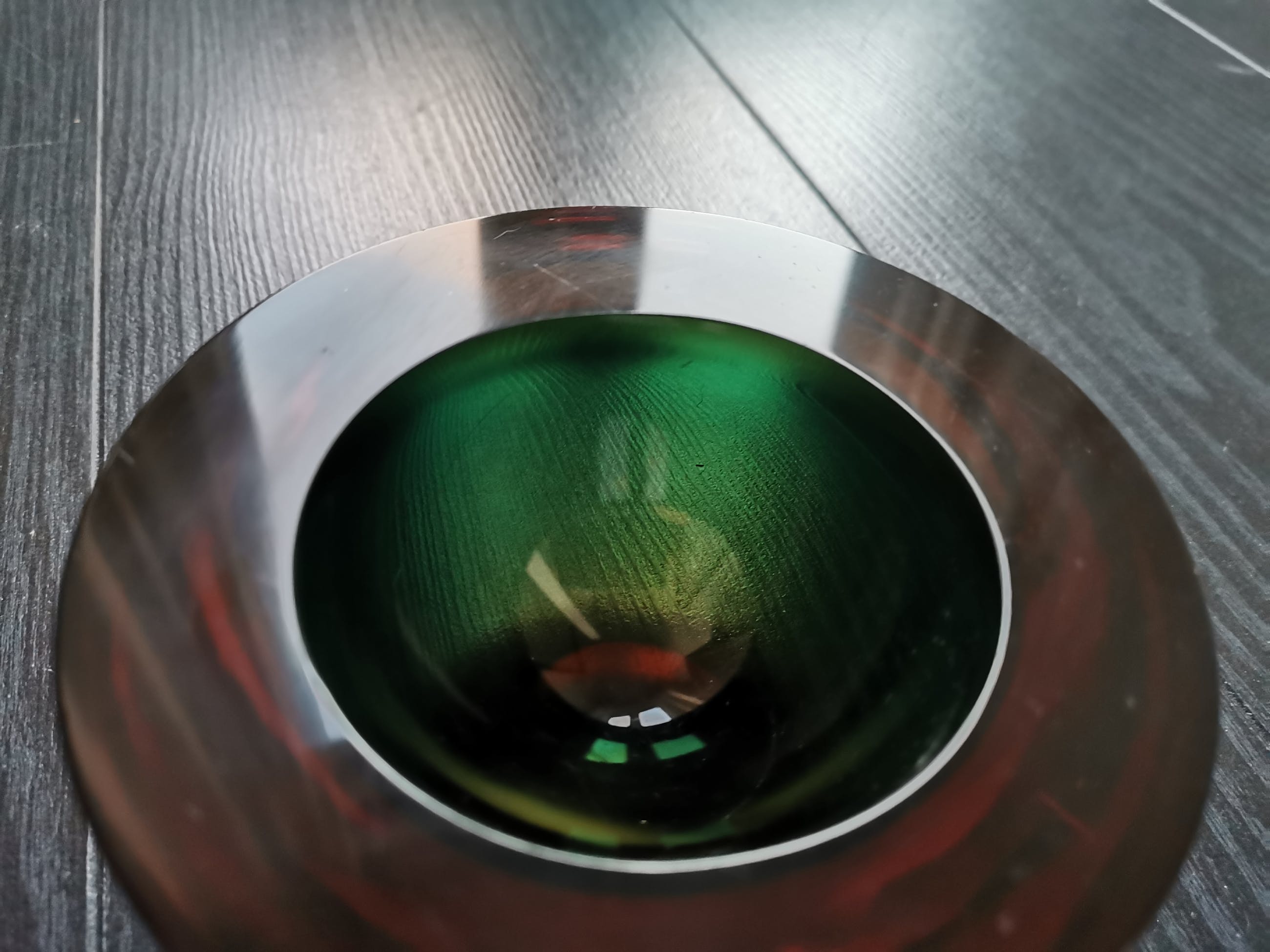 Prachtig schaaltje van Murano in de sommerso stijl van Flavio poli waarschijnlijk, prachtige heldere kleuren van groen met oranje.
