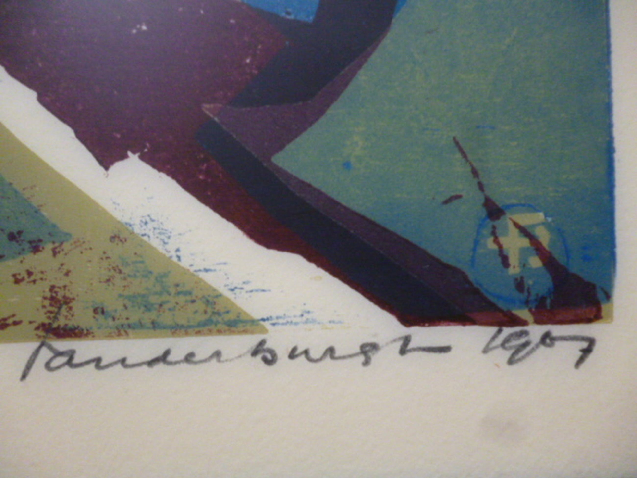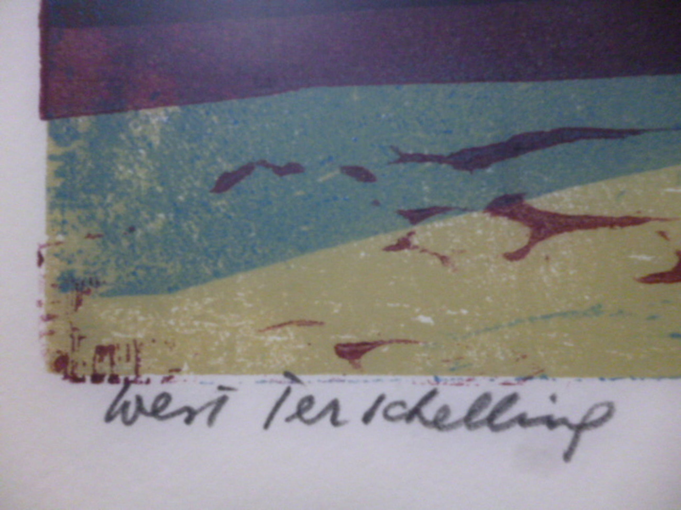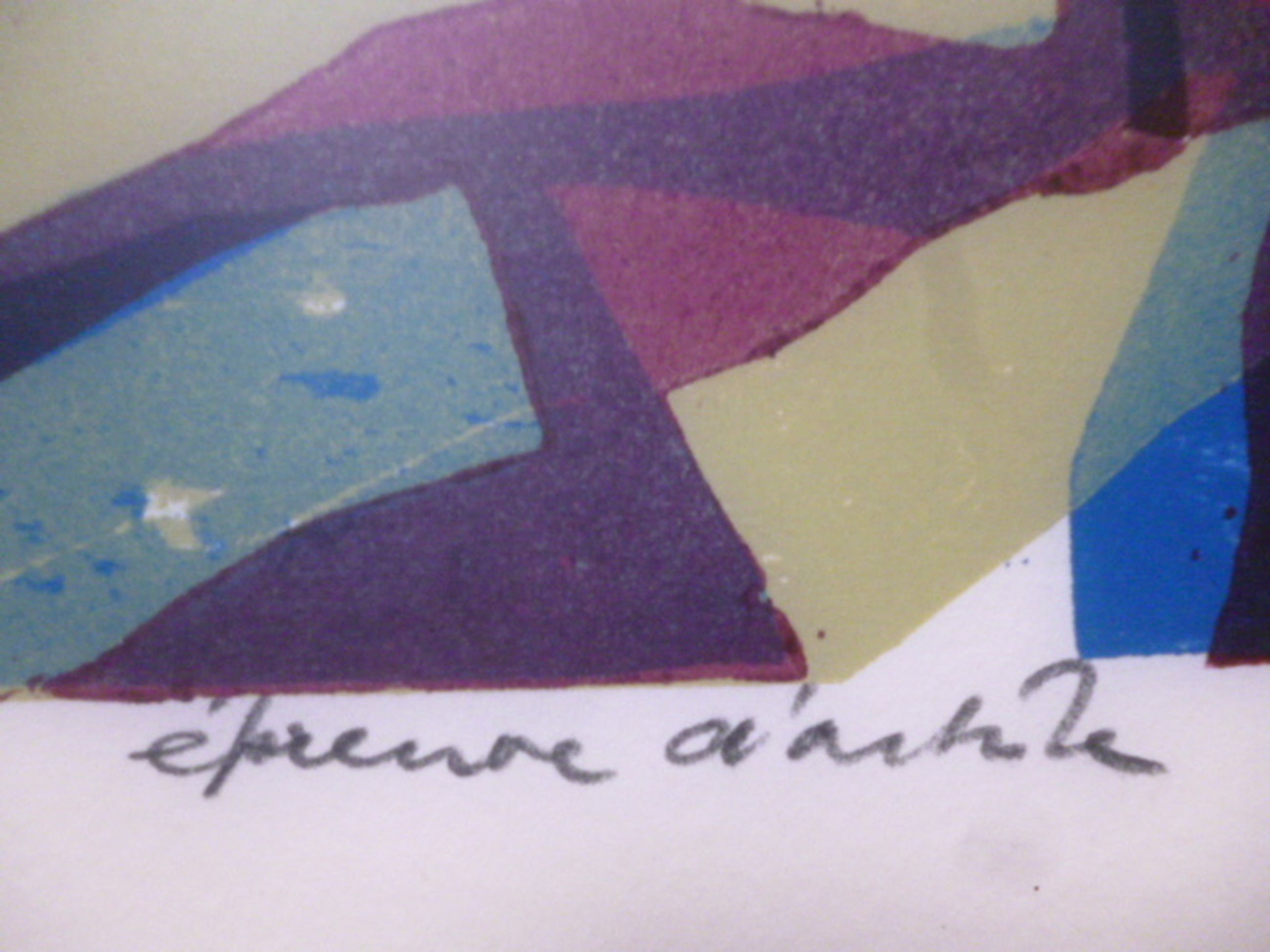 Prachtige kleurenlinosnede uit 1967. Gesigneerd en gedateerd rechtsonder.