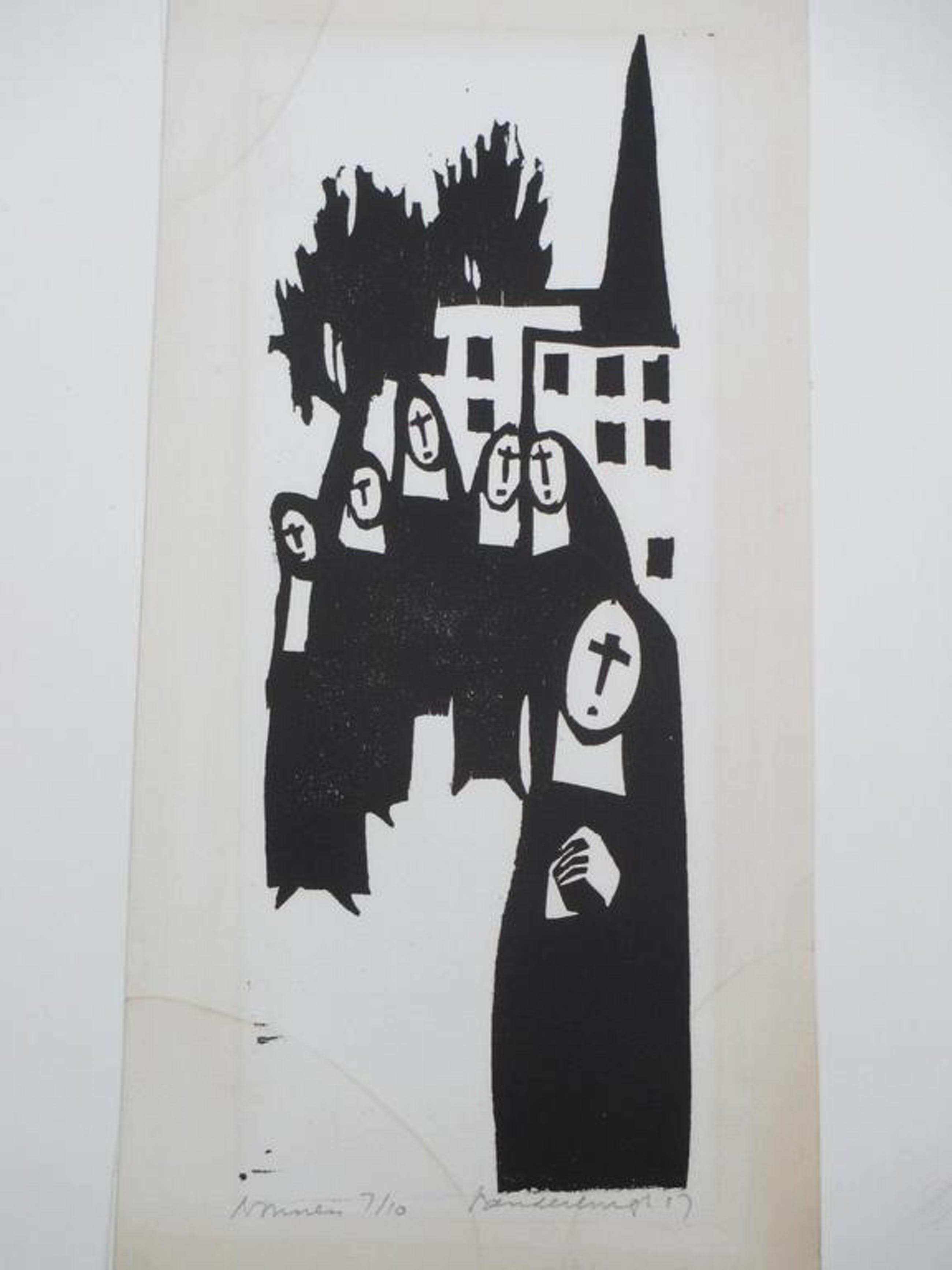 Gesigneerd r.o. 'FvanderBurgt', getiteld en genummerd l.o. 'Nonnen' en '7/10'