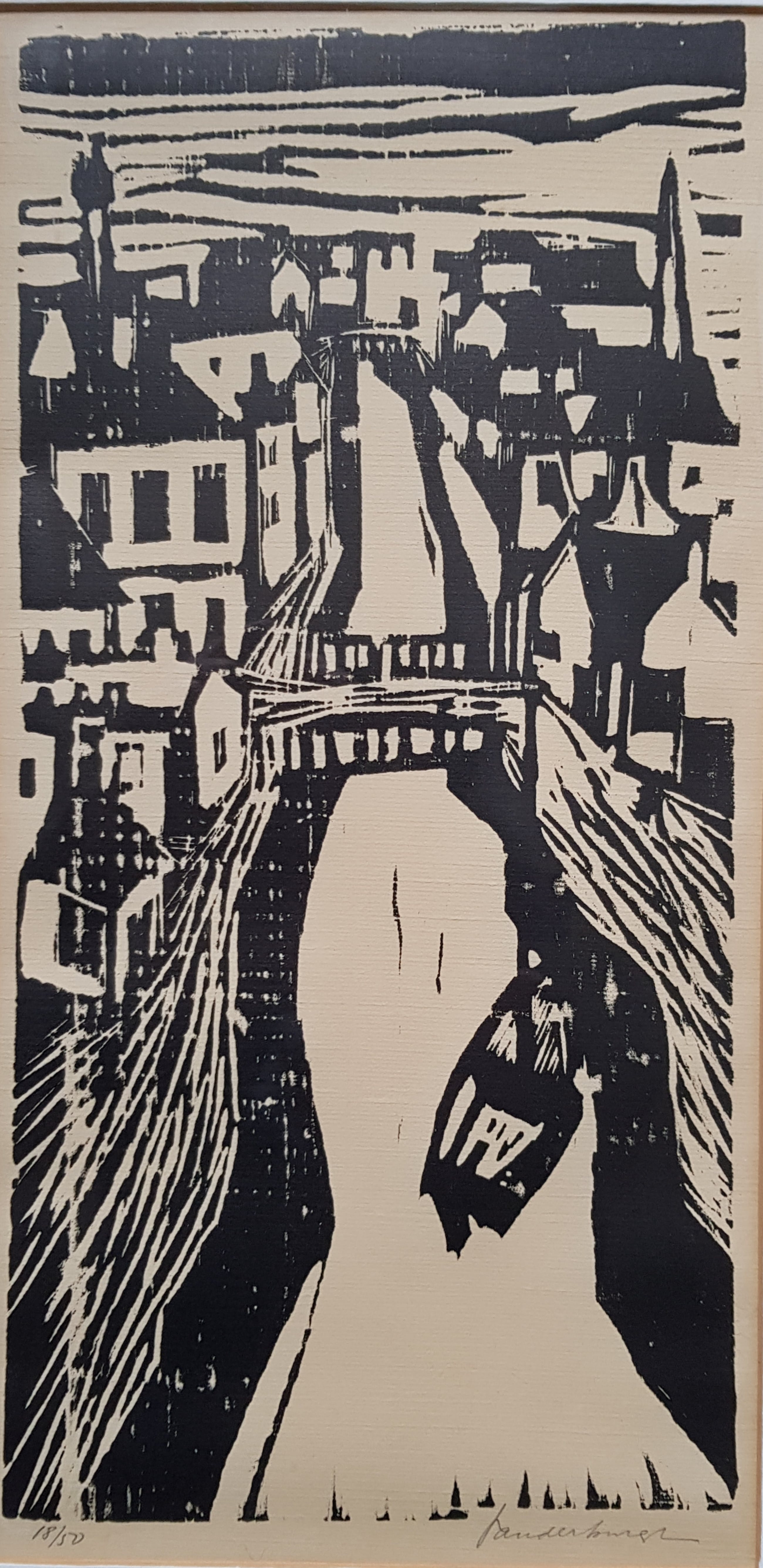 Nr 18 van 50 ex. Authenciteit gewaarborgd. Houten lijst heeft lichte gebruikerssporen.