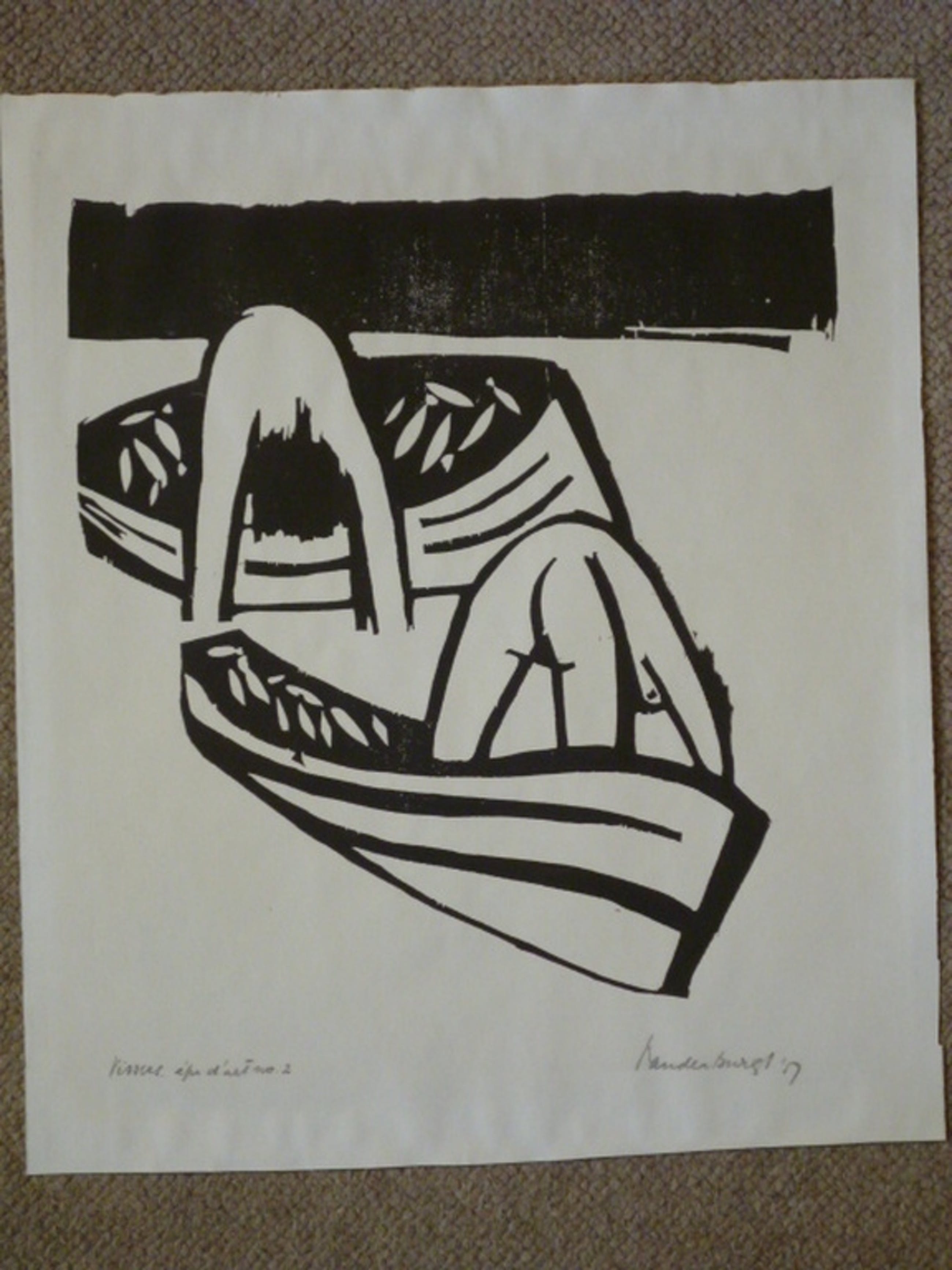 Linosnede, potlood gesigneerd en gedateerd '57 rechtsonder. Getiteld en epr. d'art no.2 linksonder.