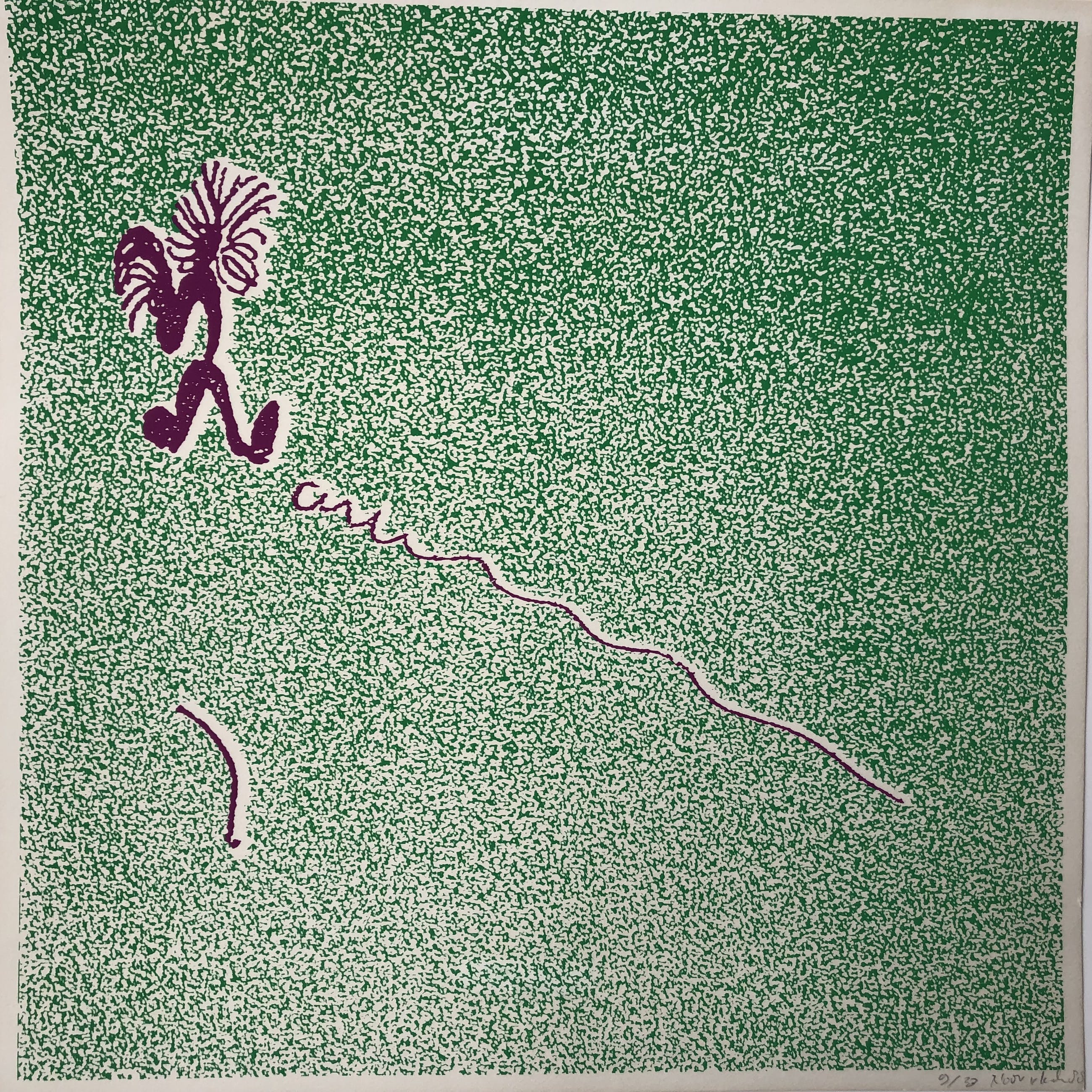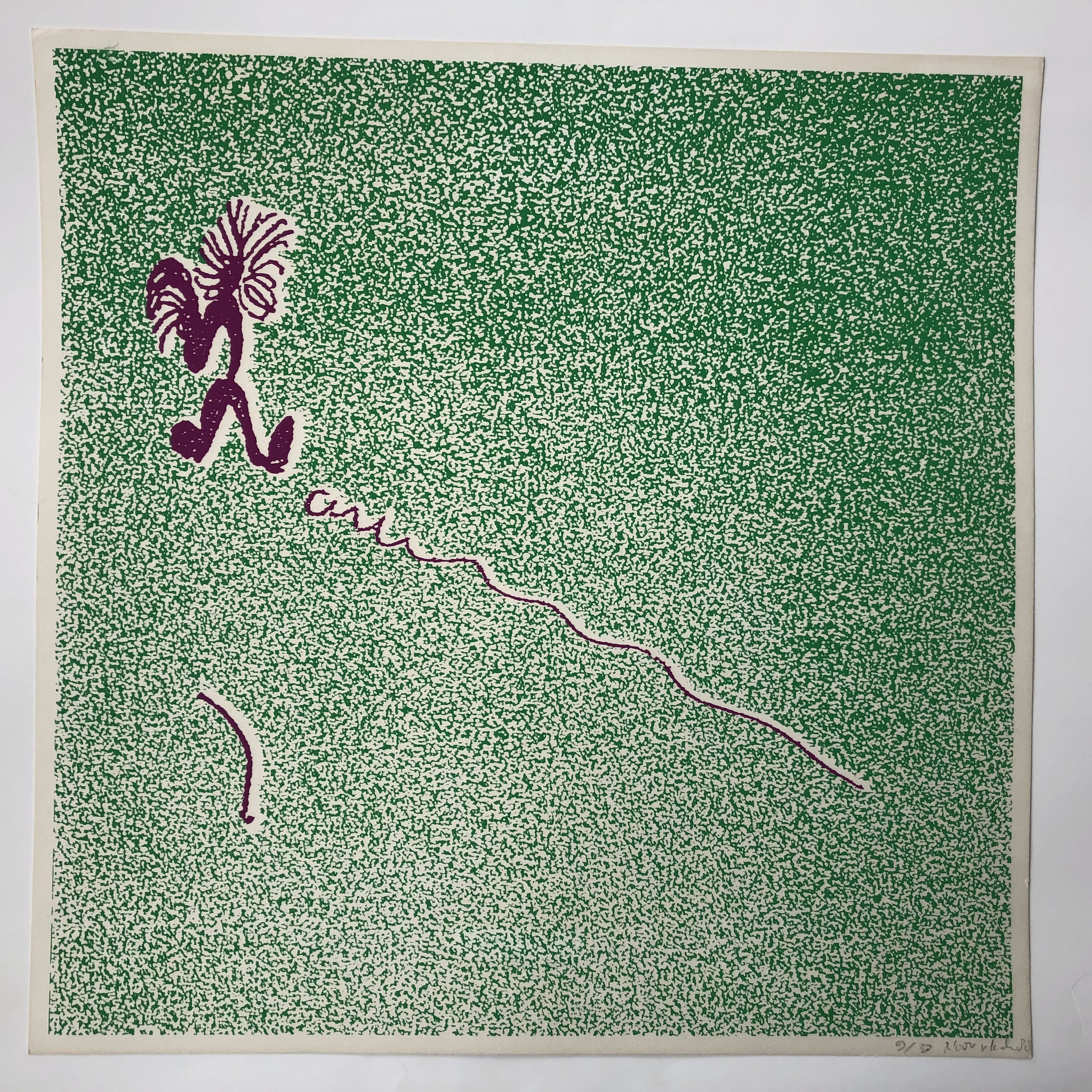 Leuk vierkant werk van Floor van Keulen. nU kunt de zeefdruk vooraaf komen bekijken of na aankoop afhalen in onze galerie in Gorcum of per aangeteknde post toegestuurd krijgen.