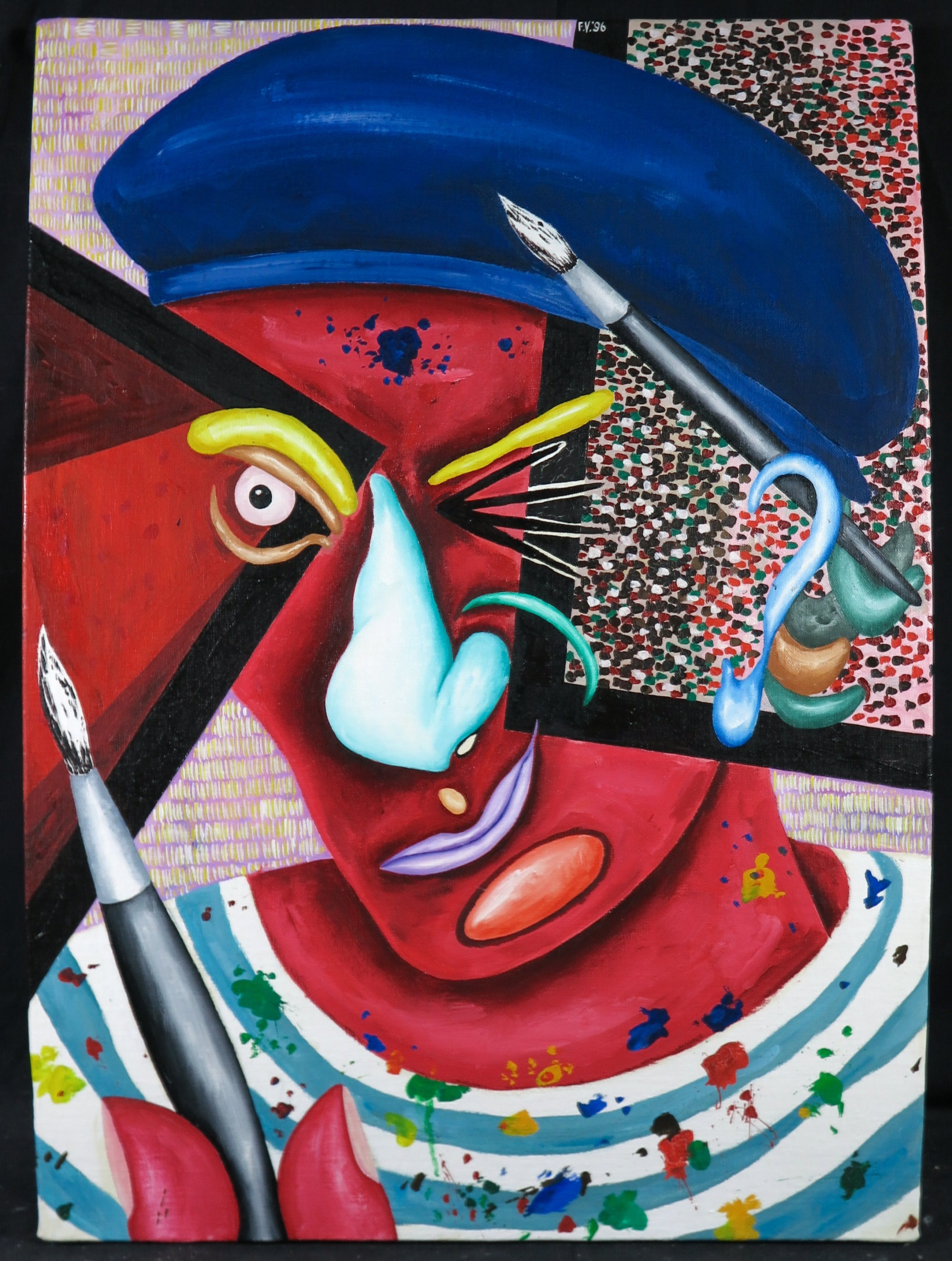 Het doek is bevestigd op een gebogen raamwerk. Het werk is 7 cm diep op het dikste punt.