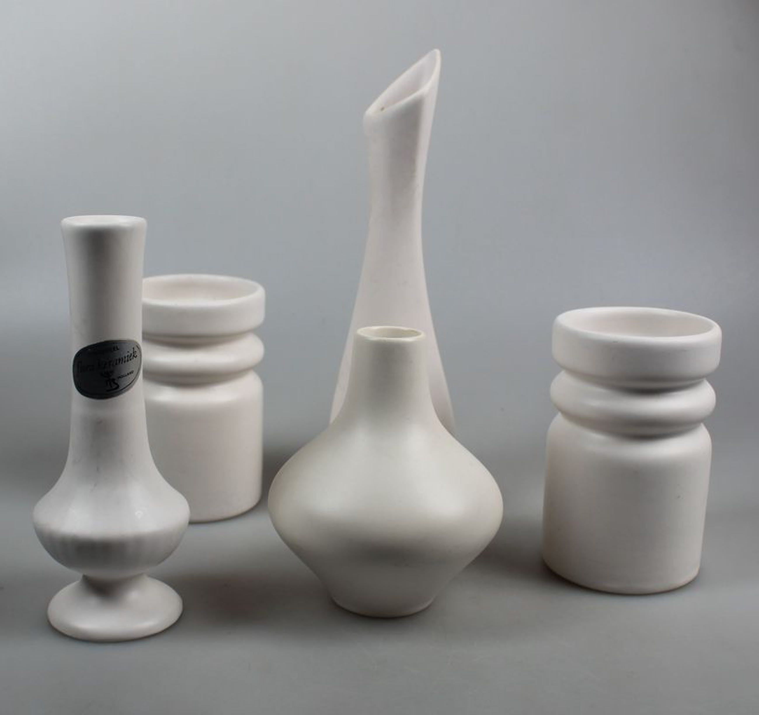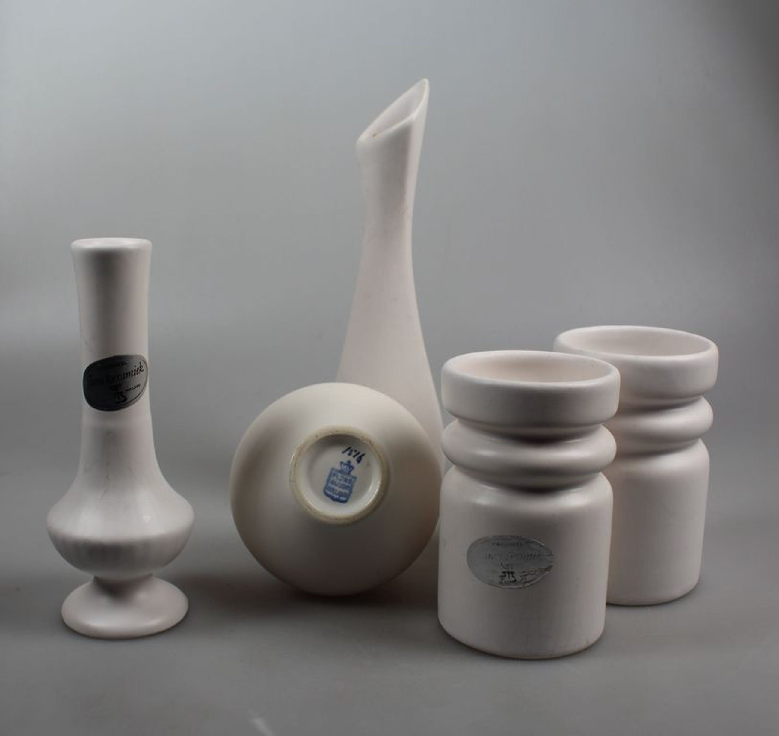 Flora Gouda 5 vaasjes 1960's-1970's. Alle in goede onbeschadigde staat, gemerkt en/of gelabled. Hoogte ca 10 - 21 cm.