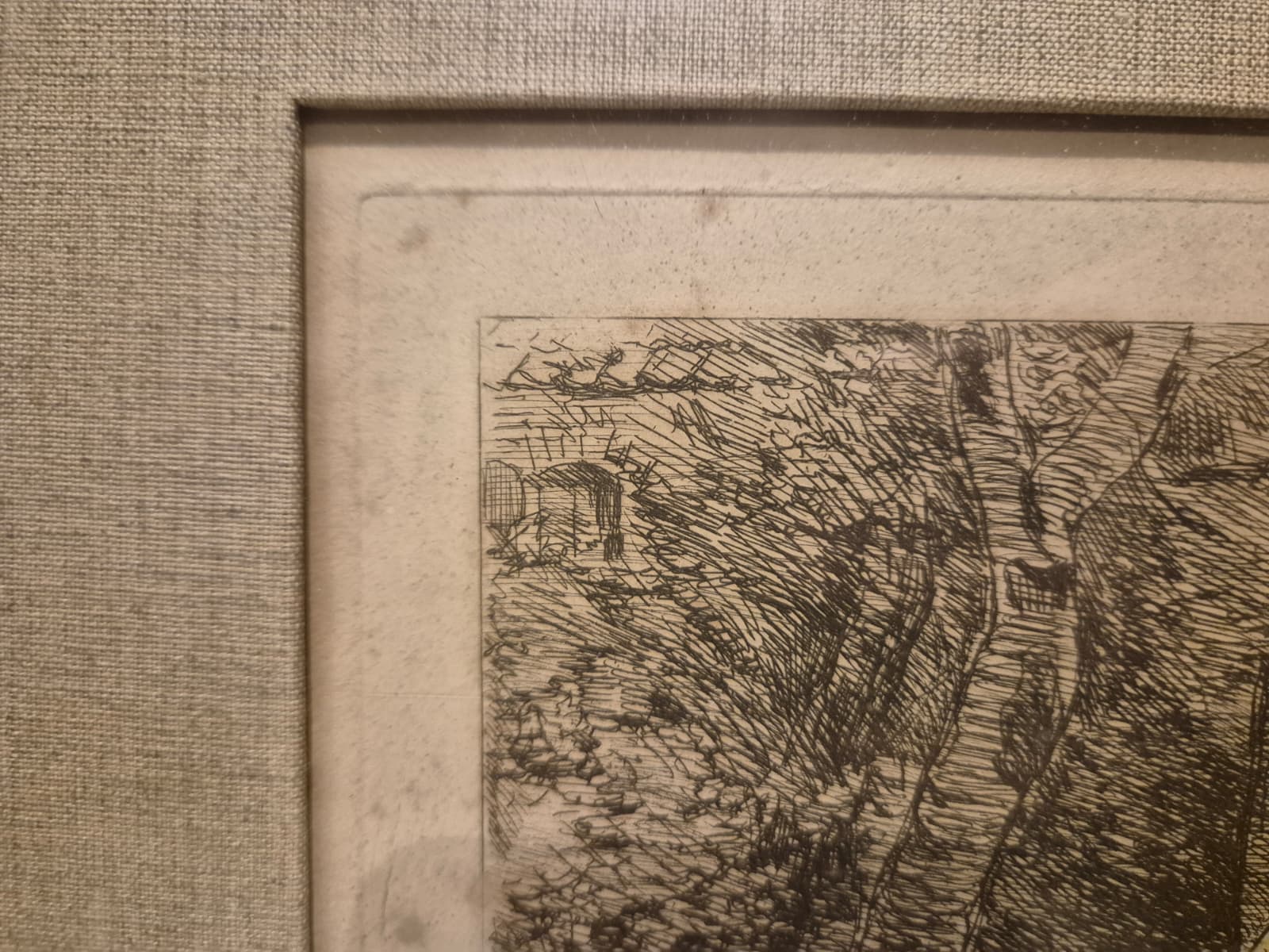 Ingelijst in een eenvoudige lijst (met mooi oud passe partout) van lijstenmakerij Arco in Hasselt). De lijst heeft wat kleine schades in de zwarte rand. De prent is vergeeld en heeft de bekende (zuur)vlekjes.