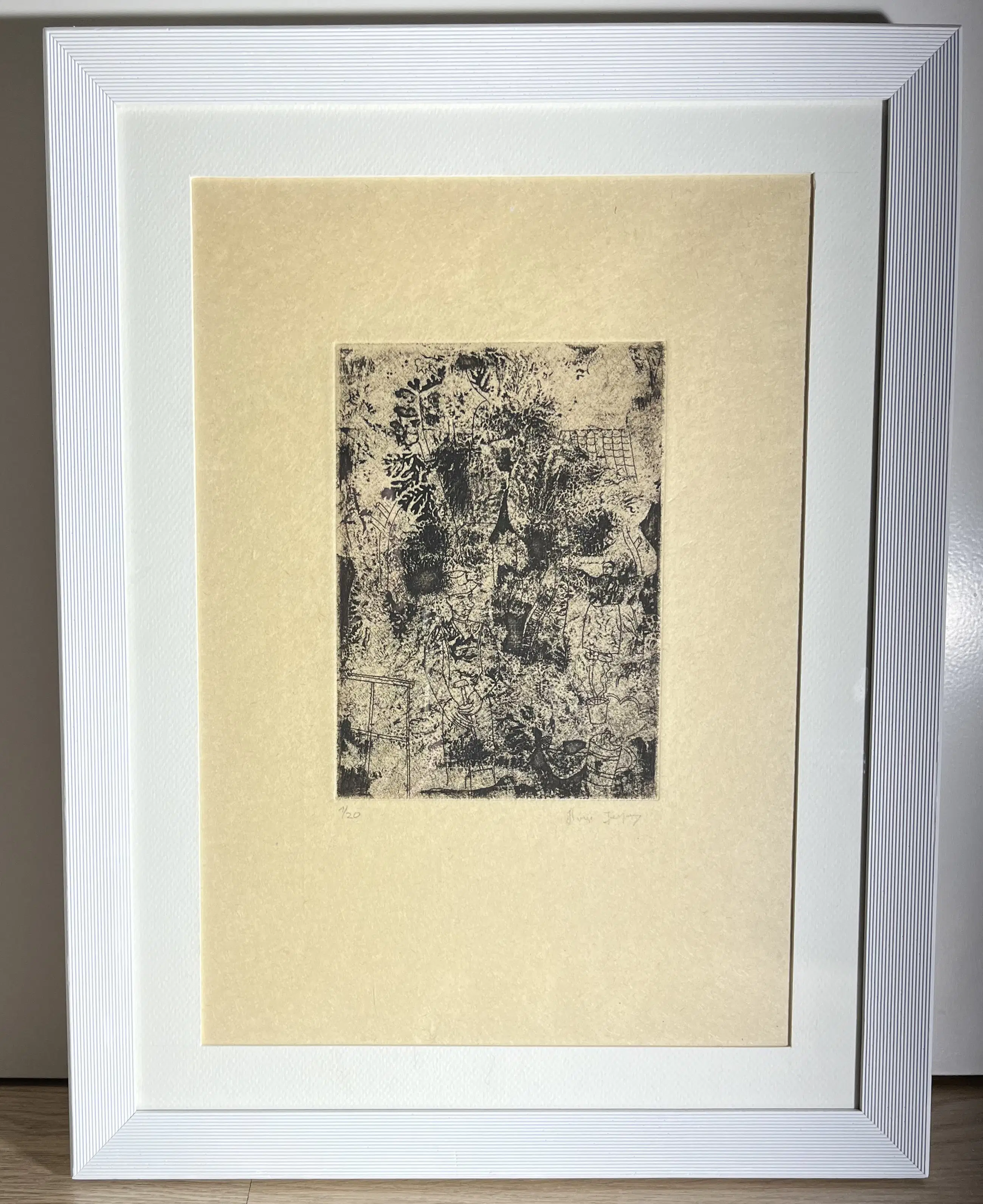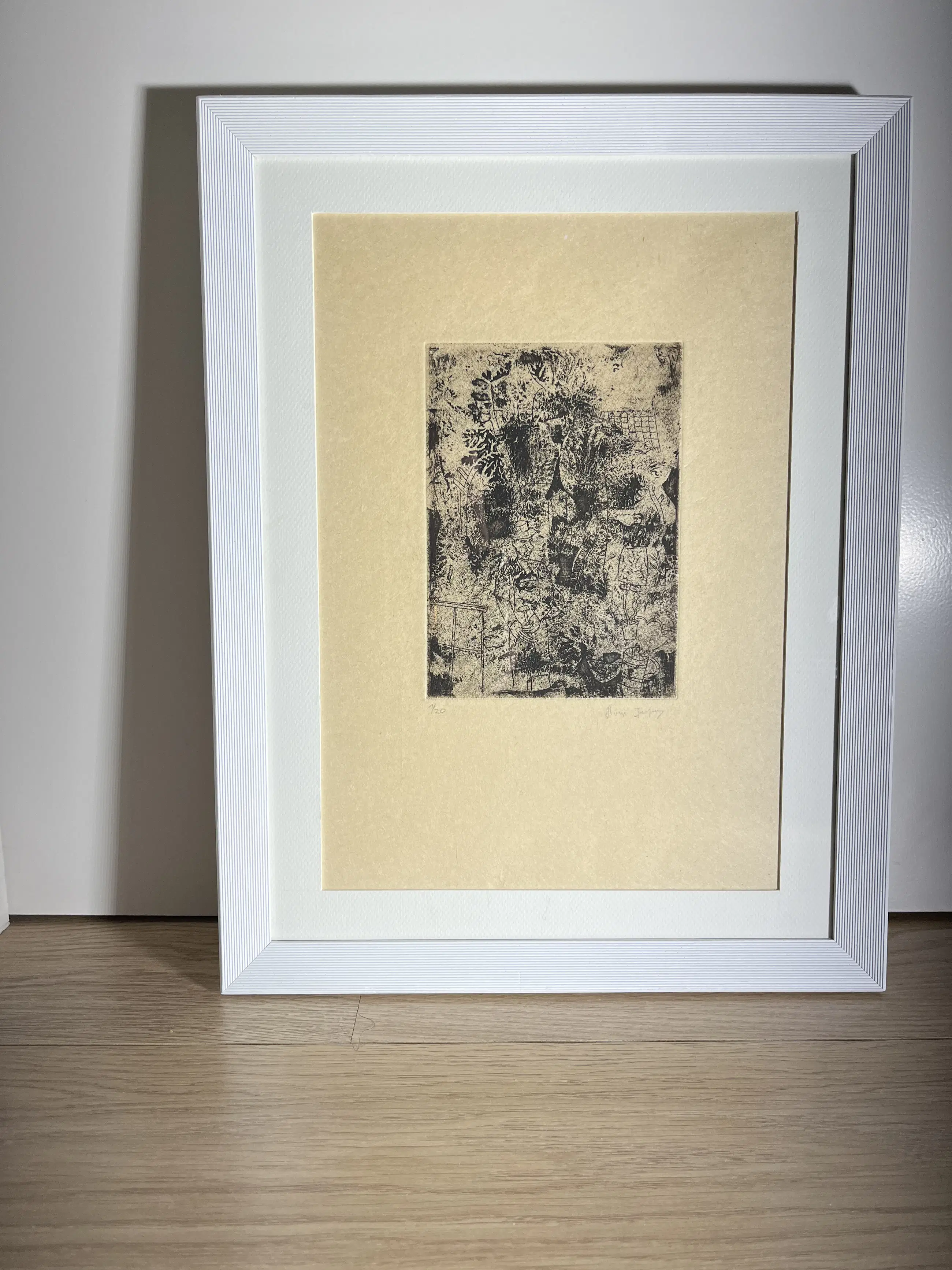 Netjes ingelijst, werk achter glas Werk en lijst in goede conditie
