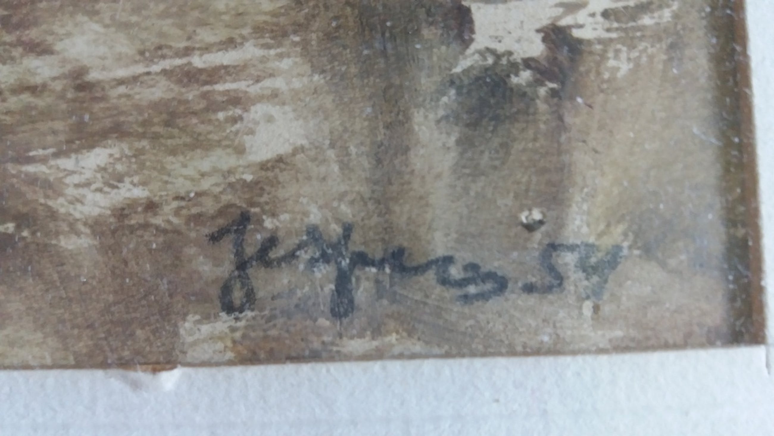 Schilderij van Floris Jespers 1959 "stadszicht" 45cm x 55cm.