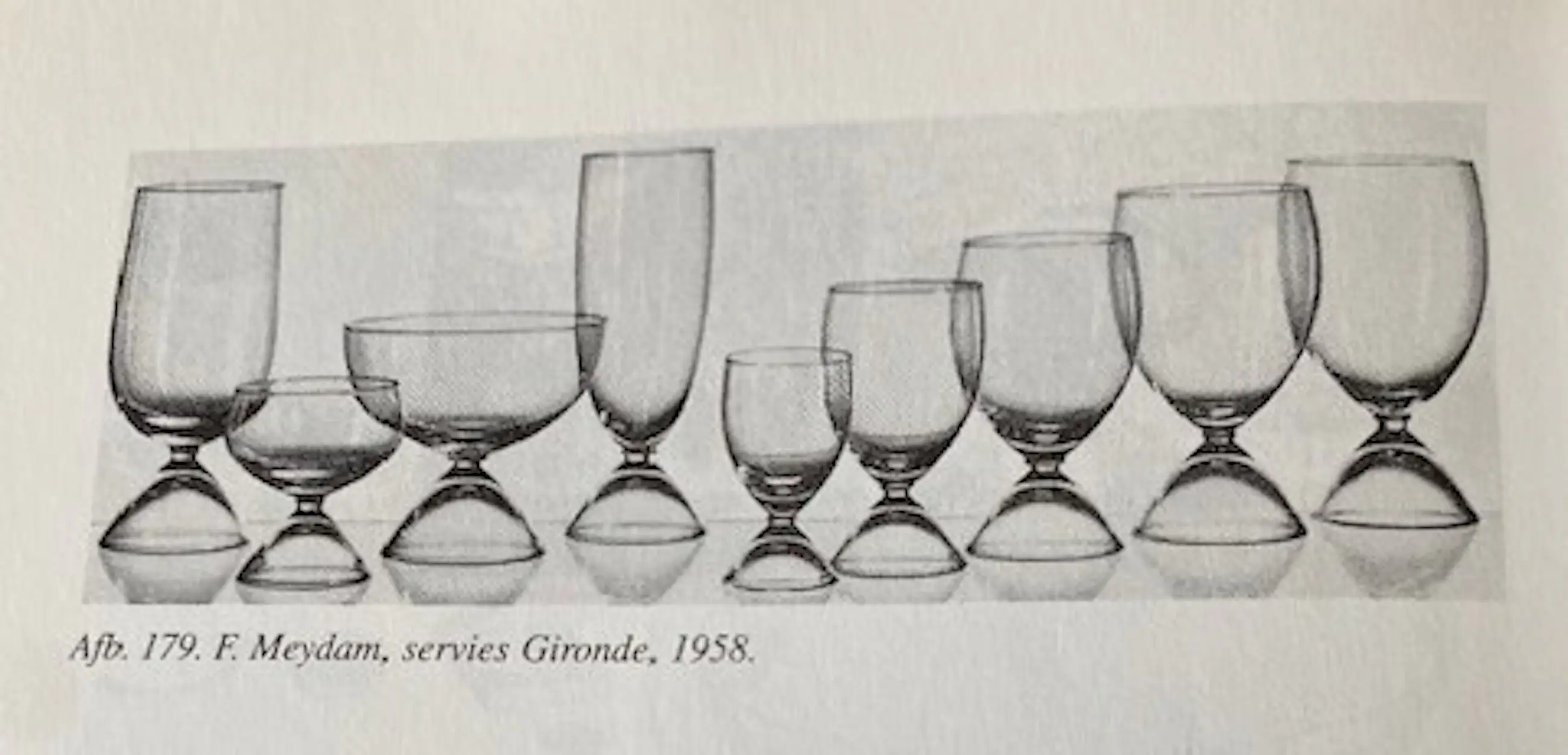 Het eerste machinale vervaardigde servies van Meydam. Gebaseerd op de kelk van het Gilde glas.