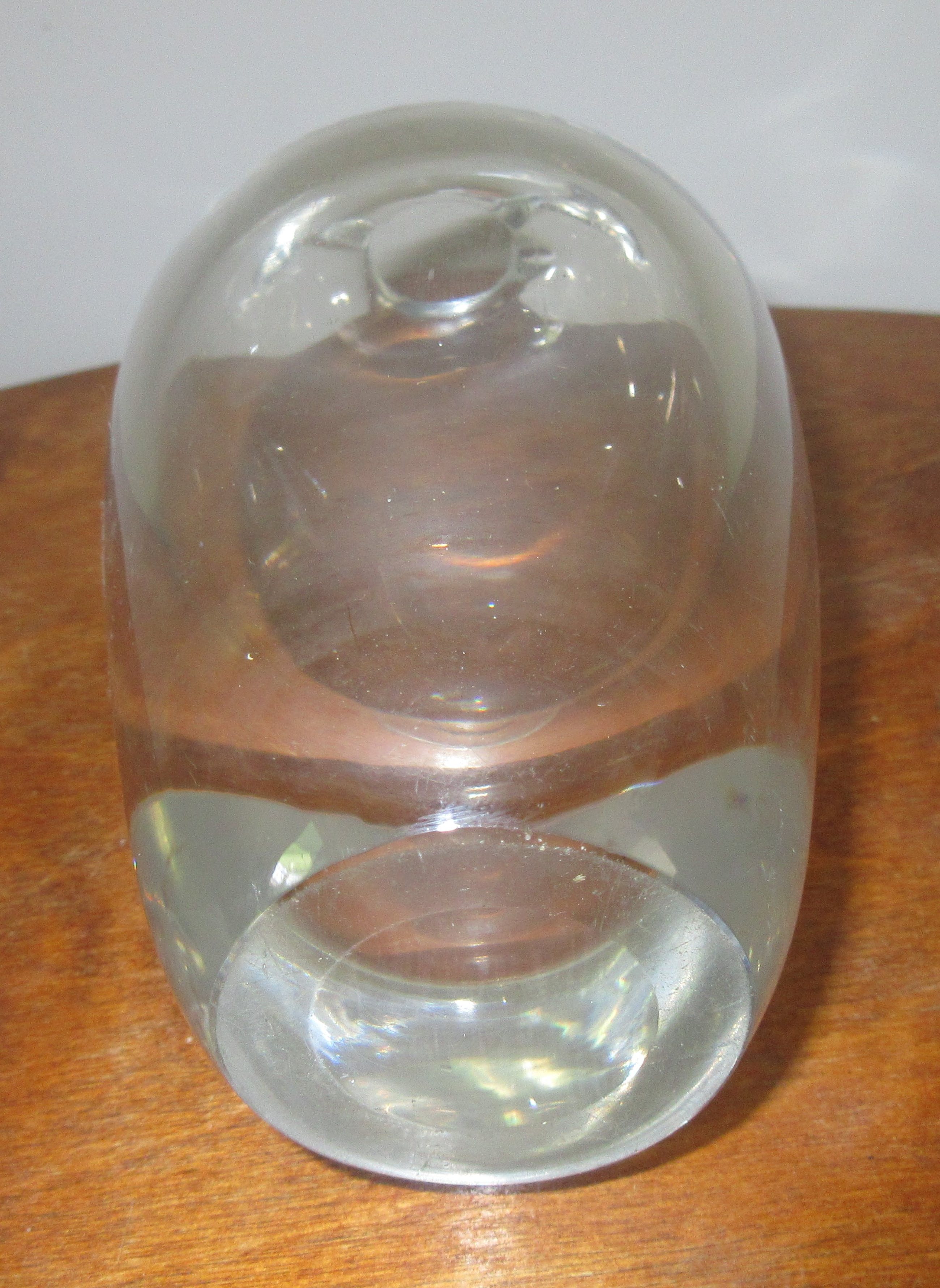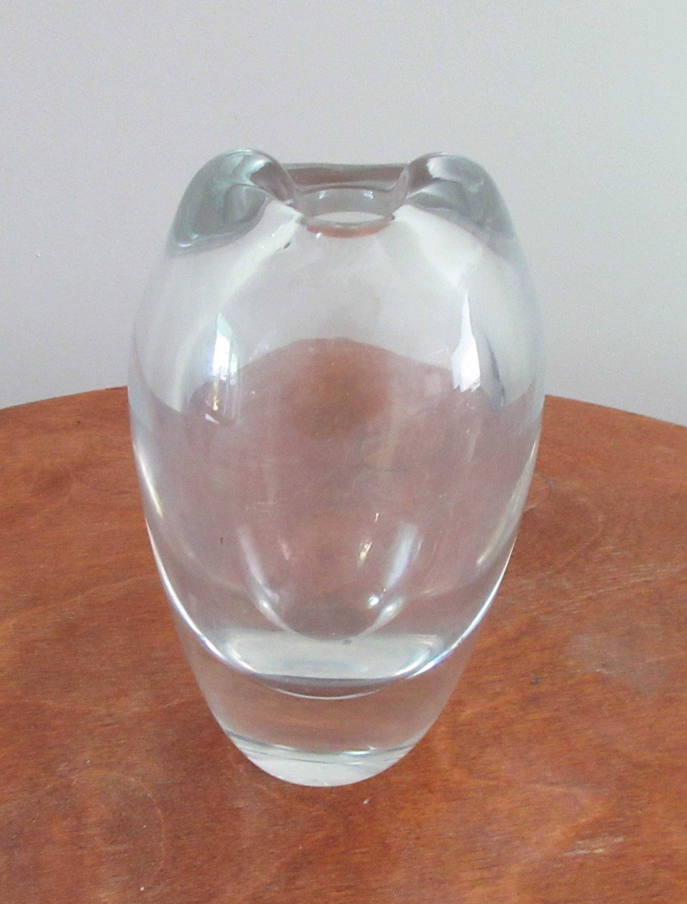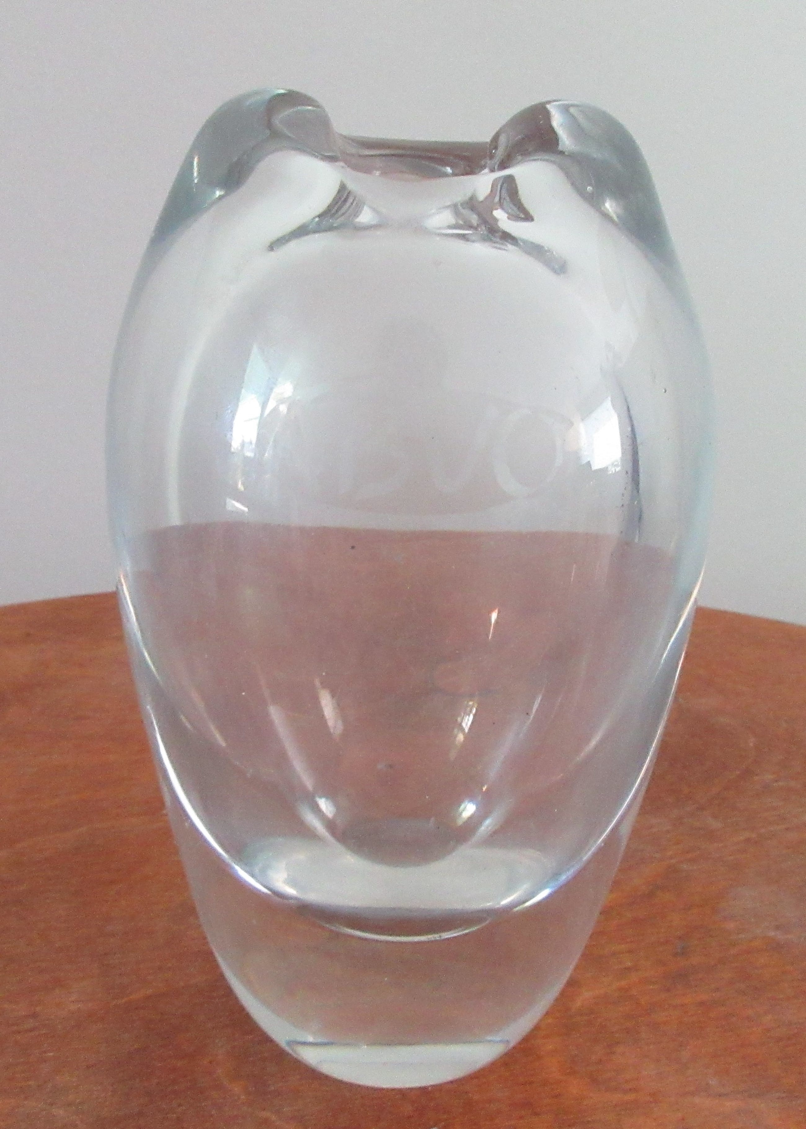 Blank glazen dikwandig vaasje ontwerp Floris Meydam, uitvoering Royal Leerdam. Deze is in opdracht gemaakt voor het bedrijf ABVO. in goede gebruikte conditie, de vaas heeft wel een zweem van aanslag. Niet gemerkt.