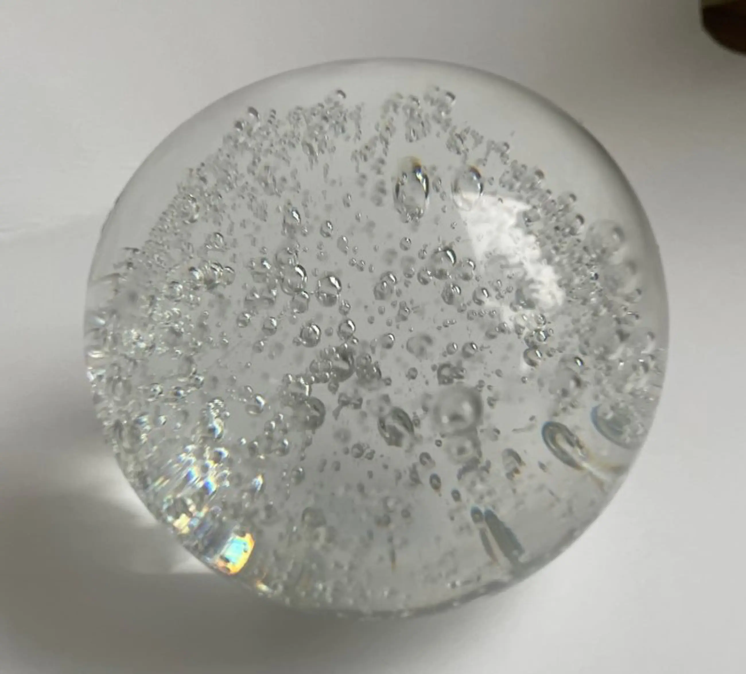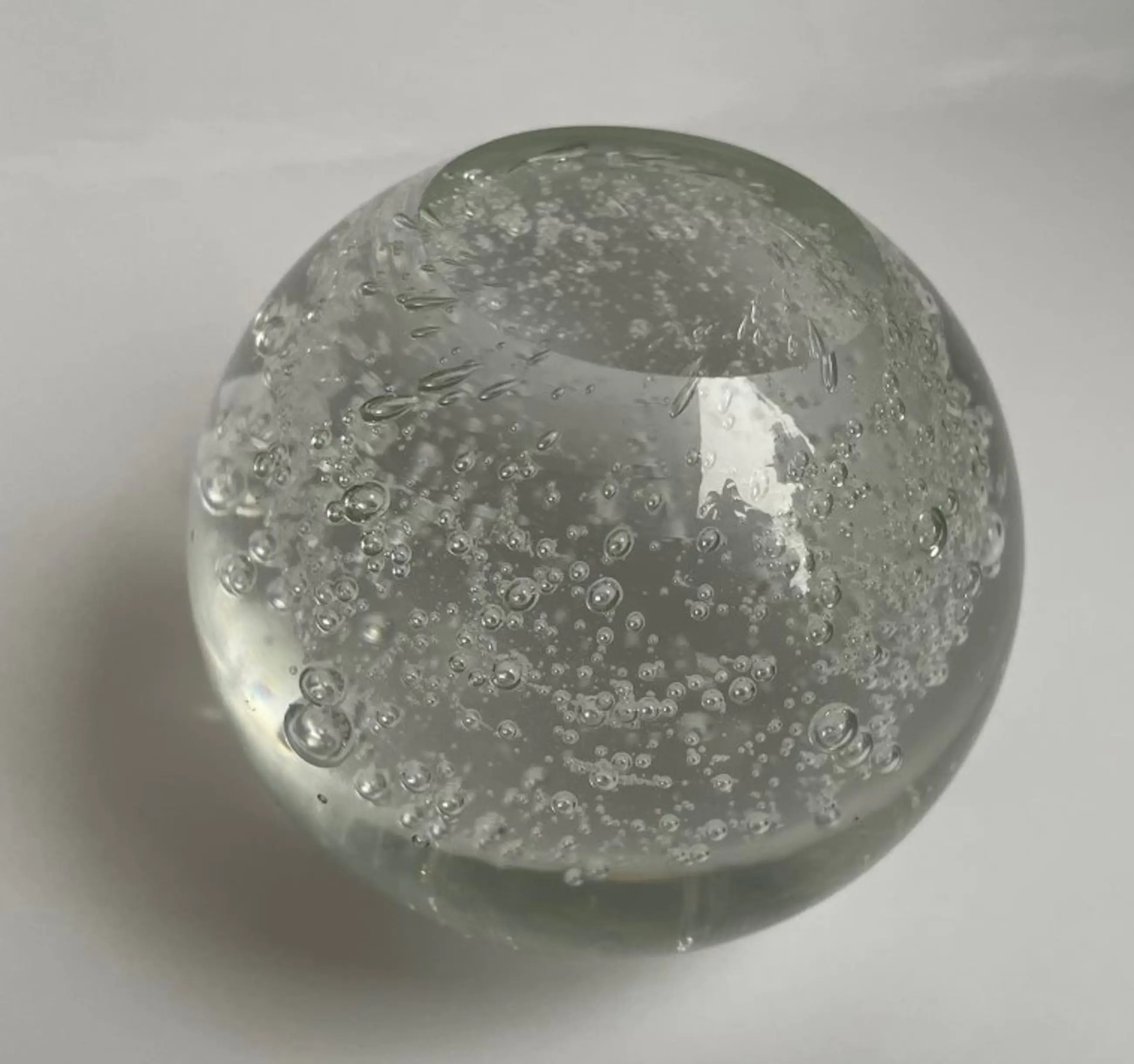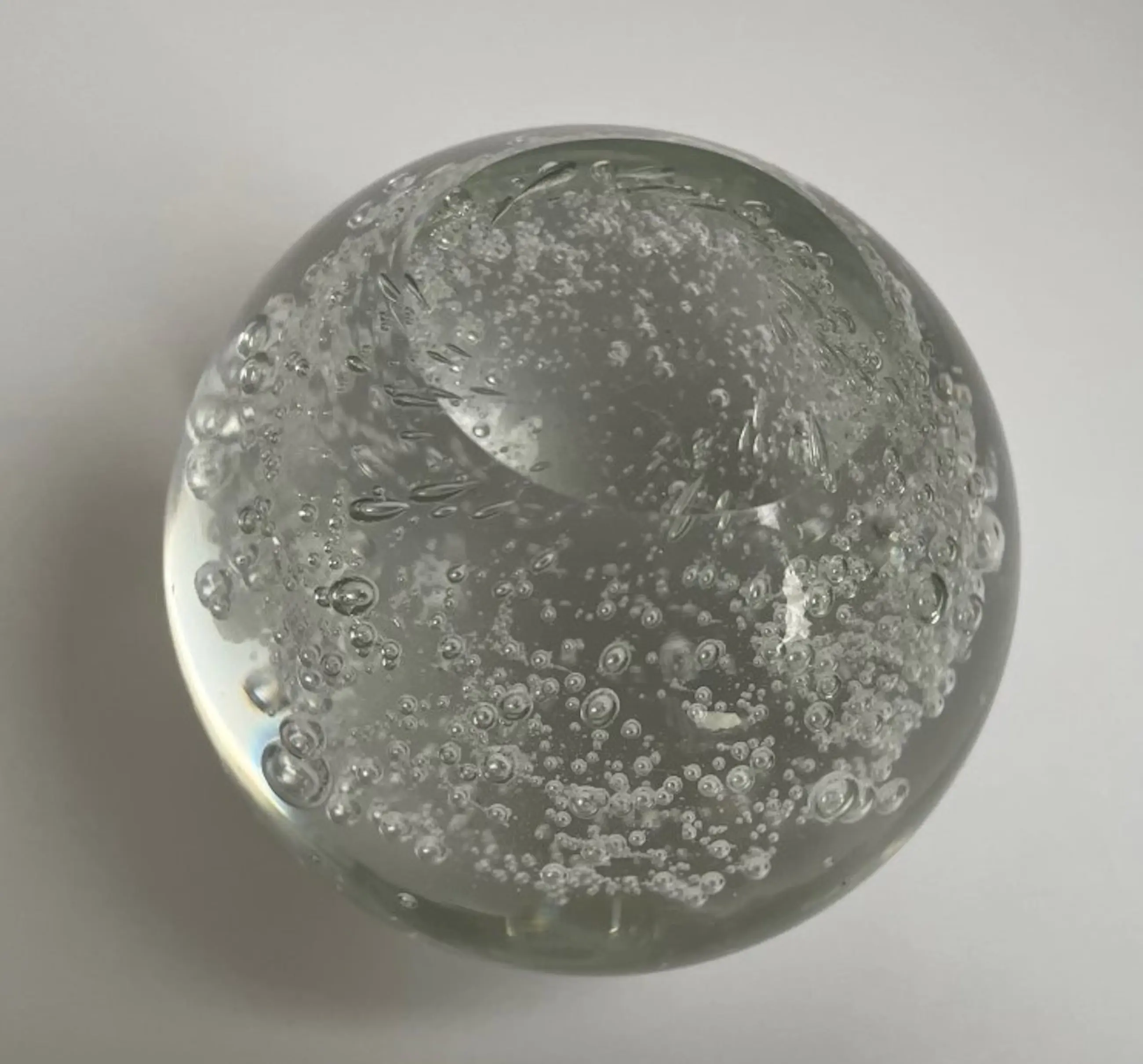 Floris Meydam - Blank kristallen presse papier met luchtbellen voor Royal Leerdam. In prima onbeschadigde conditie alleen wat kleine gebruikskrasjes aan de onderzijde. Niet gemerkt. Gewicht ca. 700 gram.