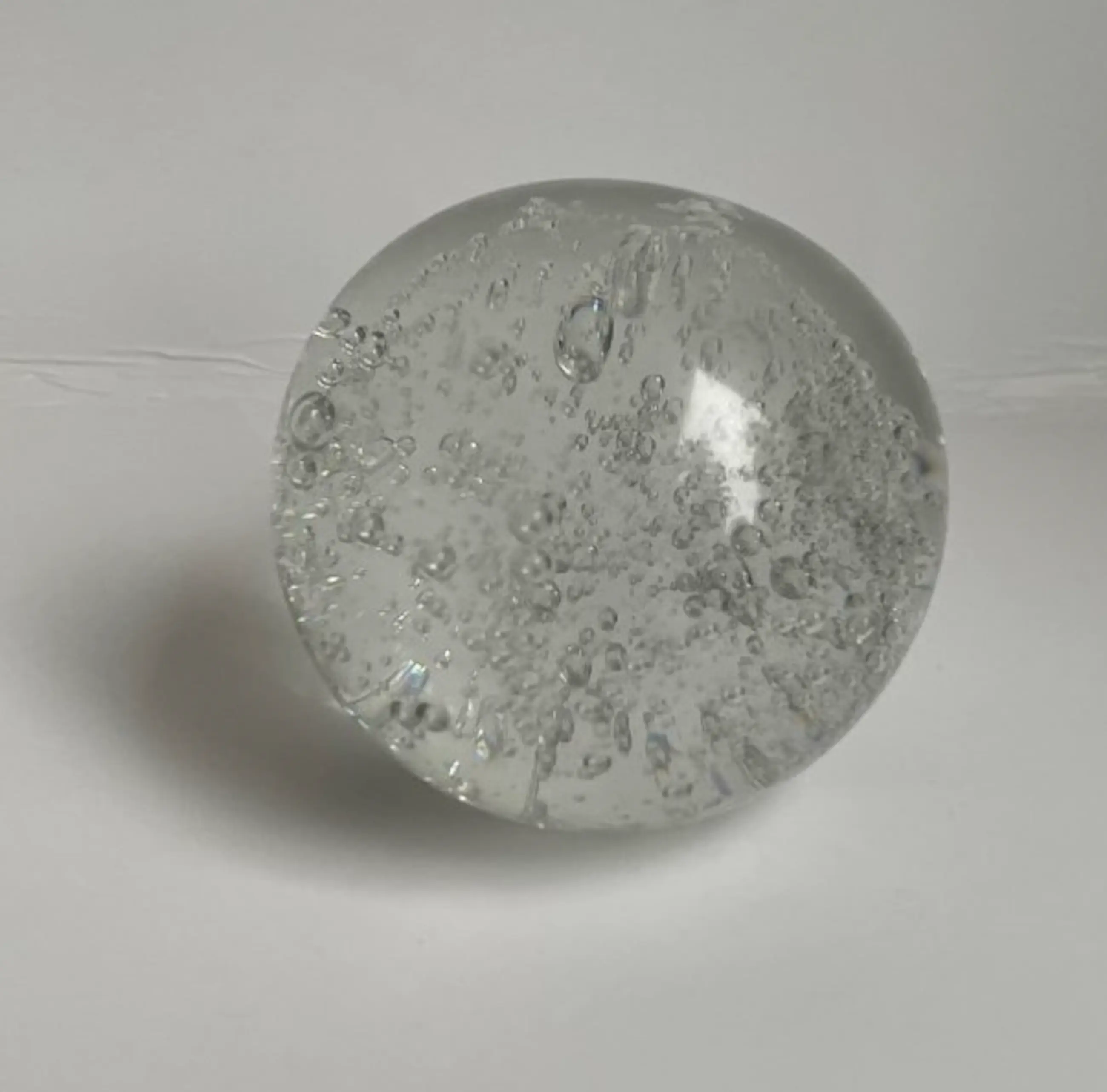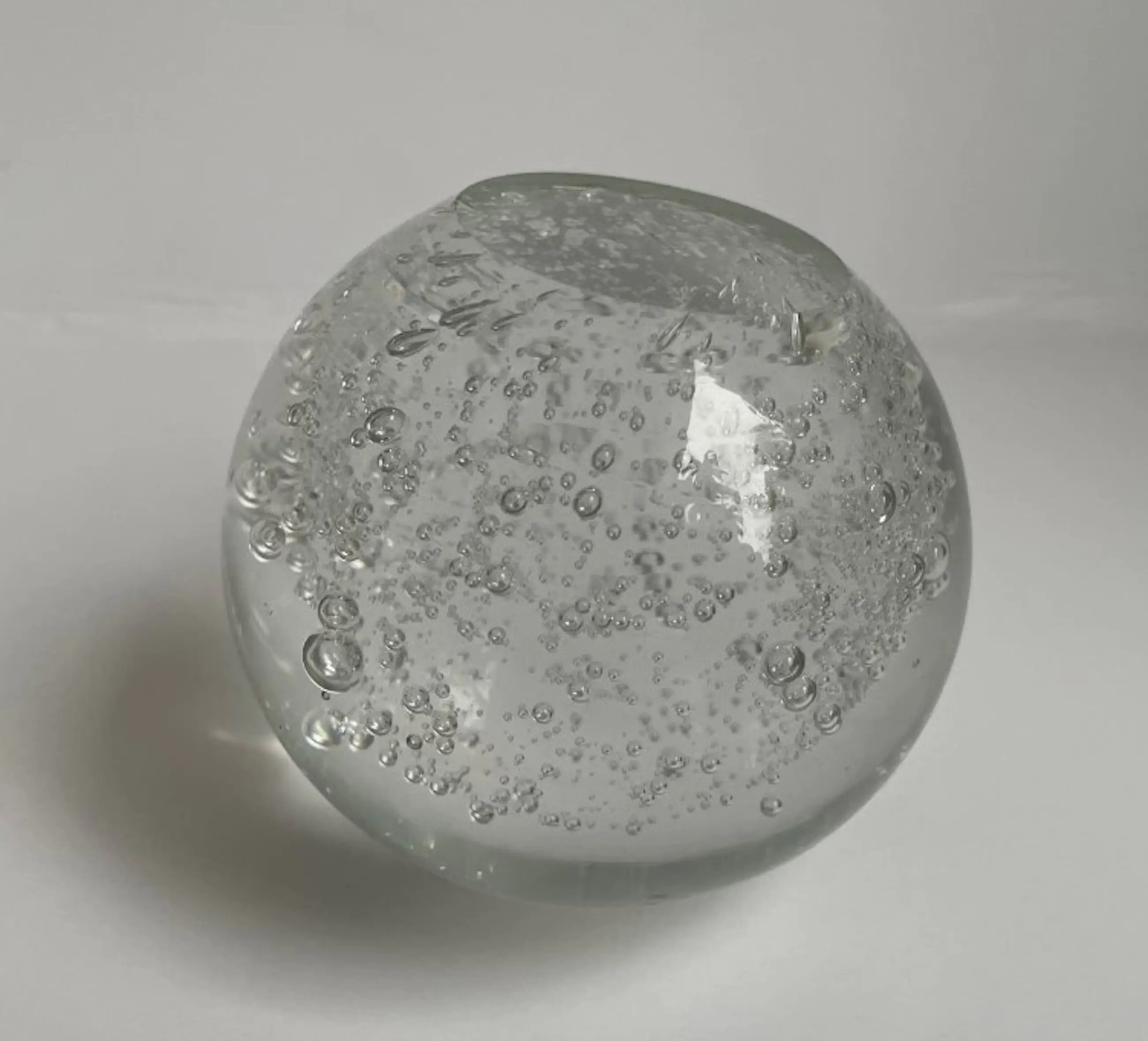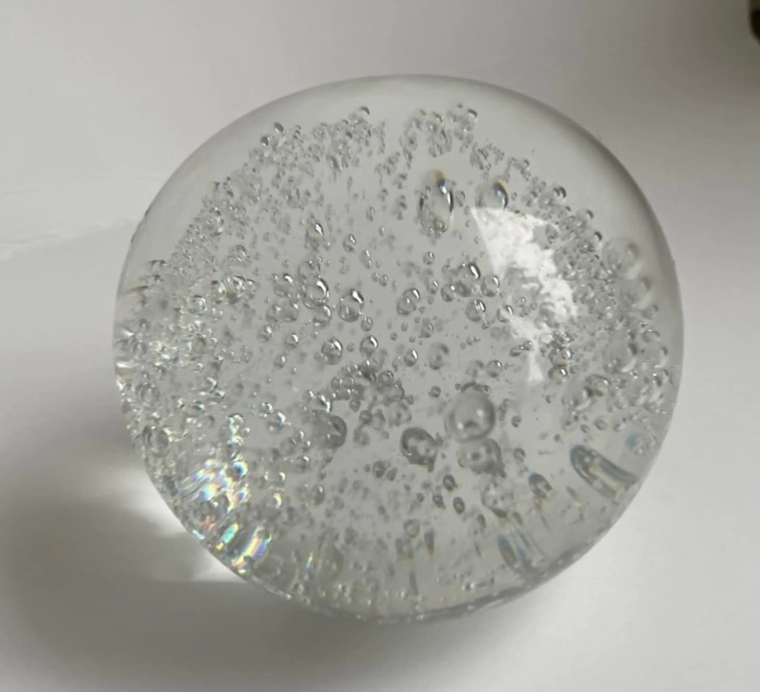 Floris Meydam - Blank kristallen presse papier met luchtbellen voor Royal Leerdam. In prima onbeschadigde conditie alleen wat kleine gebruikskrasjes aan de onderzijde. Niet gemerkt. Gewicht ca. 700 gram.