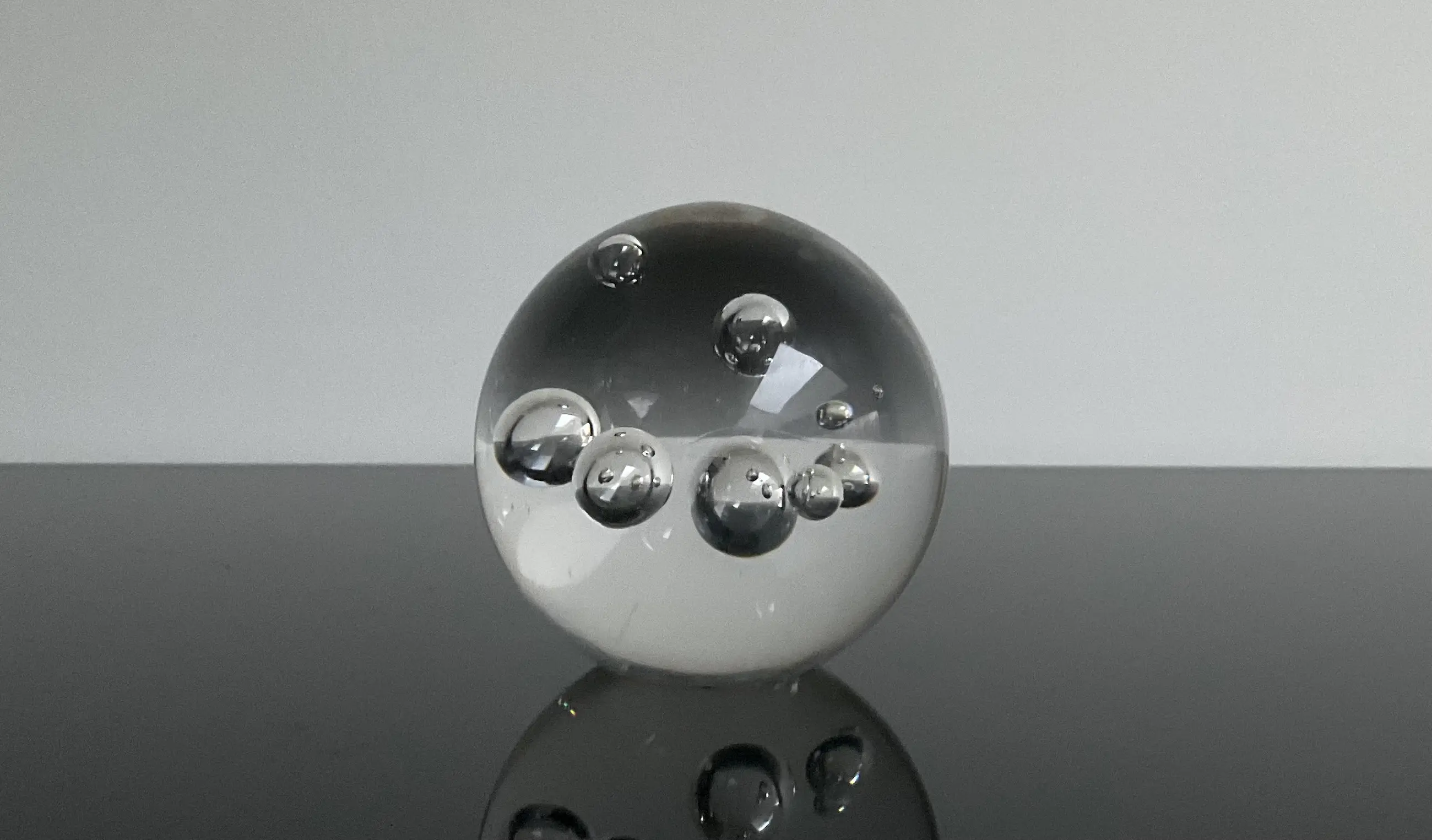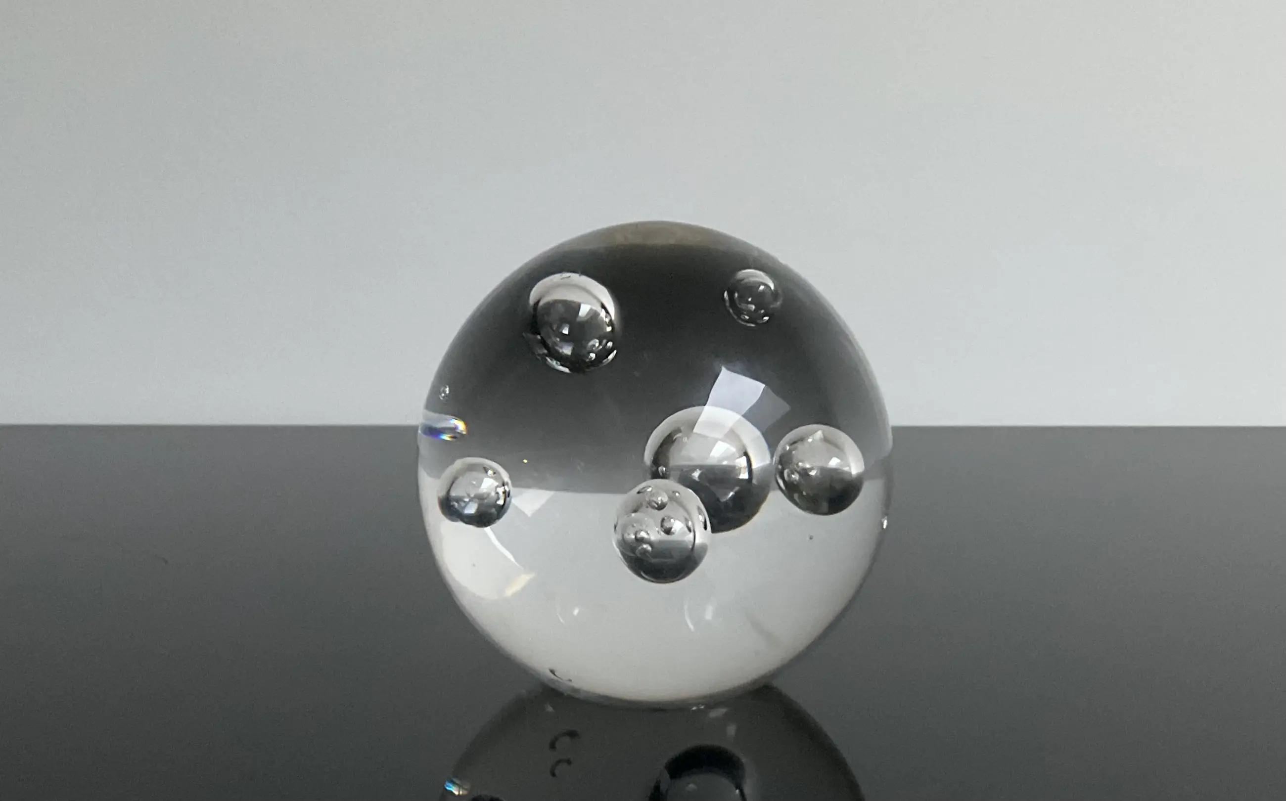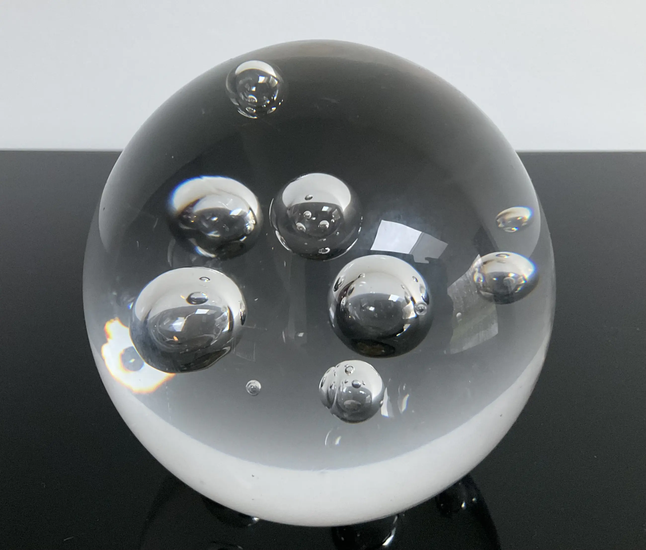 Floris Meydam - GESIGNEERDE GLAZEN MASSIEVE BOL MET INGESLOTEN LUCHTBELLEN.