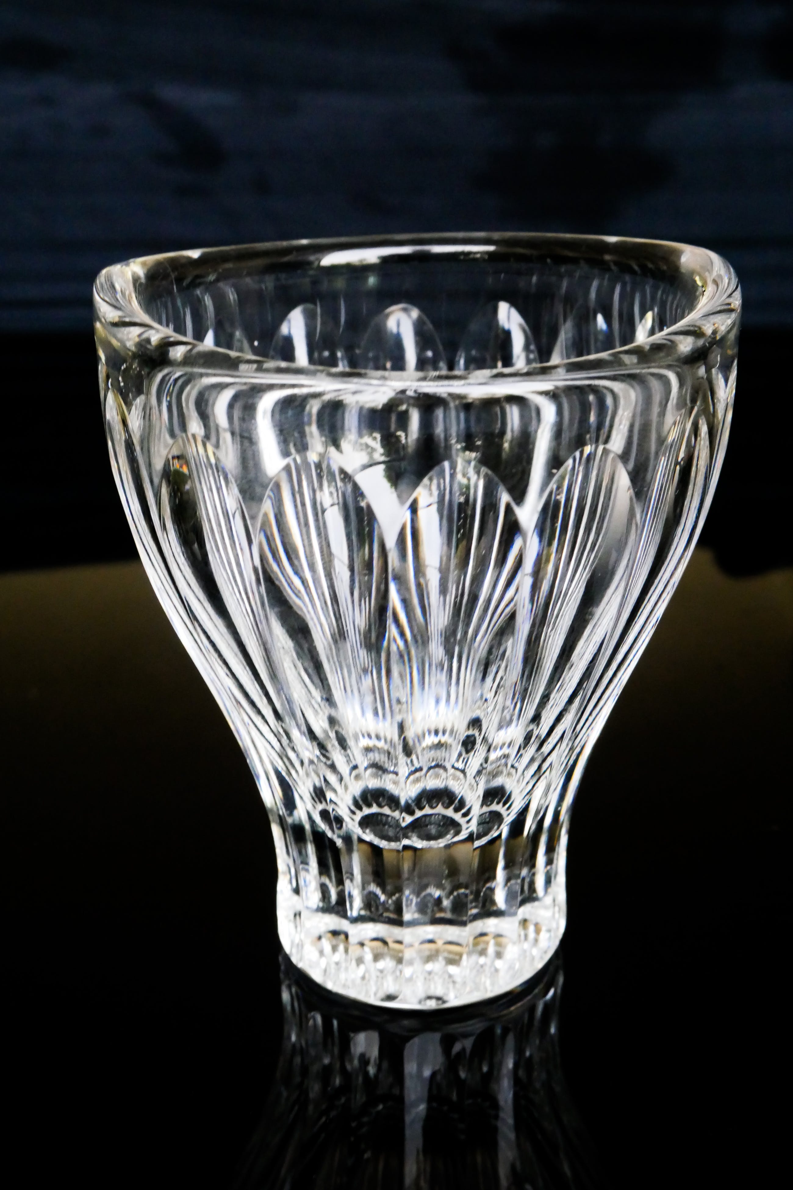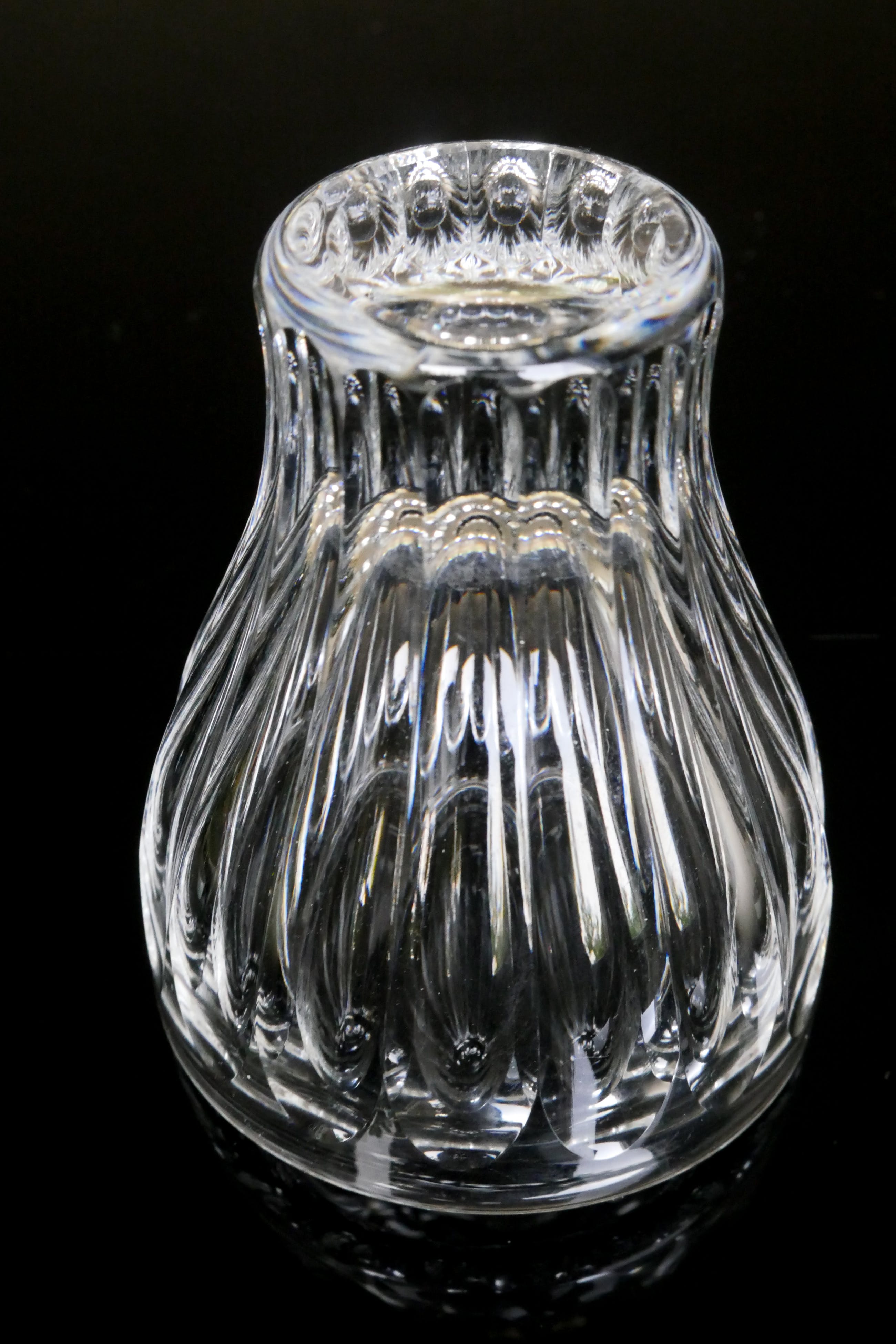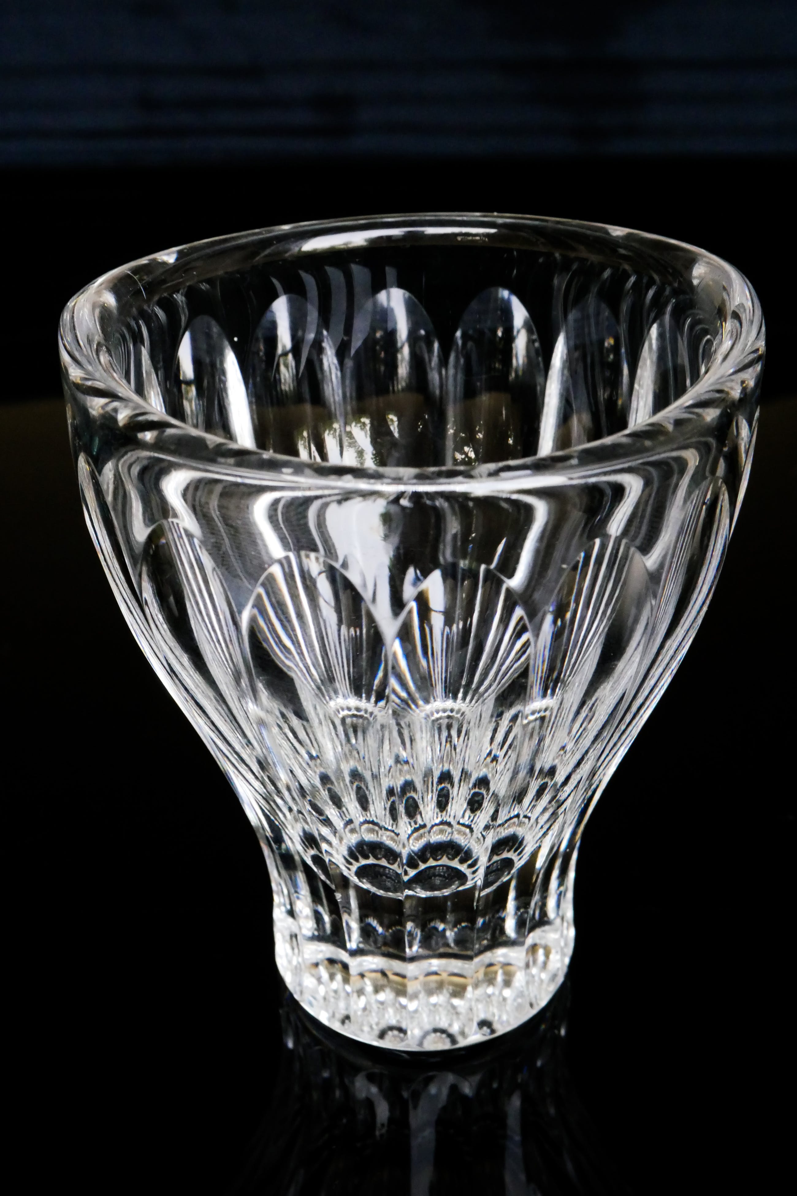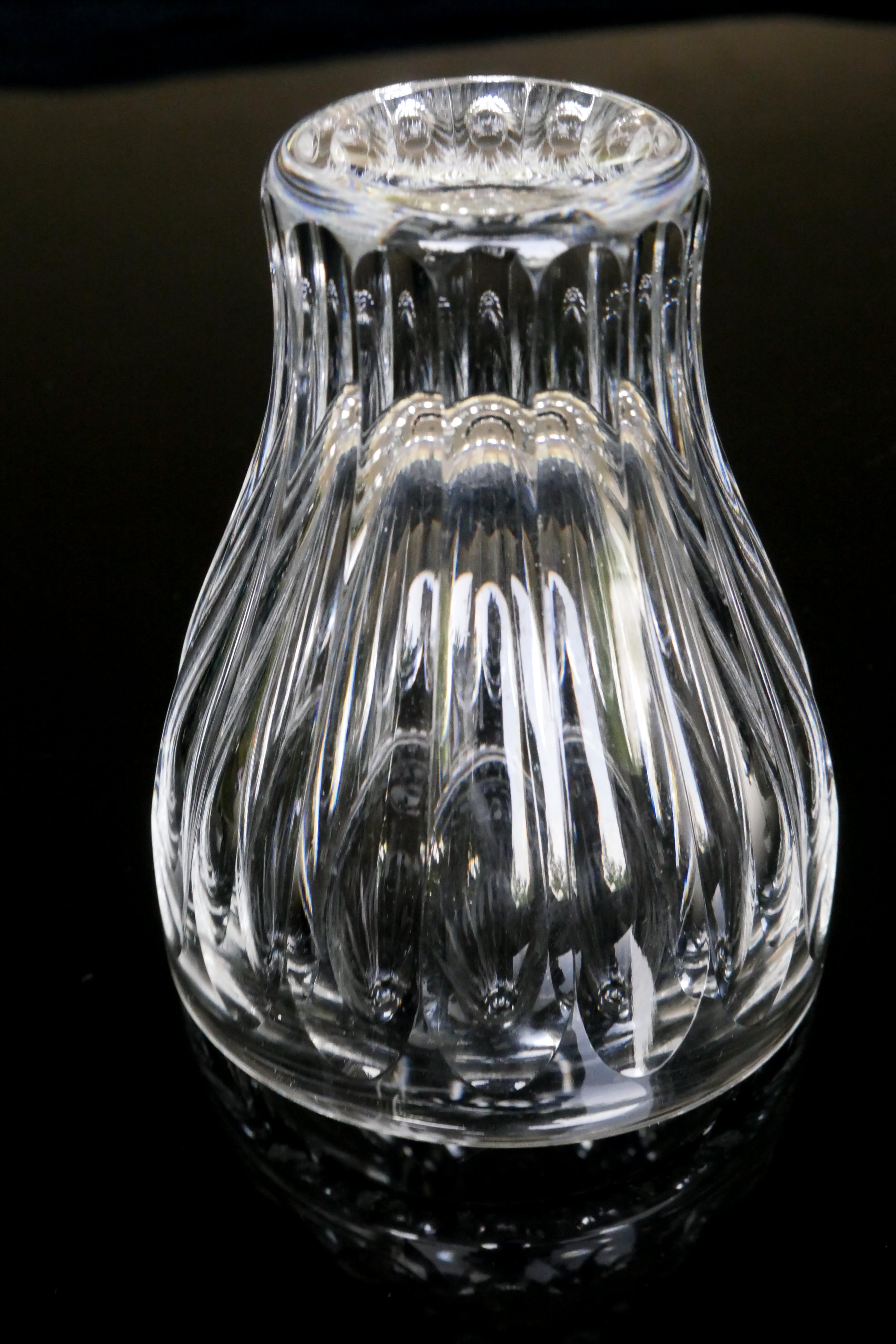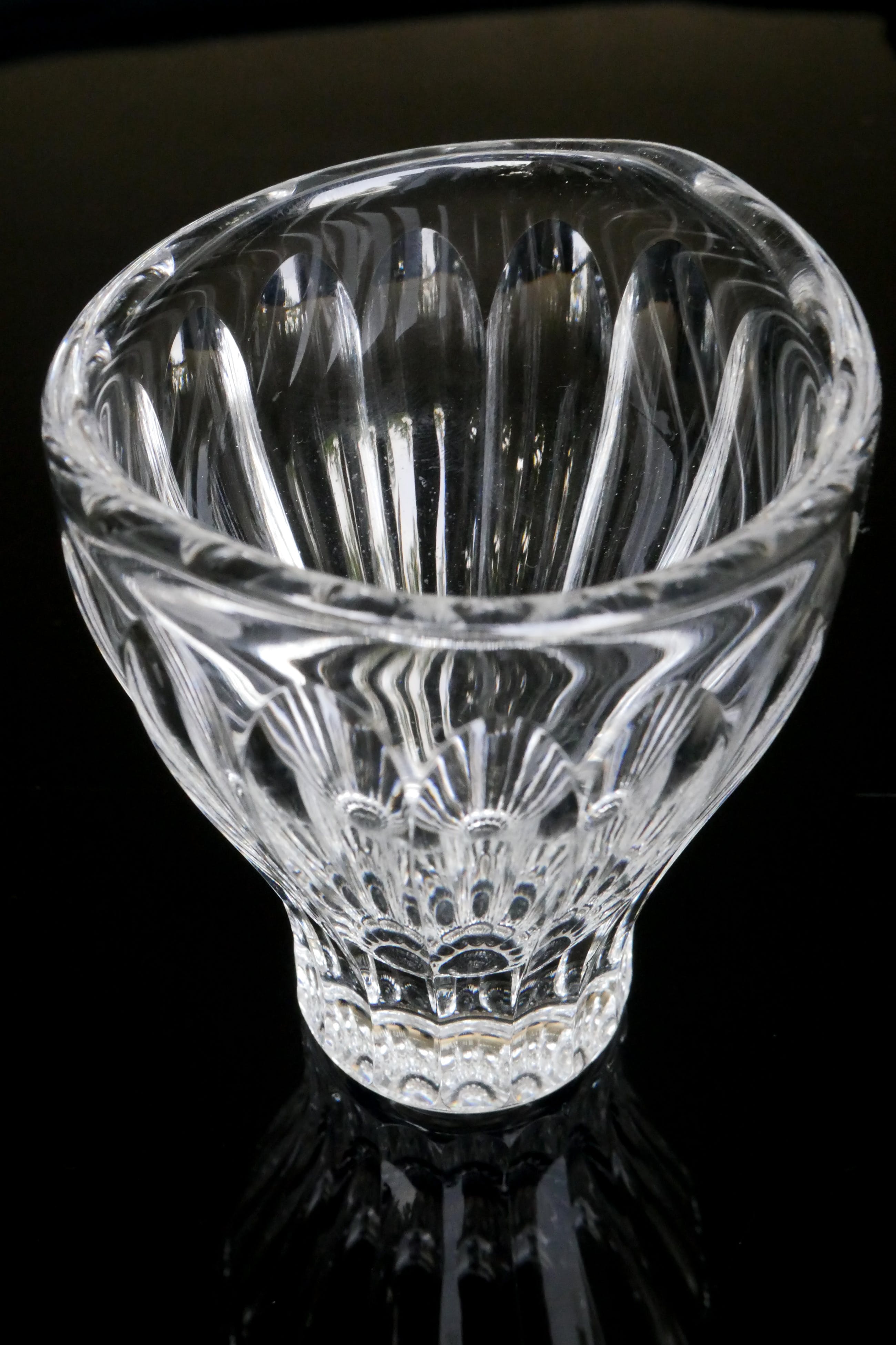 Ontwerper: Floris Meydam Jaar: 1953 Hoogte: 90 mm Diameter: boven: 70 mm Diameter: onder: 40 mm Uitvoering: Leerdam Glasfabriek Conditie: Uitstekend