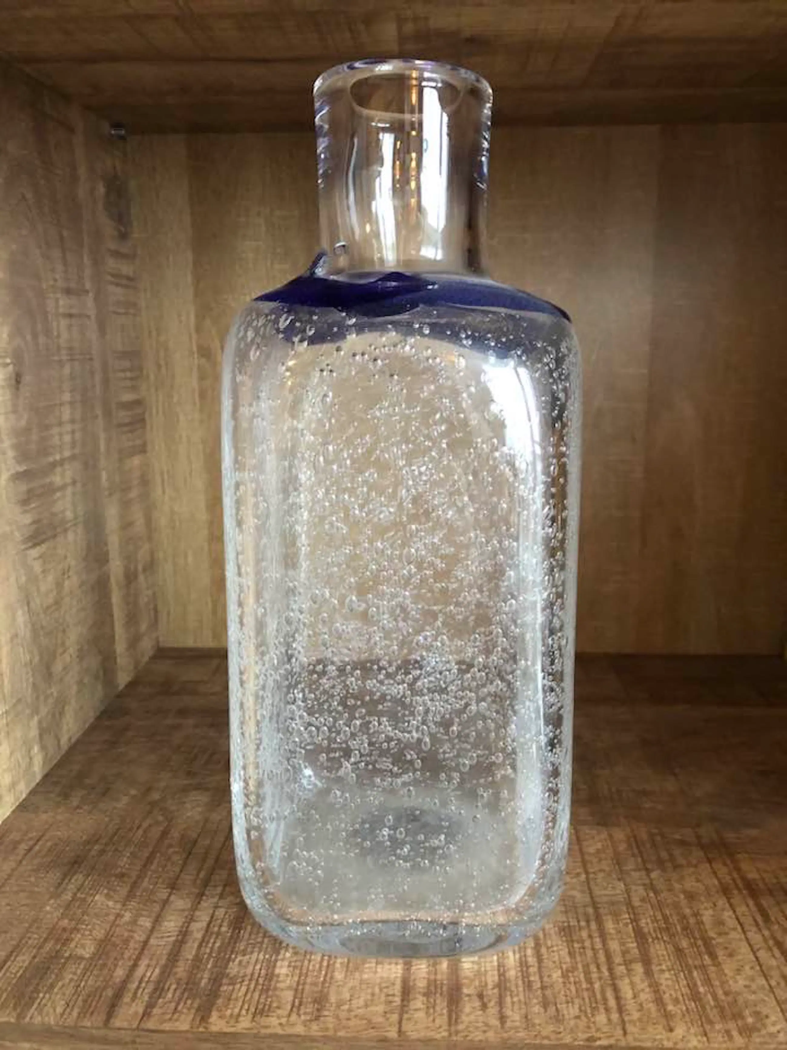 Grote en zware Leerdam Serica fles met luchtbellen en blauwe cirkel uit 1977