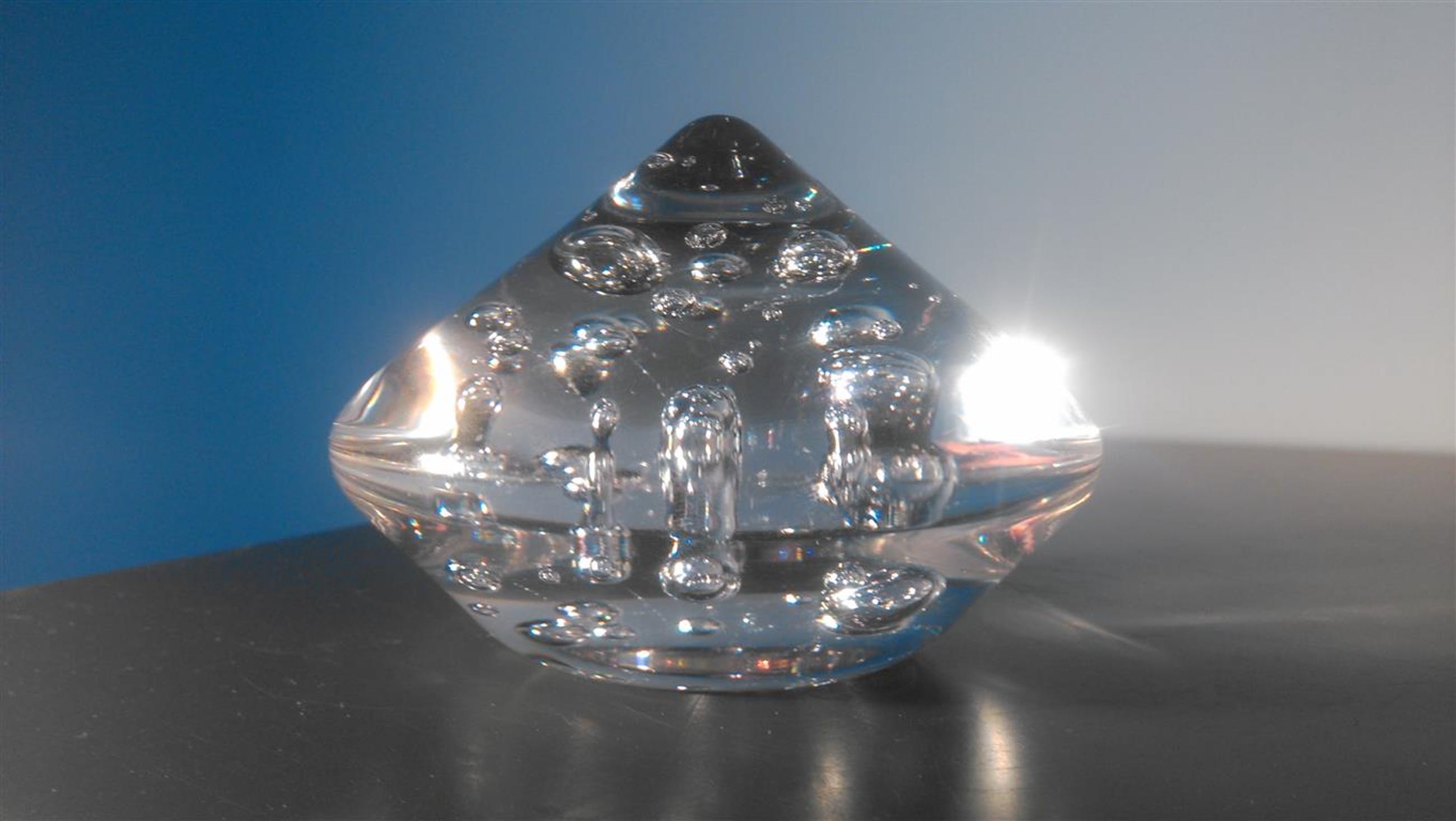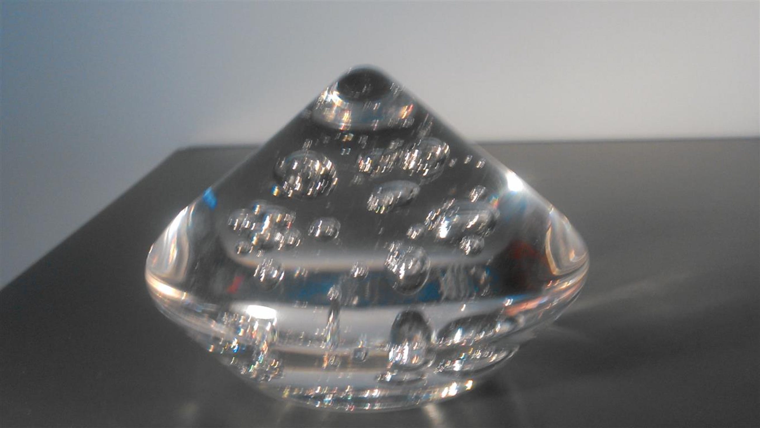 Zware presse-papier paddestoelvorm met ingesloten luchtbellen gemerkt Royal Leerdam 1000/513 FM