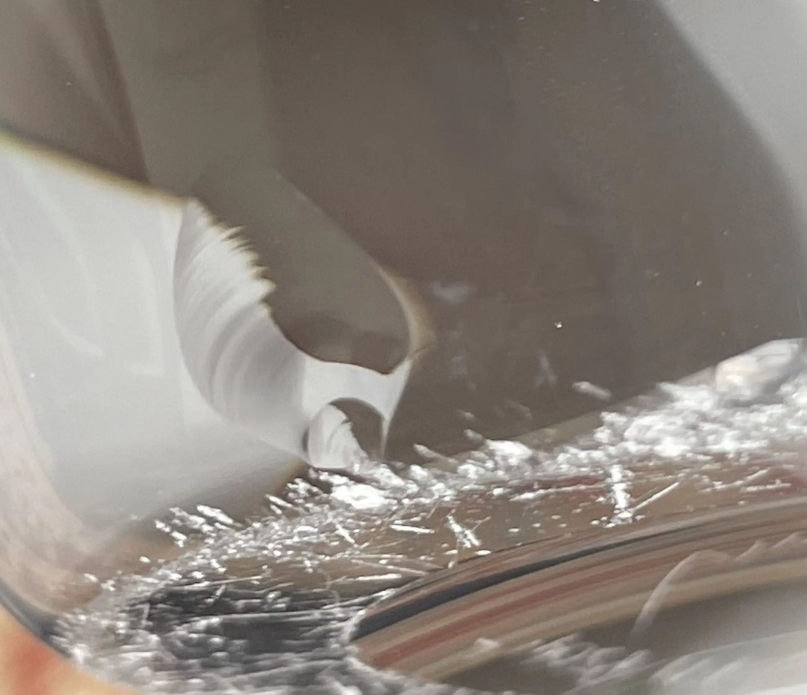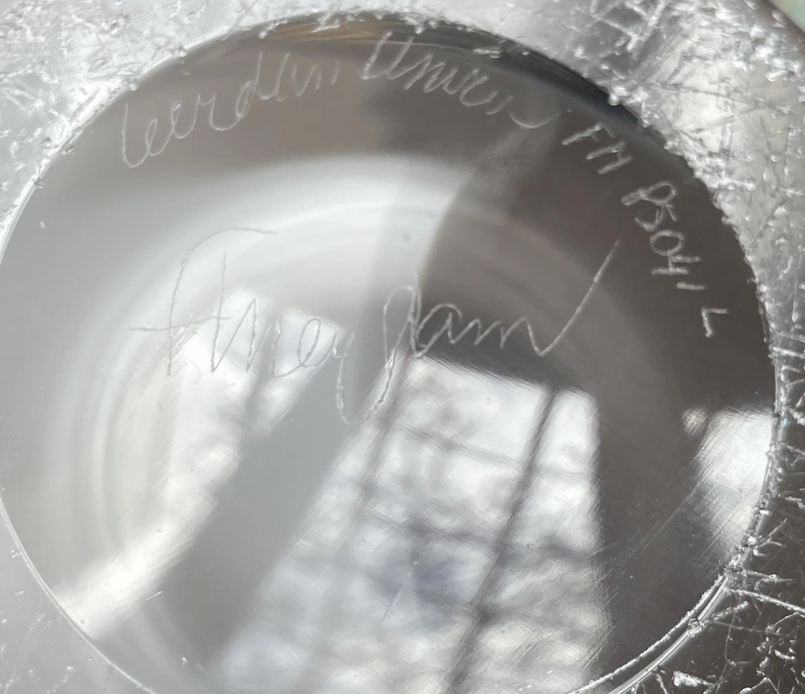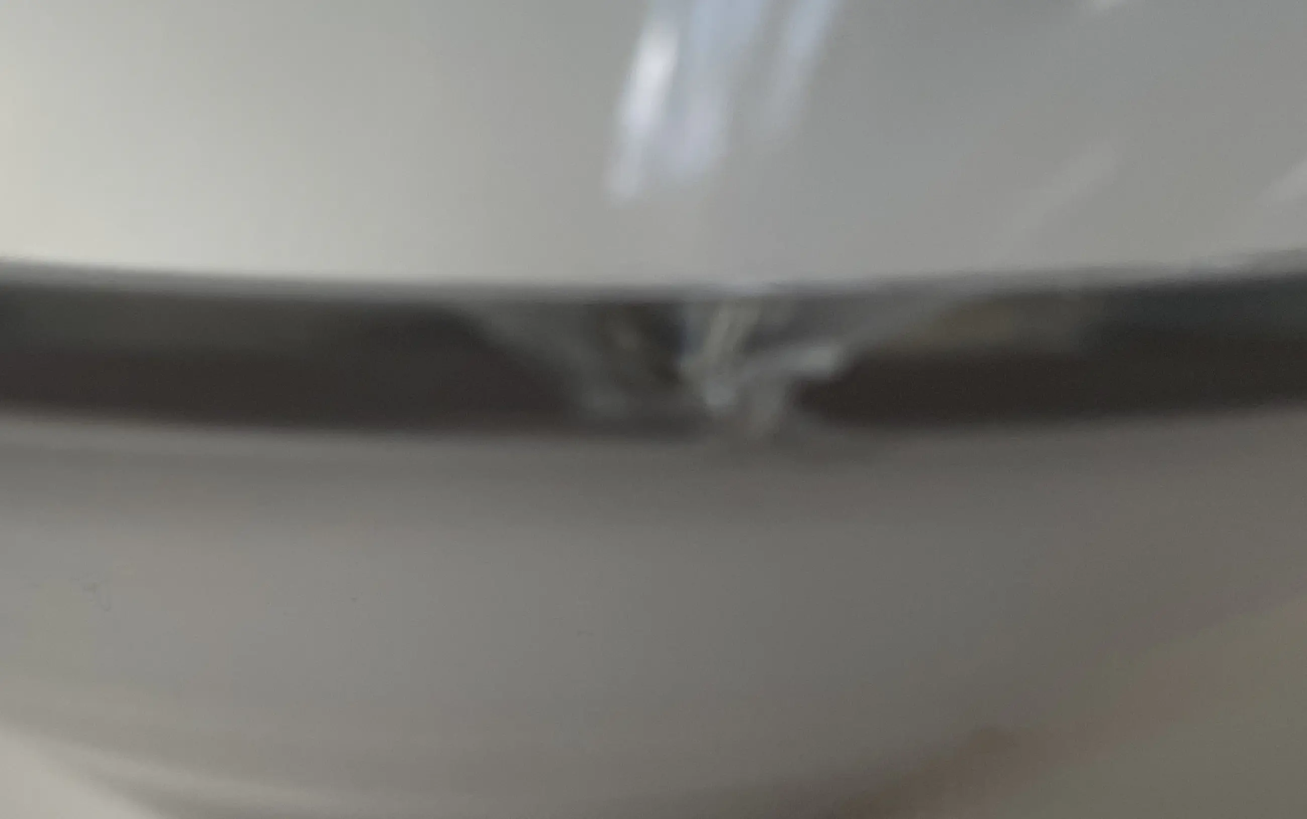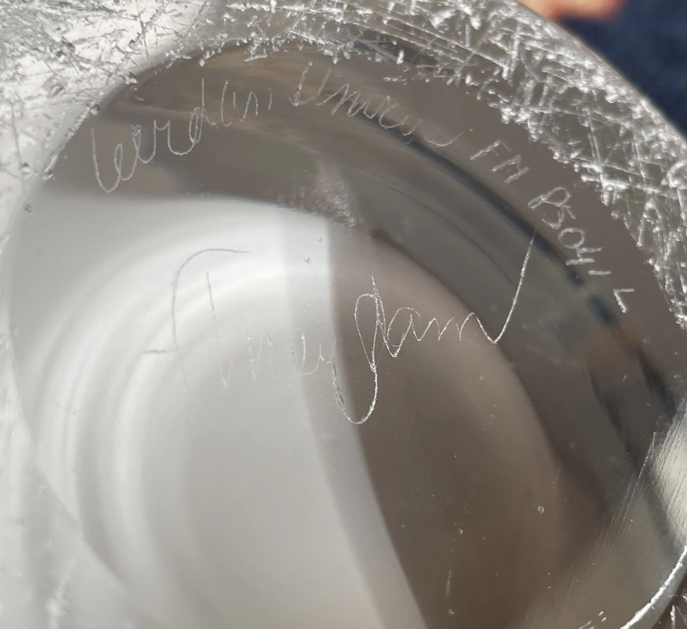 Grote two tone (grijs-wit ofwel Salmiak kleur) kunstglazen Unica kom FM85041L van Floris Meydam uit 1985. Helaas heeft de kom schade; een chip op de bovenrand en een chip onderaan de voet. De laatste is wat minder in het oog springend, maar de 1e helaas wel. En krassen op de standring - zie foto's.