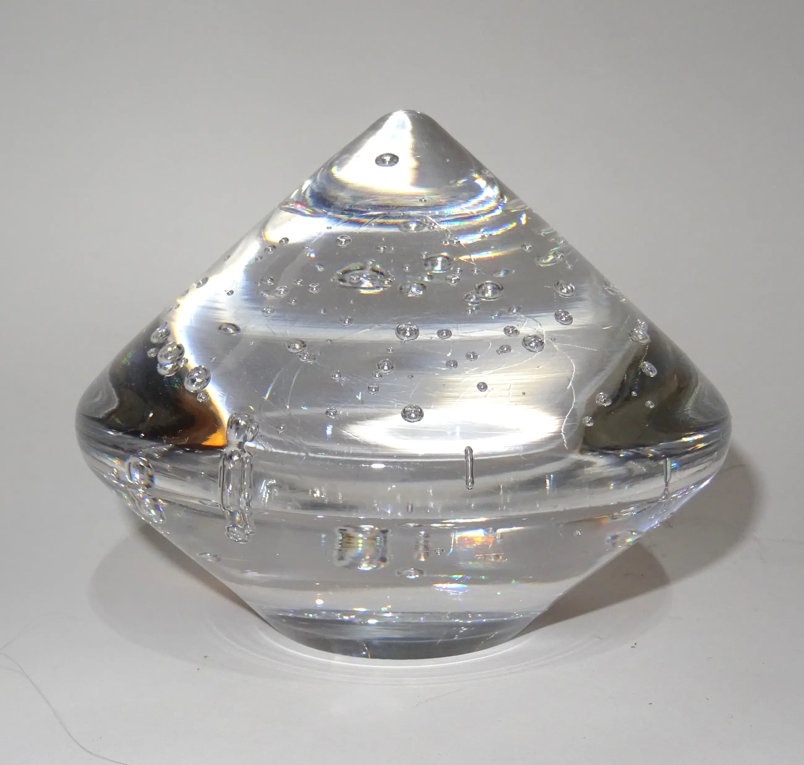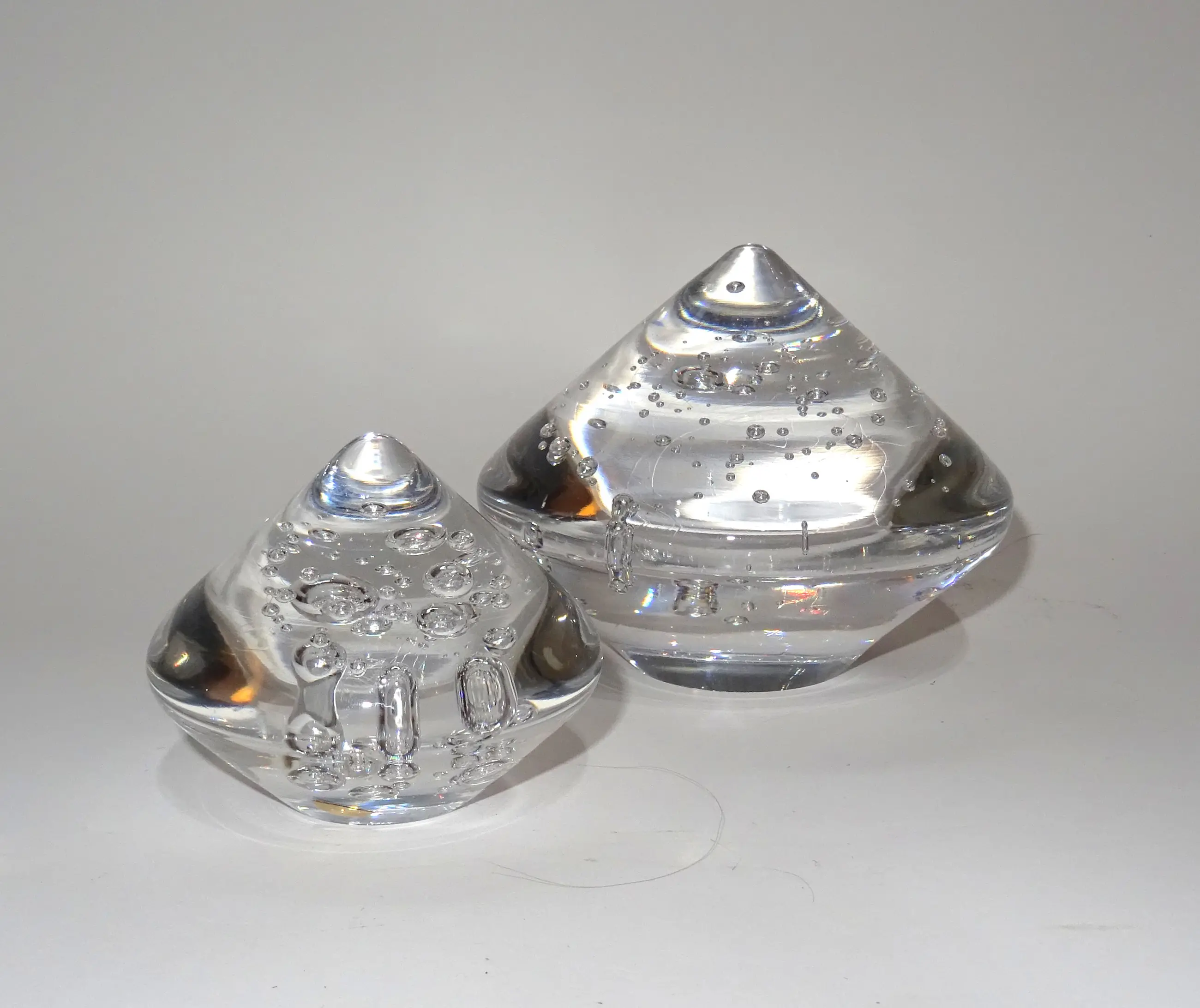 2 serica objecten / presse papiers, massief kristal met een patroon van luchtbellen. Ontwerp Floris Meydam, uitvoering Royal Leerdam Crystal 1975-1986. Beide genummerd en gesigneerd.