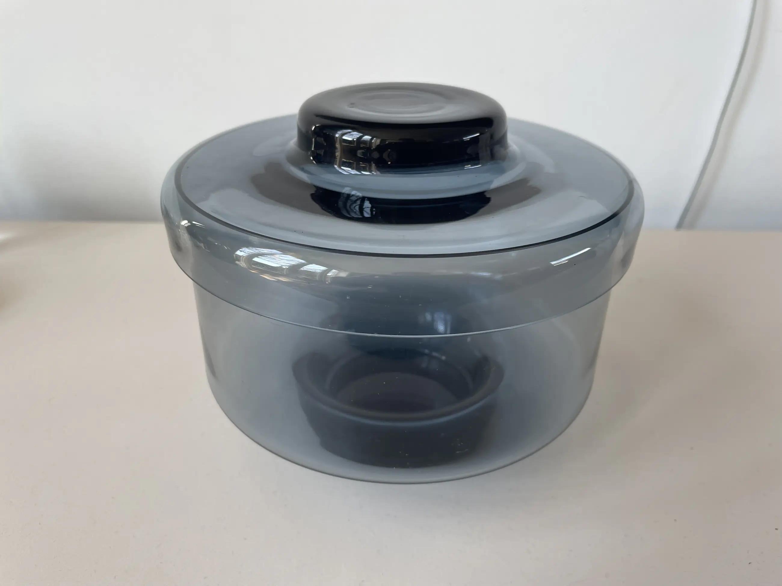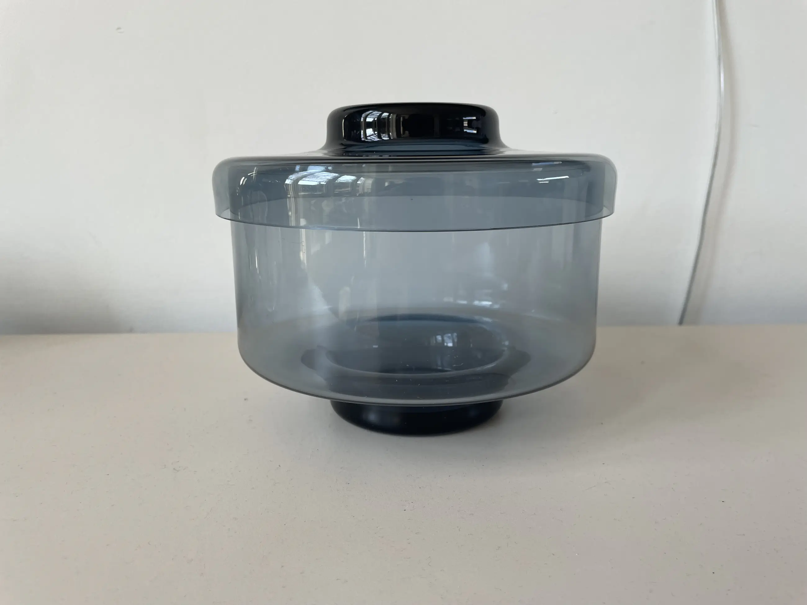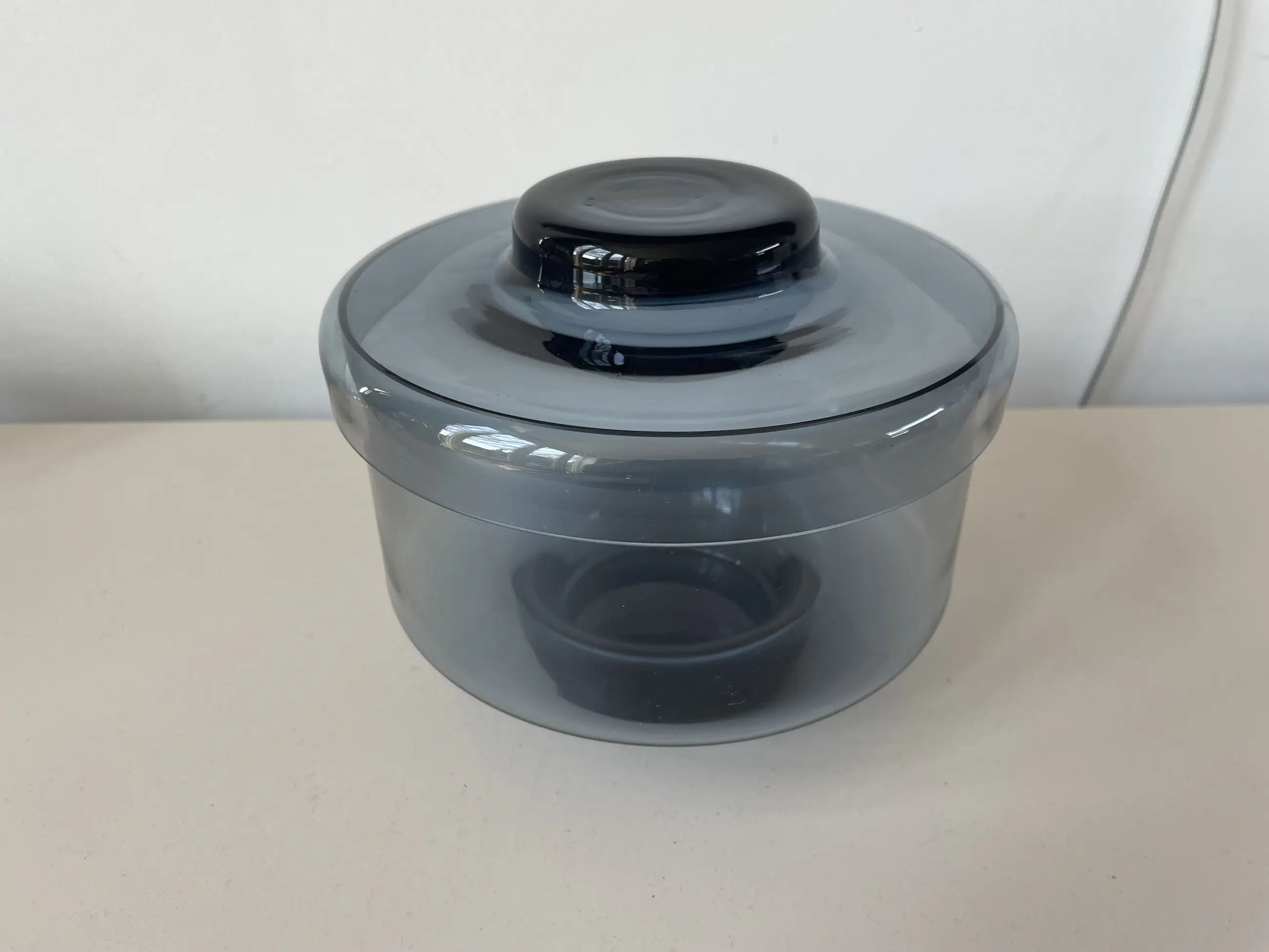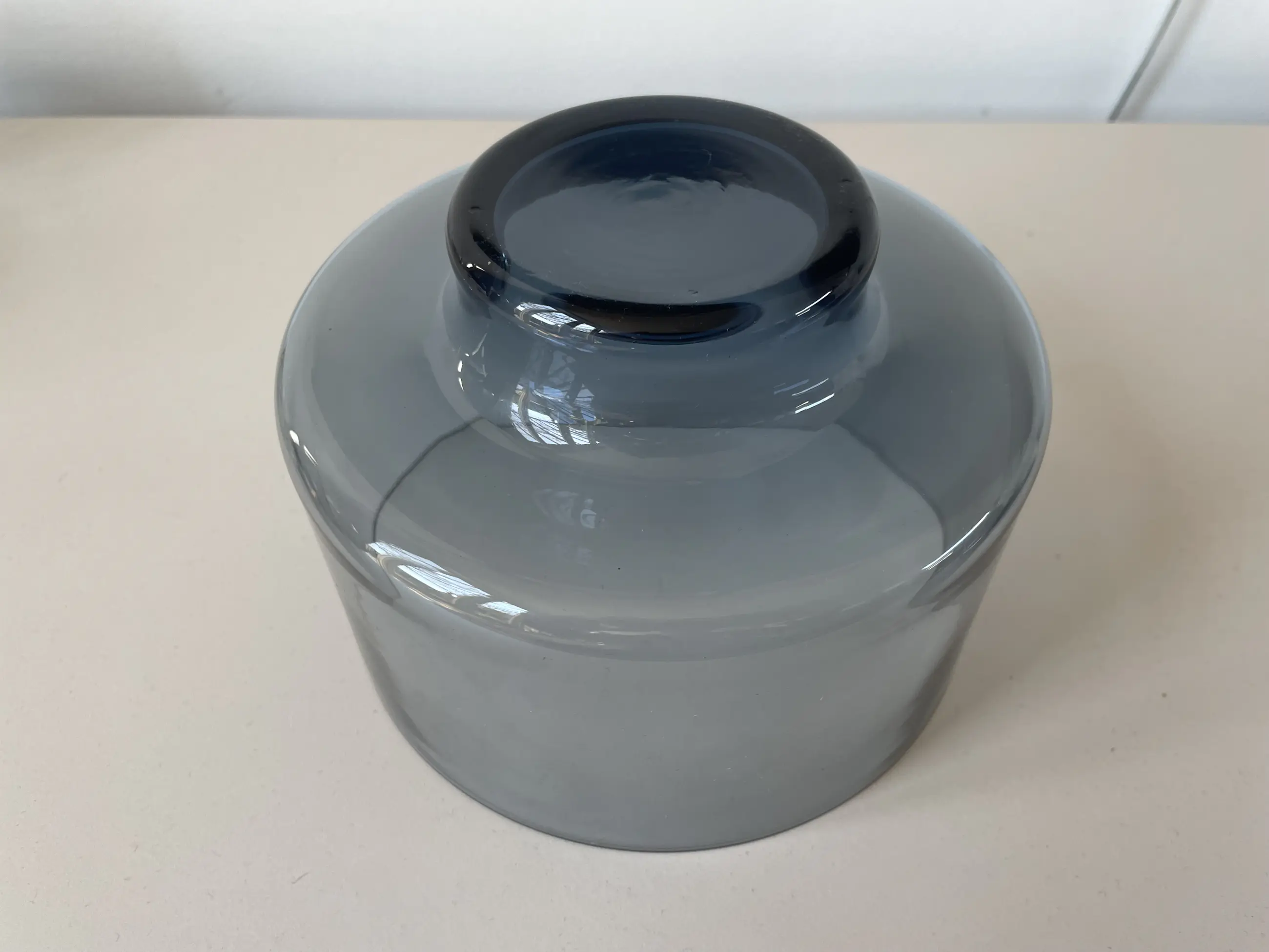 Staalblauwe glazen koekdoos of bonbonniere ontworpen door Floris Meydam voor Leerdam. In prima staat. Niet gemerkt.