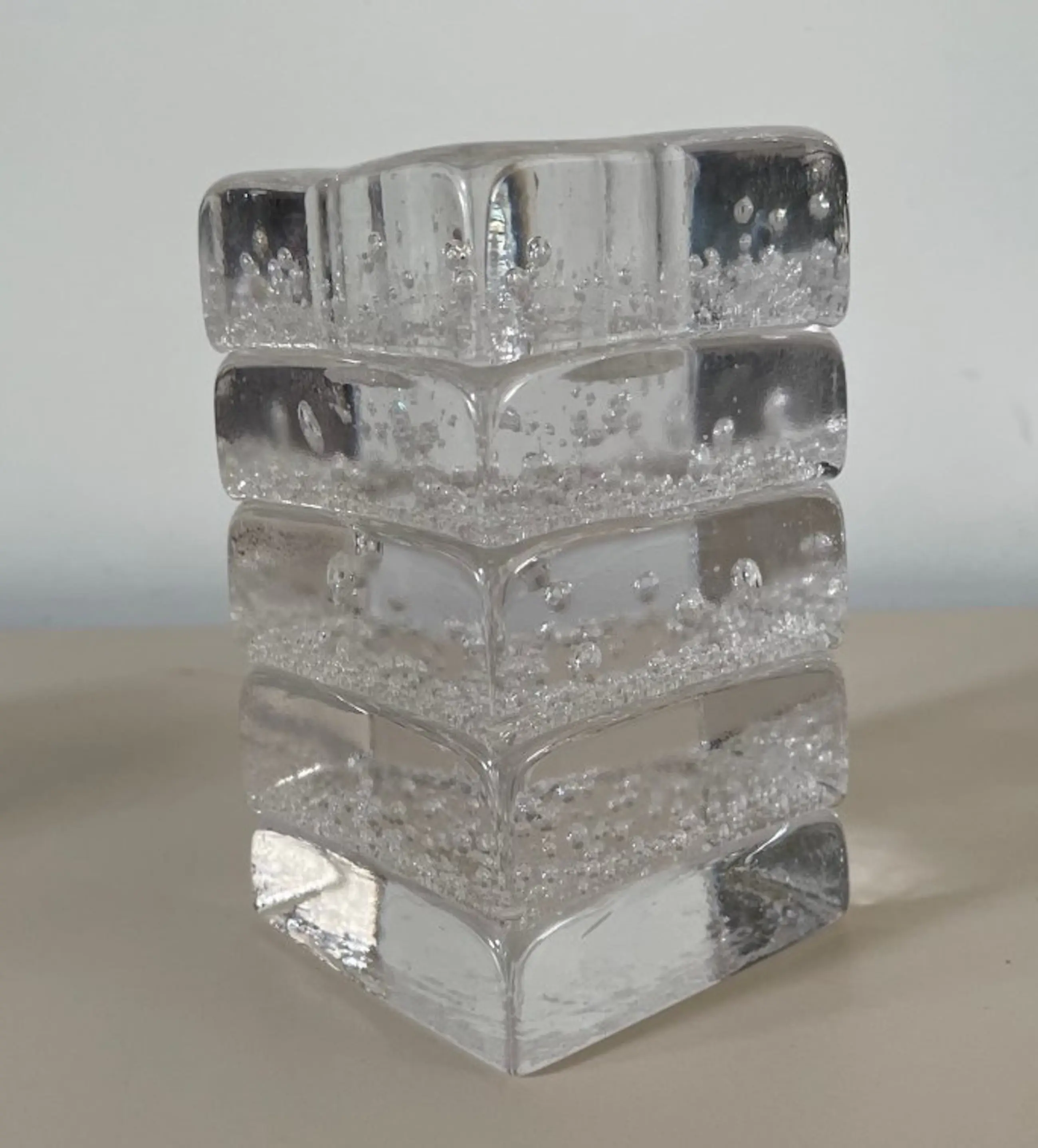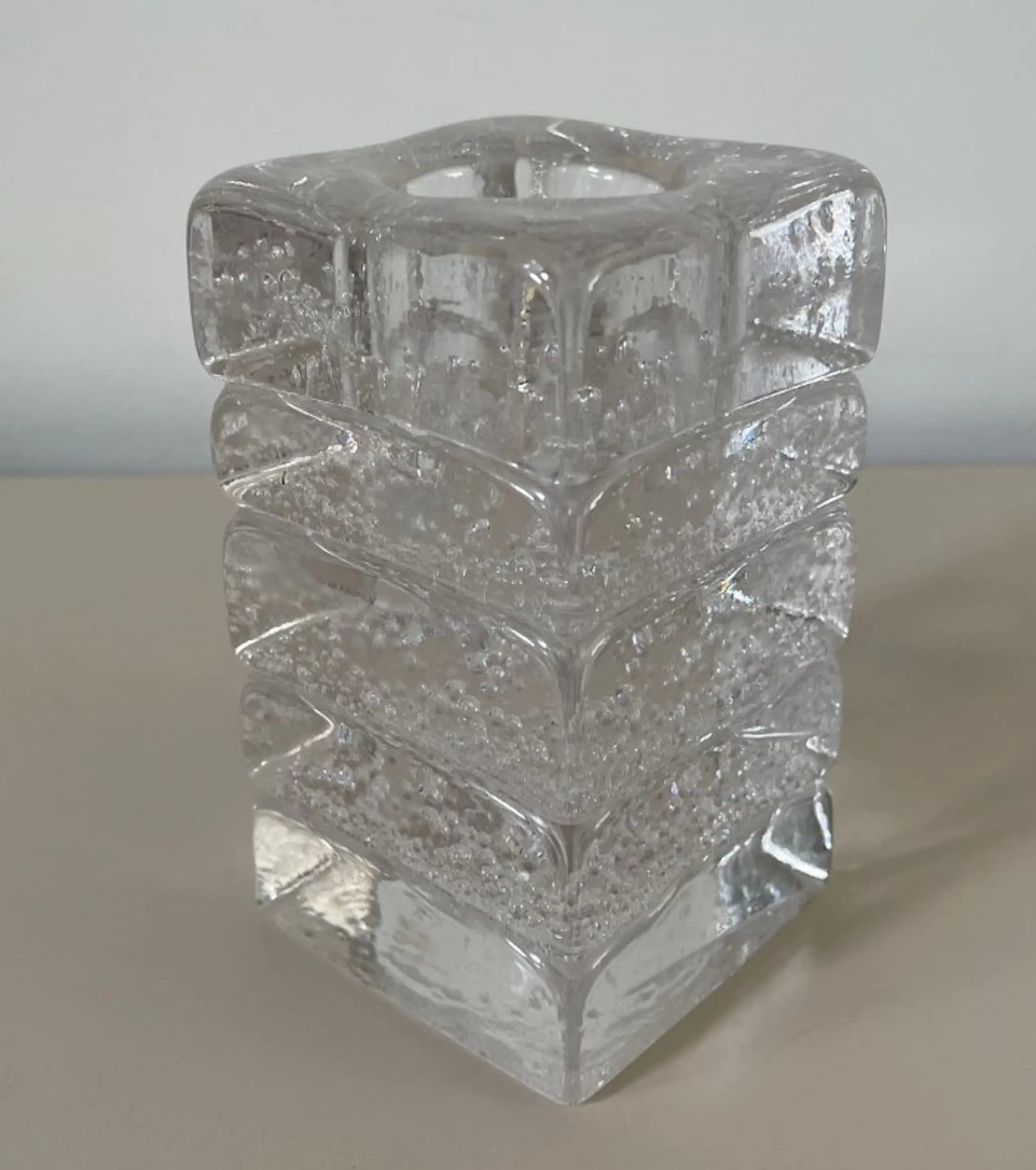 Twee vierkant kristallen kandelaren ontwerp Floris Meydam voor Royal Leerdam. In perfecte onbeschadigde conditie, niet gemerkt. De kandelaren wegen 2000 gram per stuk.