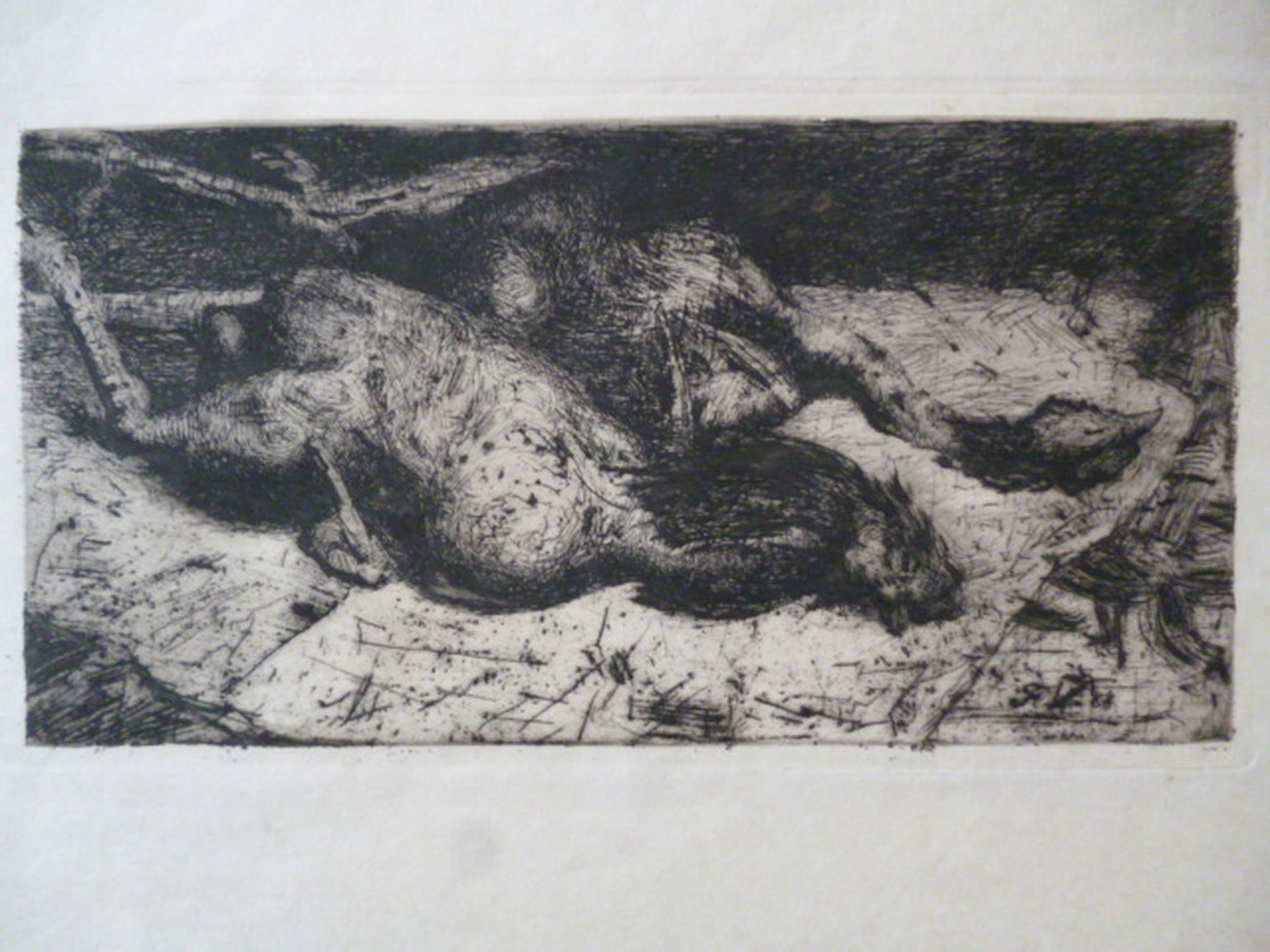 Krachtige ets uit 1888. Gemonogrammeerd en gedateerd in de plaat rechtsonder.