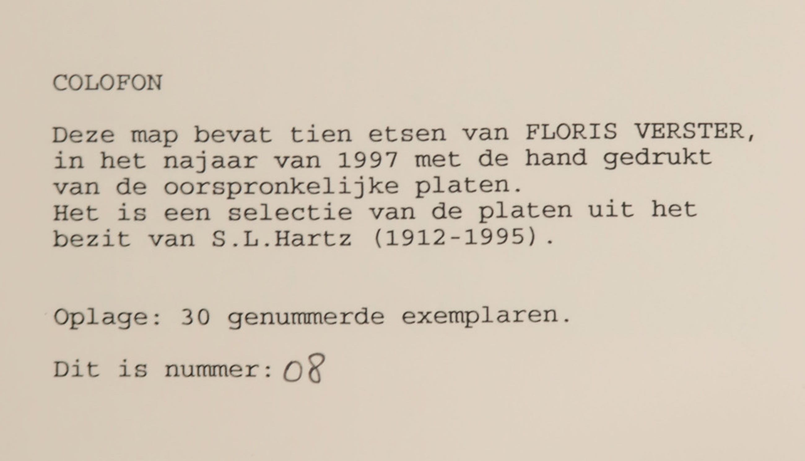 Portfolio met tien etsen van Floris Verster in 1997 gedrukt met de oorspronkelijke platen