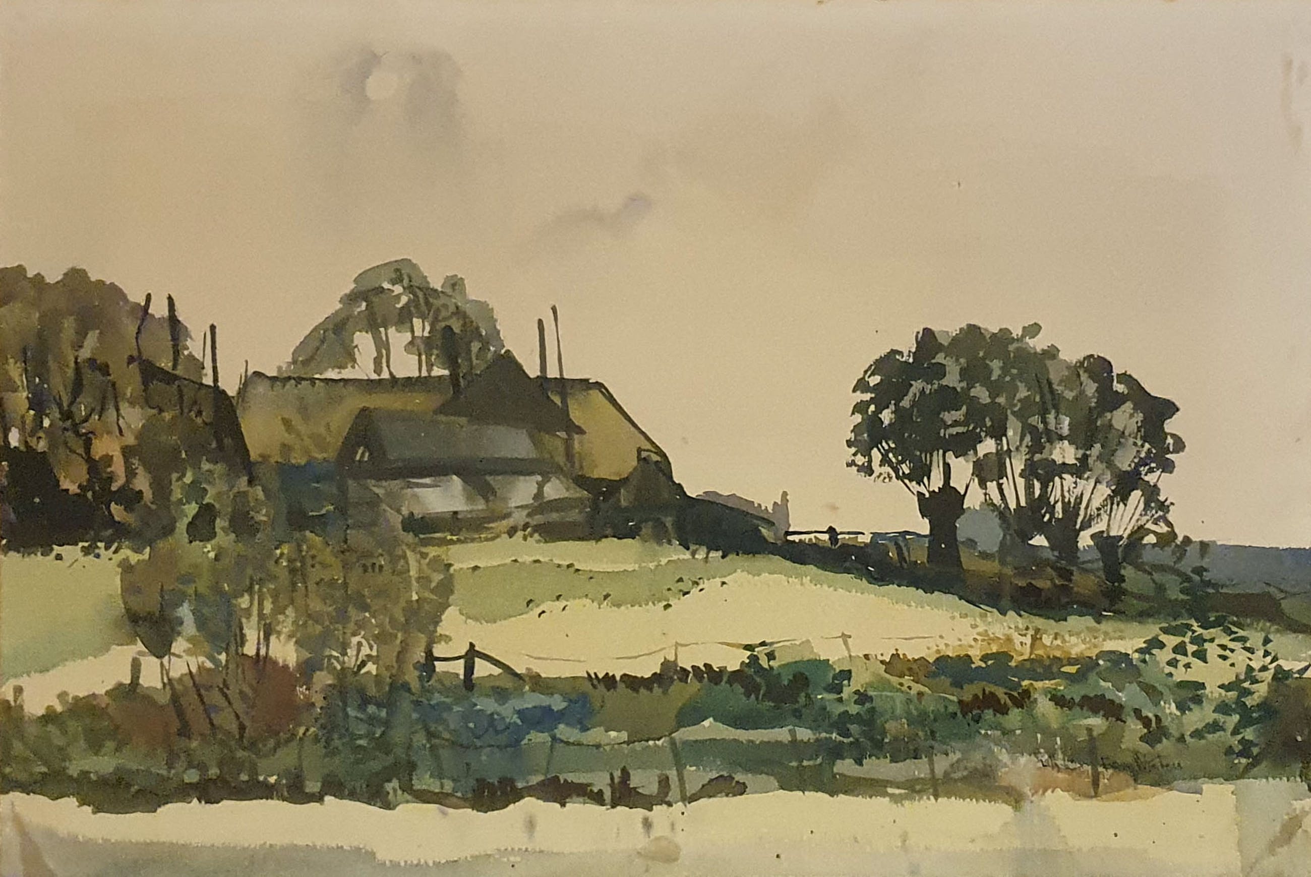 Fraaie aquarel van Foen Winters. Het werk is rechtsonder door de kunstenaar gesigneerd.
