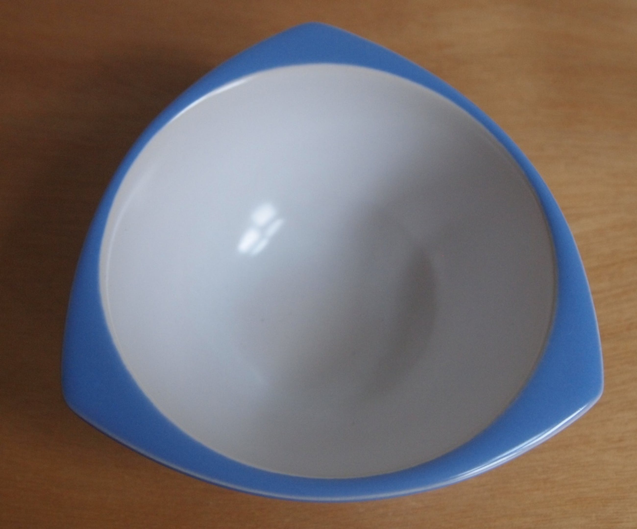 Mooie set van zes pastelkleurige soepkommen model Triangel, nieuw in doos. Uivoering Fokke Hamming voor de Potterie De Driehoek in Huizen.