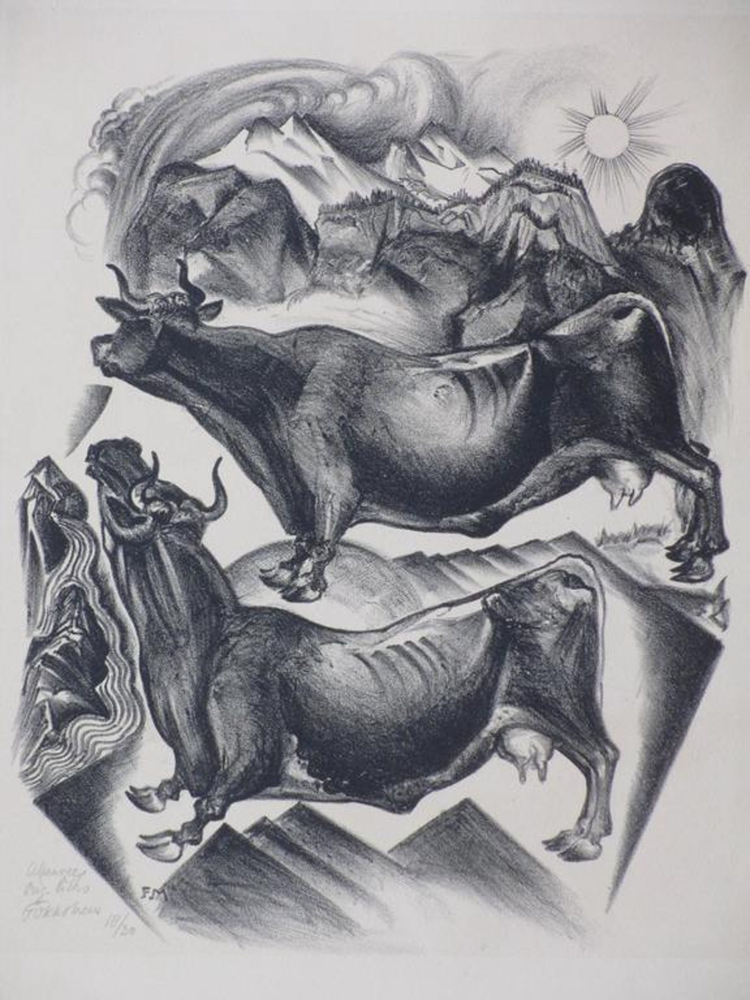 Gesigneerd en getiteld l.o. 'Fokko Mees' en 'Alpenvee', genummerd l.o. '18/30'