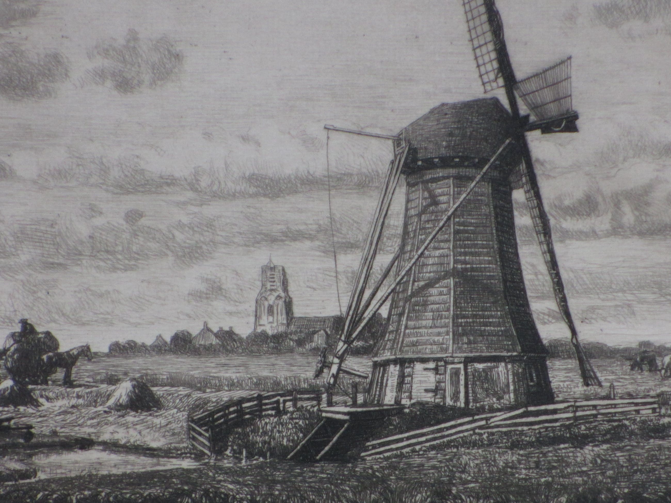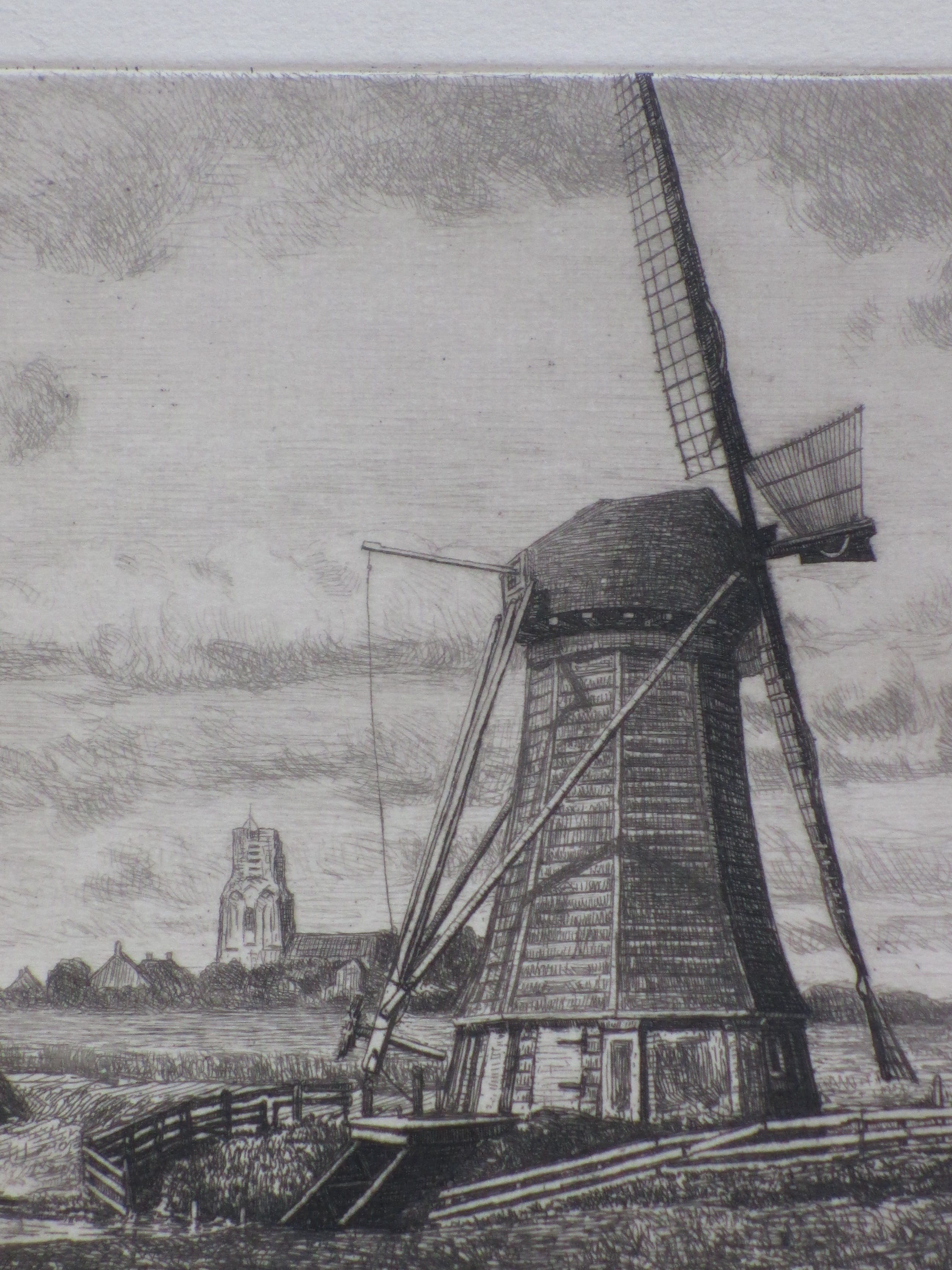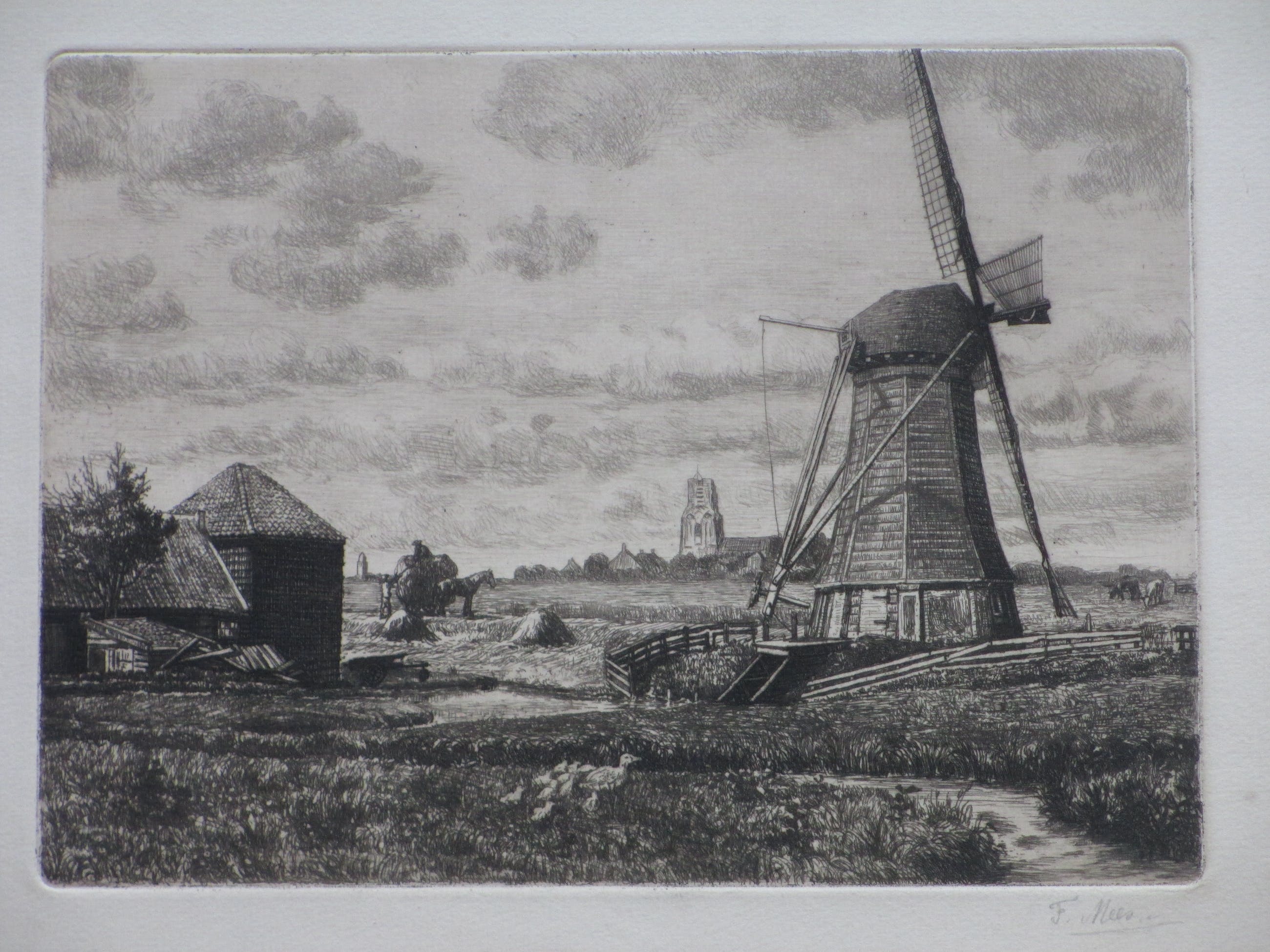 bijzondere, vroege ets door Fokko Mees. Voorstelling van een molenlandschap bij Ransdorp. Losbladig, beeldmaat 18x24.5, bladmaat 28x38 Gesigneerd in potlood r.o.: 'F.Mees' Getiteld op achterzijde: 'Molenlandschap bij Ransdorp'.