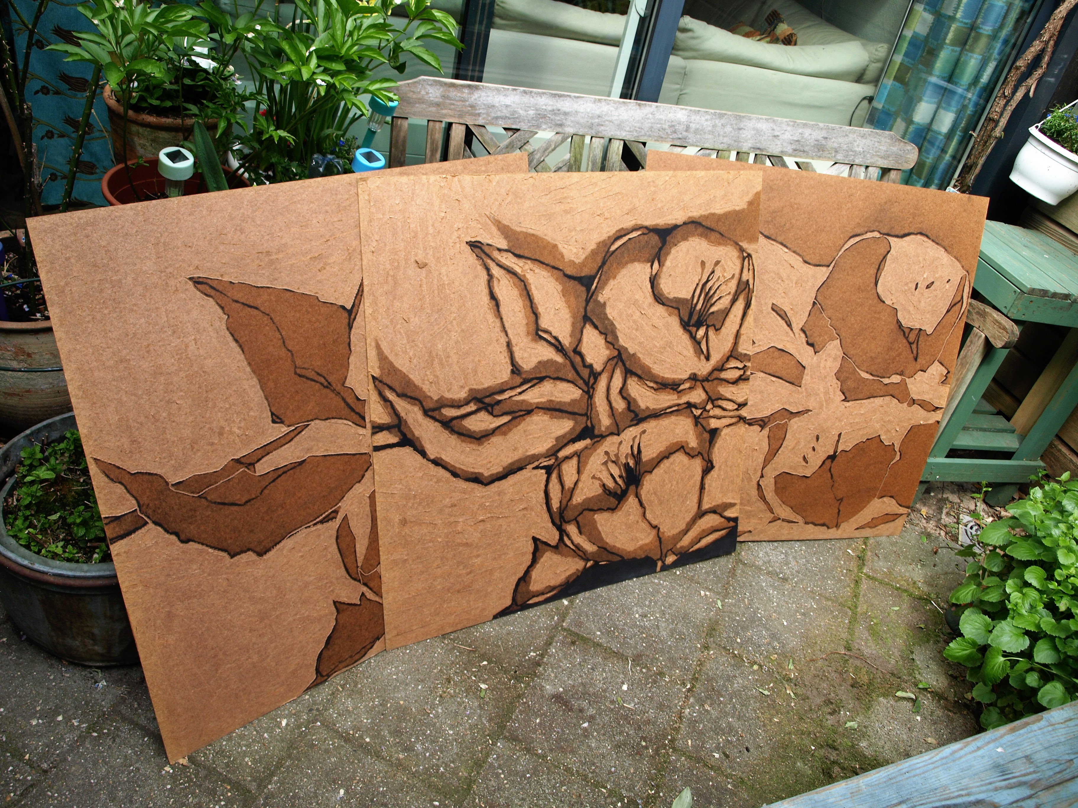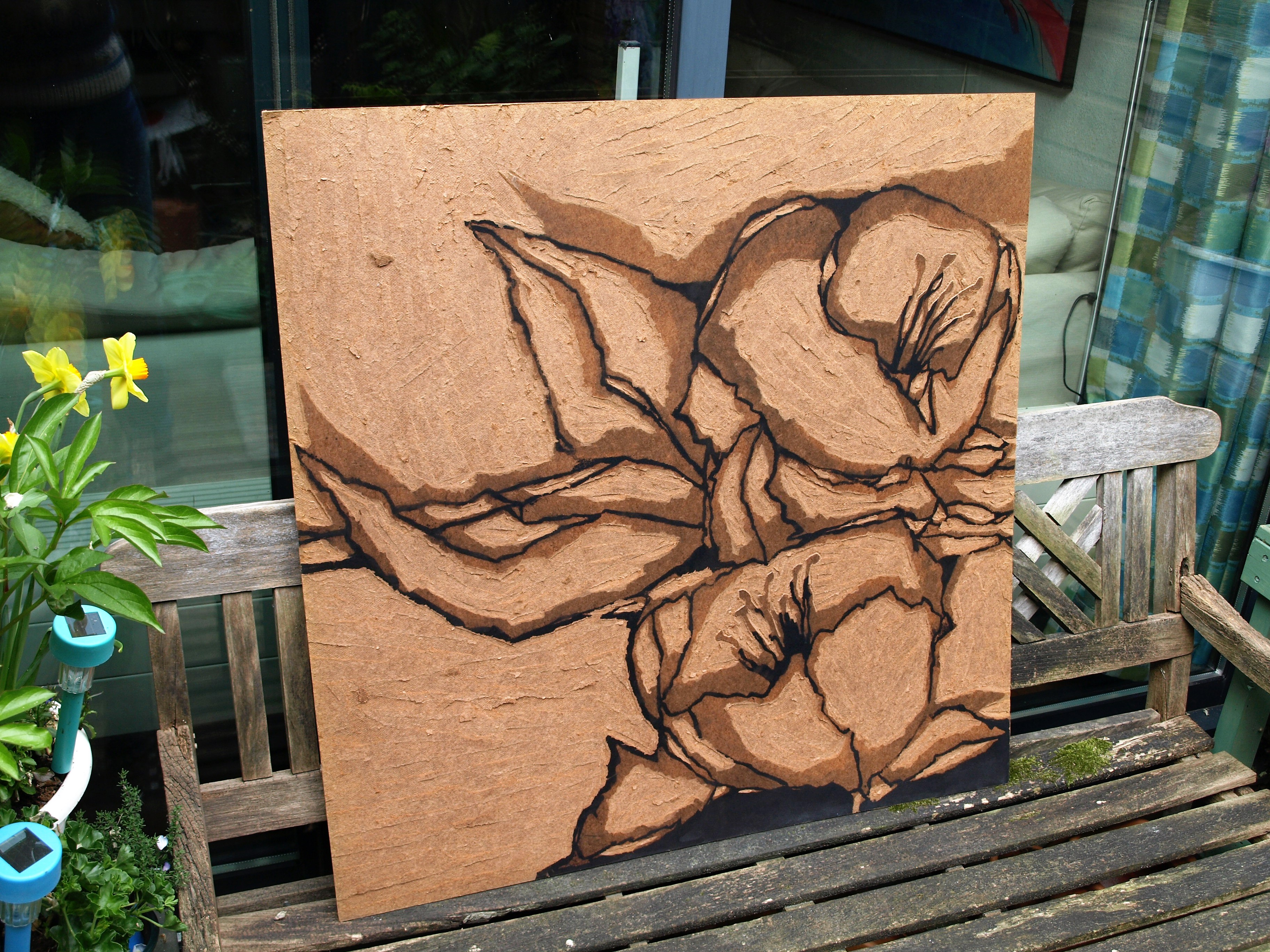 3 Grote hardboard drukplaten / blokken van de Nederlandse kunstenaar Fon Klement (1930-2000). Werkwijze: Fon Klement maakte een ontwerptekening op een hardboardplaat en bewerkte de hardboardplaat met een houtsnijguts. De hogere delen van de plaat werden voorzien van drukinkt, waarna de plaat door de drukpers ging en de inkt werd afgedrukt op een vel papier. Meestal gebruikte de kunstenaar 3 verschillende drukplaten voor 3 drukgangen in verschillende kleuren. De hier aangeboden 3 drukplaten zijn door Fon Klement nooit afgedrukt. Waarschijnlijk was hij ook nog niet klaar met het snijden / bewerken van de platen…. -Afmetingen van elke hardboard-plaat: 90 x 90 cm. -Herkomst: Uit de nalatenschap / inboedel van Fon Klement. -Conditie: In goede staat. Zie ook de foto’s voor een eigen indruk.
