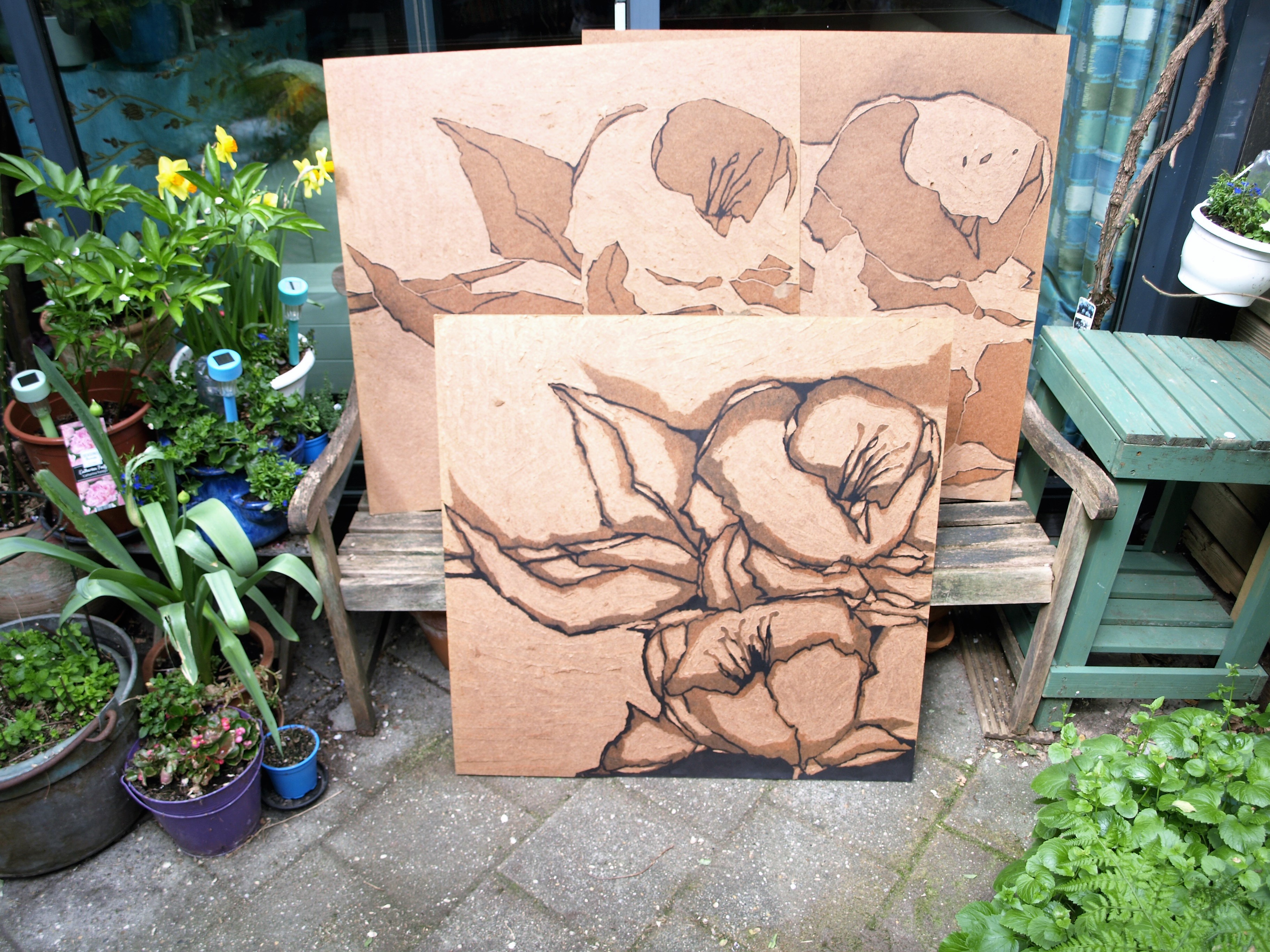 Afhandeling: Let op A.U.B. : -De 3 hardboardplaten kunnen worden afgehaald in Amsterdam. Afhalen heeft onze sterke voorkeur. Vanwege het formaat kunnen de 3 werken niet per post verzonden worden. Het afhalen heeft voor ons geen haast, dus het kan wanneer het u schikt om naar Amsterdam te komen. -U kunt in Nederland en België eventueel gebruikmaken van de gespecialiseerde koeriersdienst van Kunstveiling: “Swift koeriers”. (zie ook de info onderaan deze pagina onder het kopje “Koeriersdienst”). Binnen Nederland zijn de bezorgkosten van Swift Koeriers voor dit werk: € 47,49.