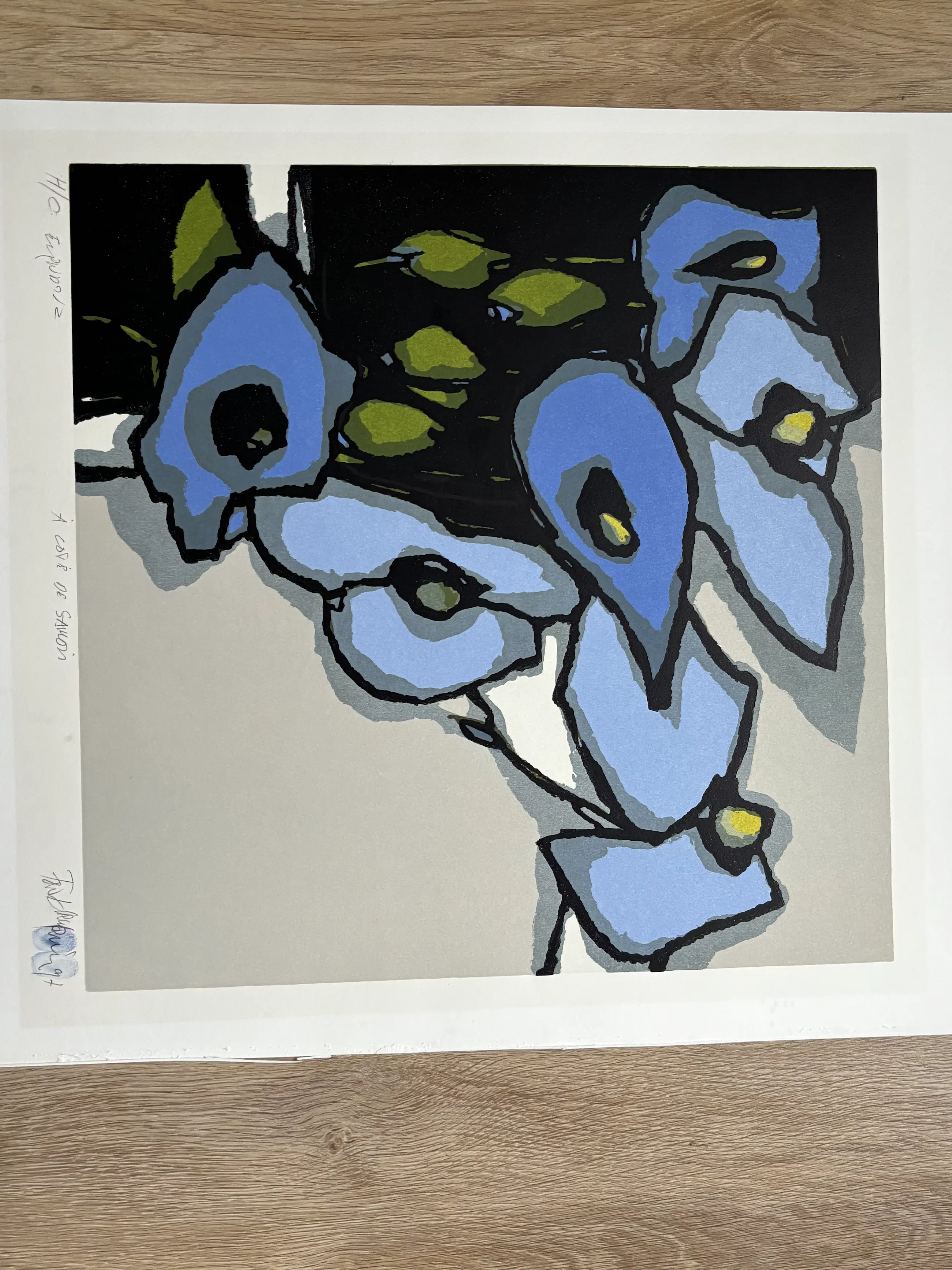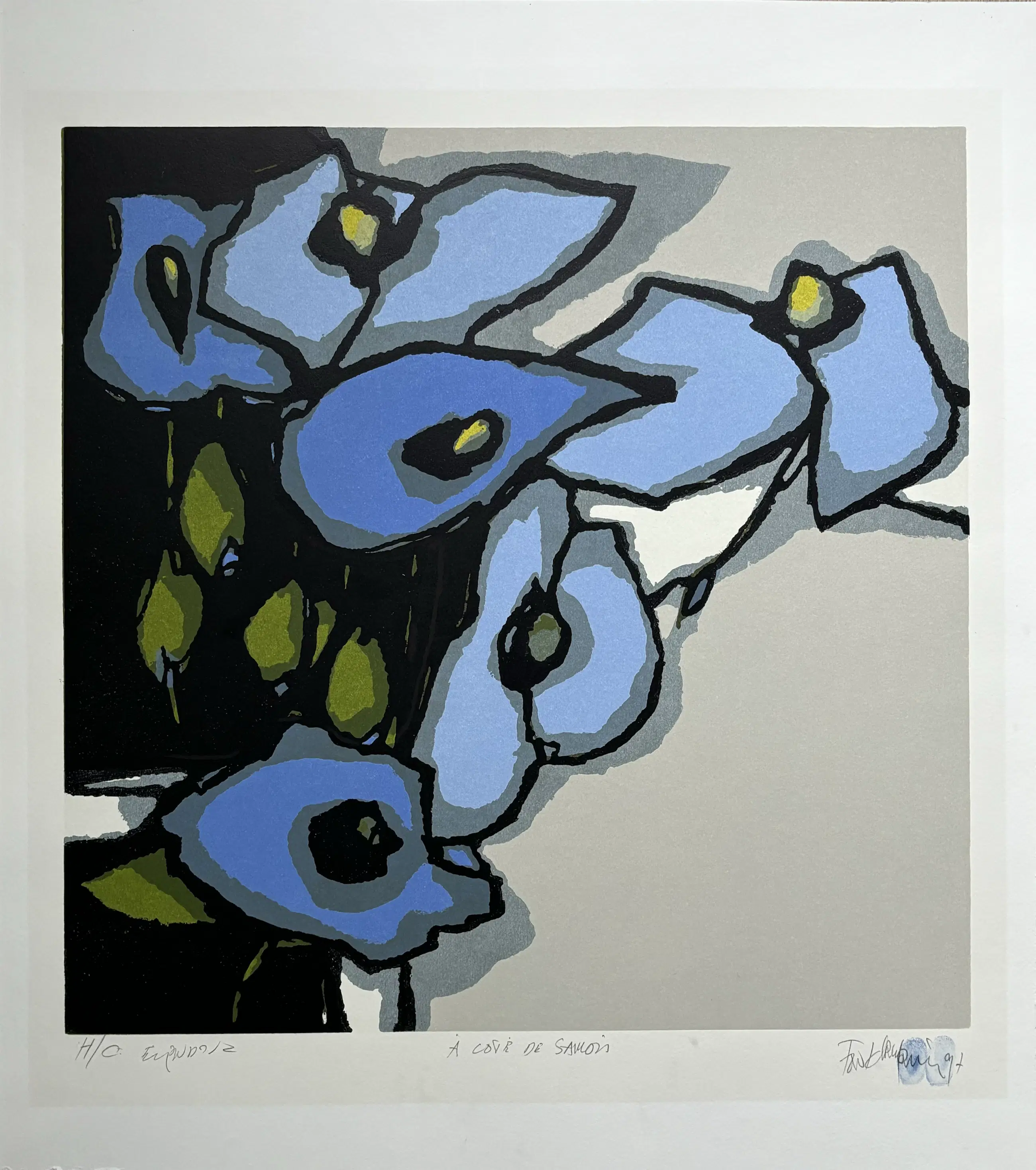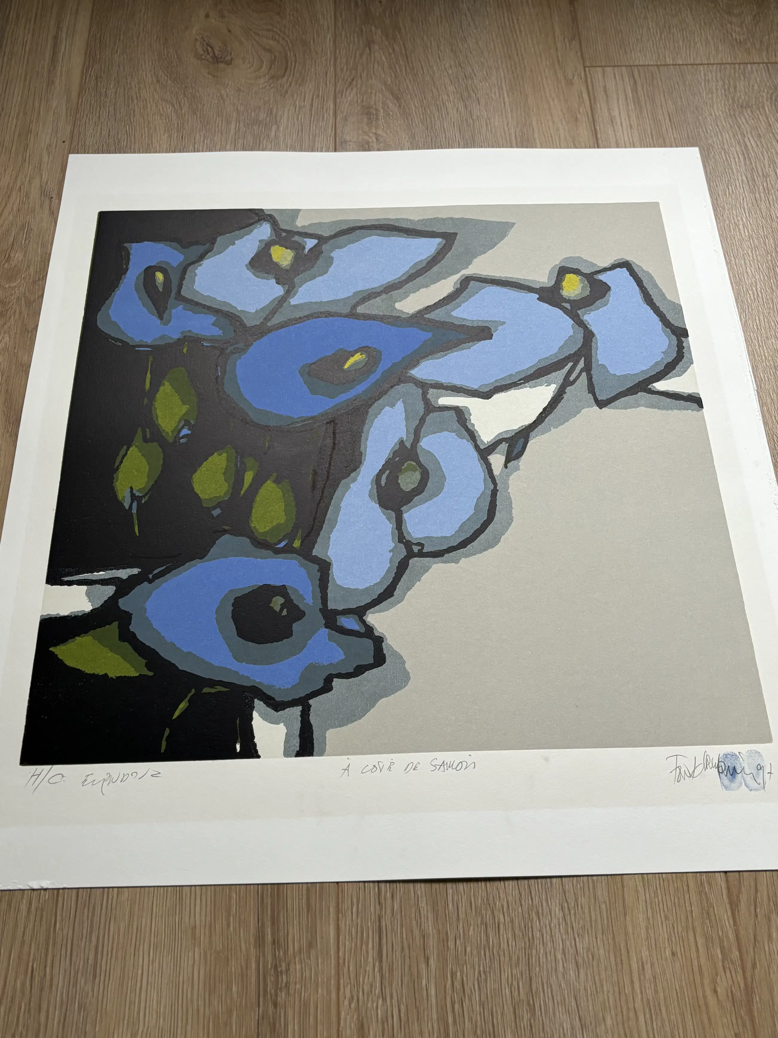 Zeer mooie zeefdruk en in goede staat. Gesigneerd met twee blauwe vingerafdrukken.