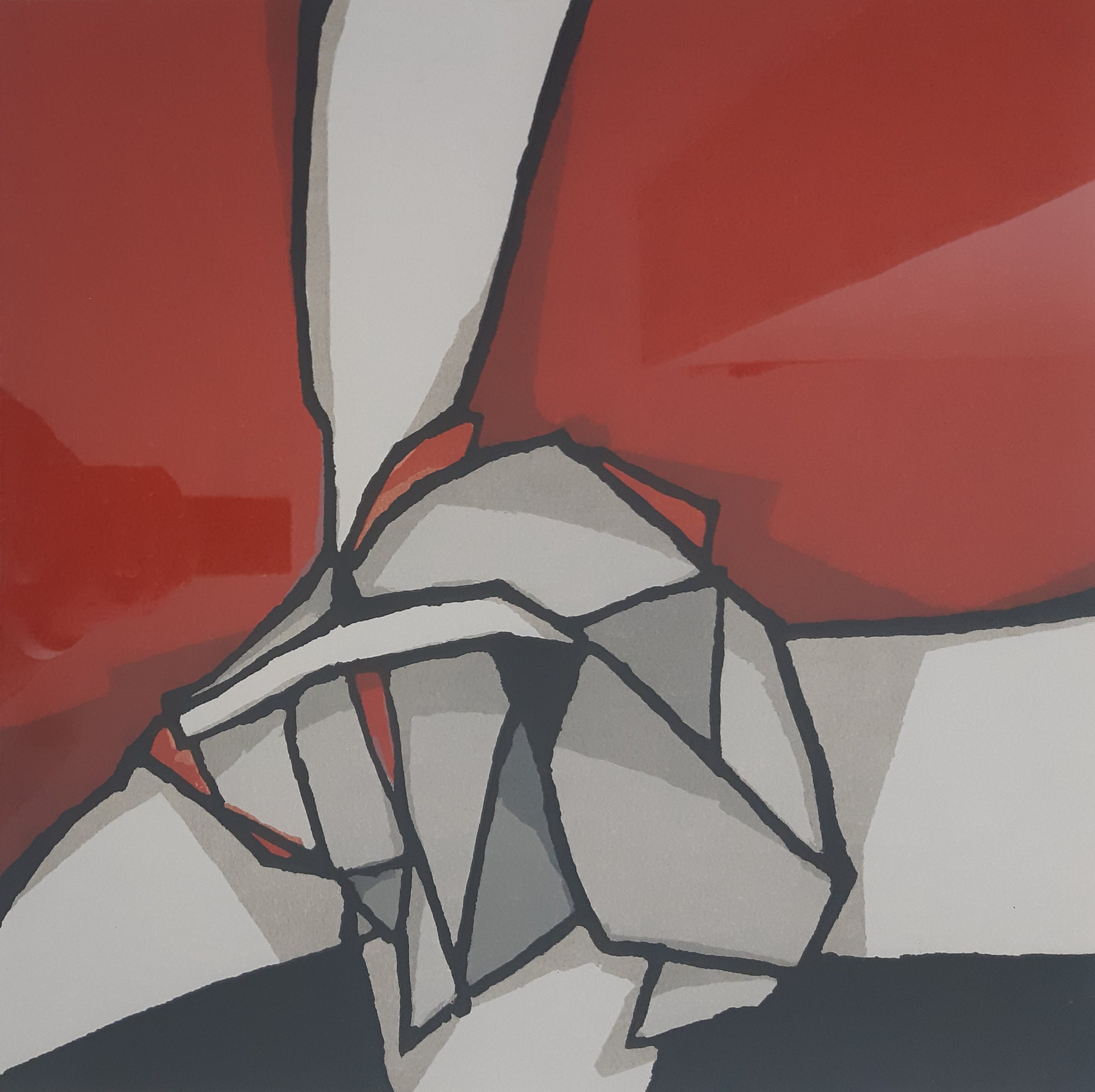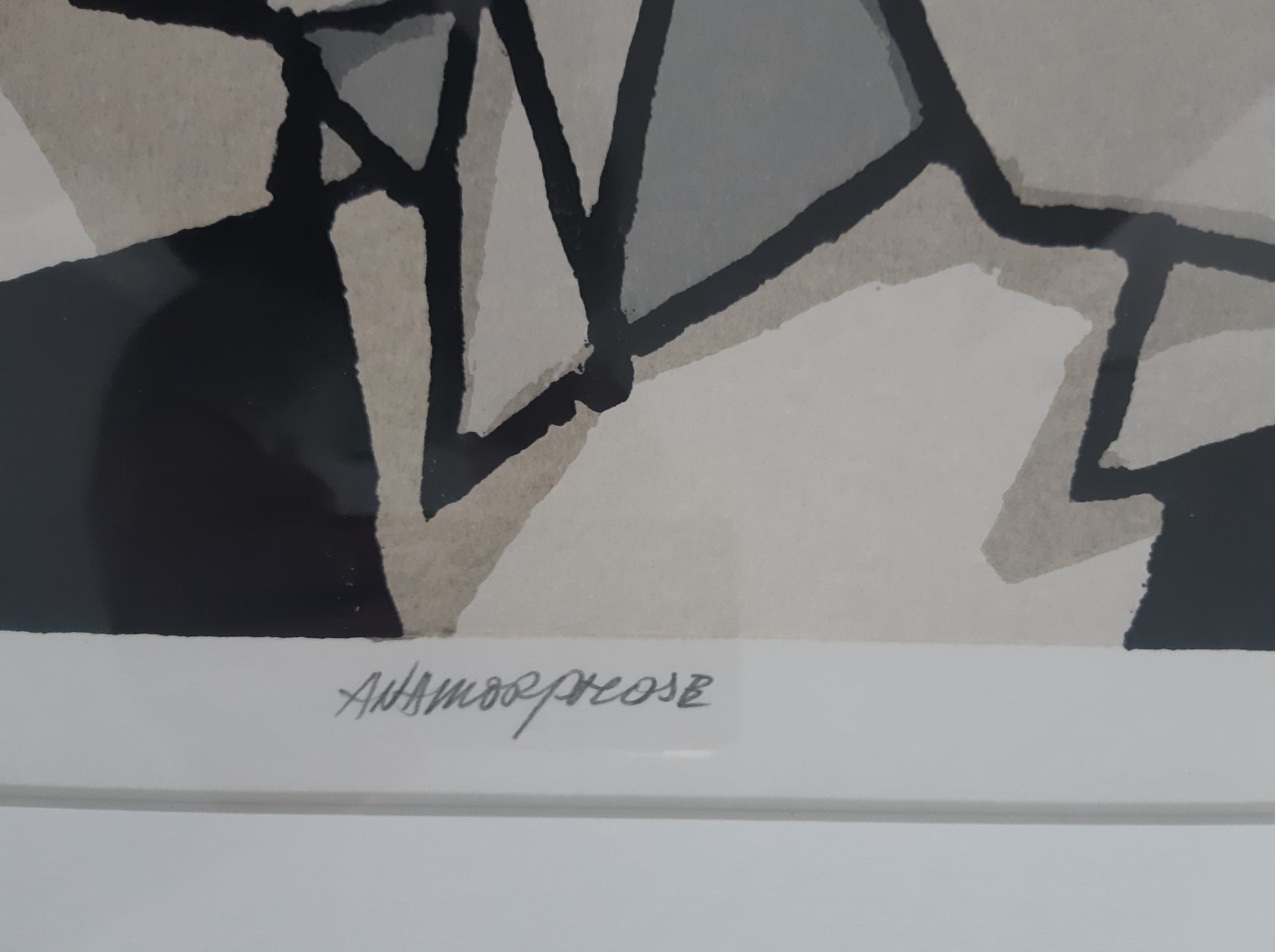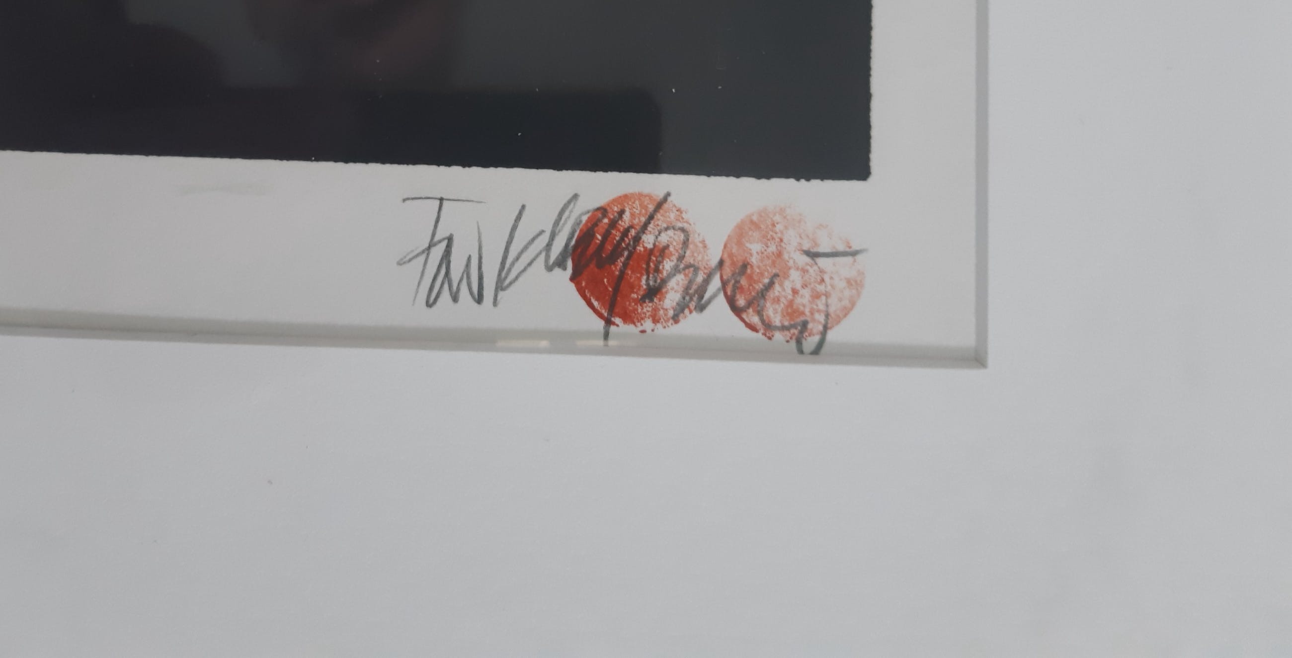 Boarddruk van Fon Klement, ingelijst in witte houten lijst. Het werk is met potlood genummerd, gesigneerd en voorzien van de titel en de vermelding eigen druk. Rechtsonder ook de kenmerkende duimafdrukken van de maker. De conditie van het geheel is goed, de afbeelding is uitstekend, de lijst heeft aan de onderkant gebruikssporen. Op de foto's zijn reflecties zichtbaar.