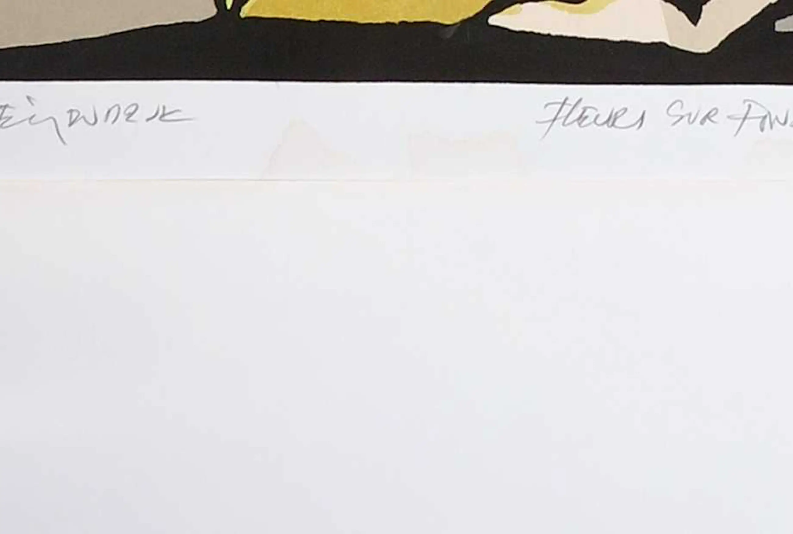 | Het werk heeft meerdere krassen en lichte vlekken op het beeld. De onderste marge heeft vlekken met waterschade. Het passe-partout is kapot en vies. | |||||||||||