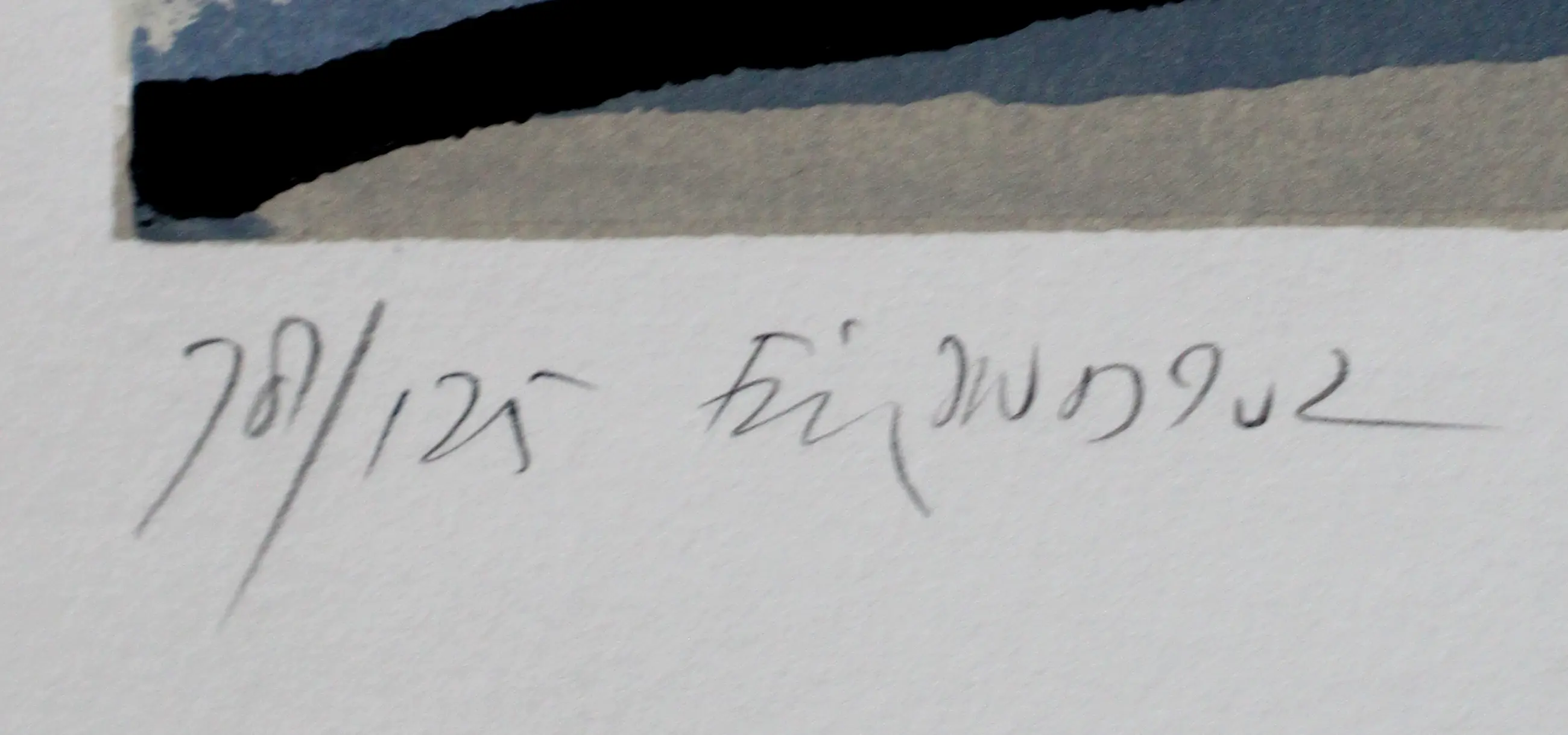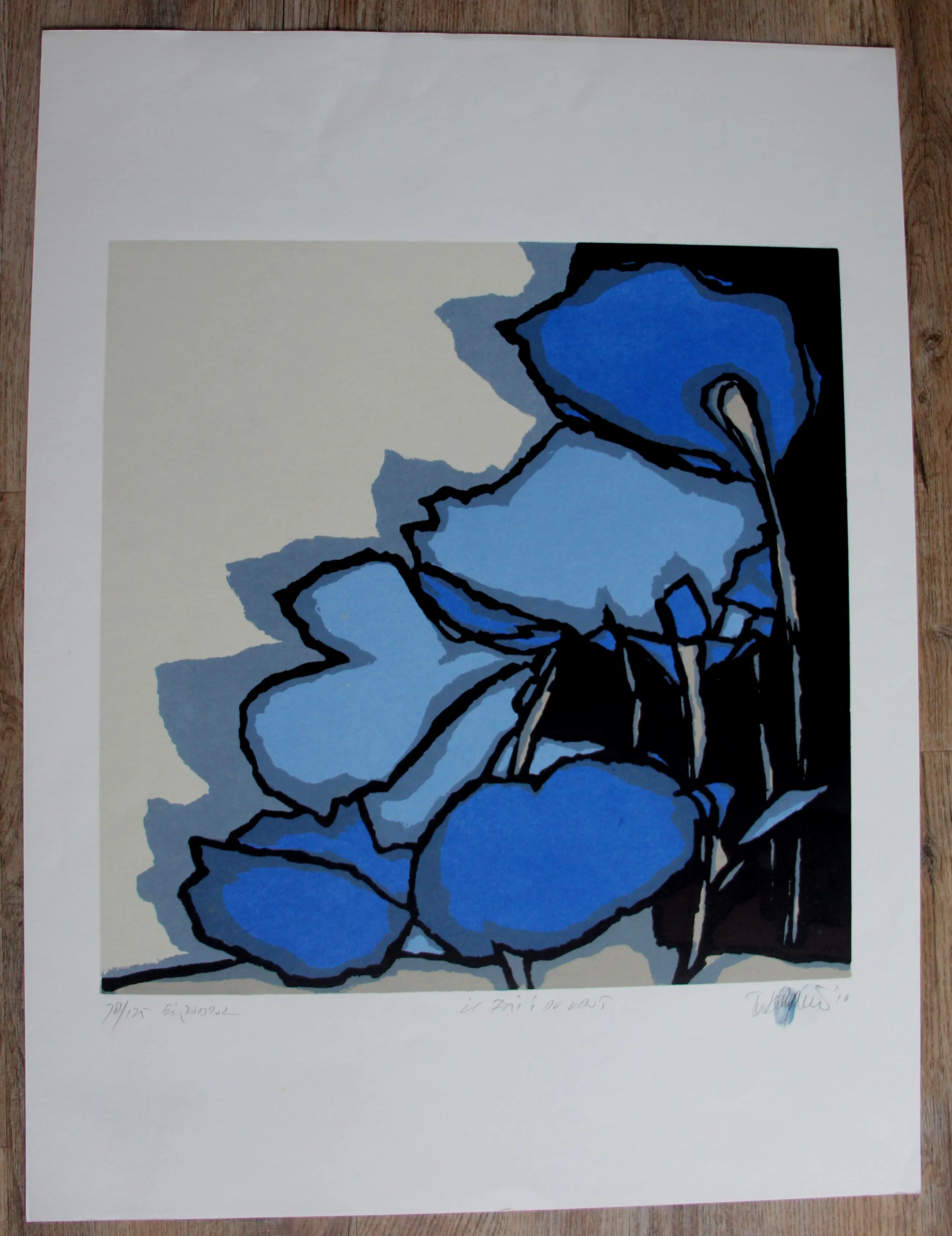 Boardsnede van Fon Klement. Titel: "If fait du vent"(Taxus maakt de wind). Jaar: 1996. Oplage: 78/125, e.d. Afmetingen blad: H80 x b60cm. Afmetingen voorstelling: H50 x b50cm. Het werk is rechts onderaan gesigneerd door de kunstenaar. Ook is het werk voorzien van een vinger afdruk vd kunstenaar. De authenticiteit van het aangeboden werk wordt volledig gegarandeerd. Een certificaat van echtheid kan, op aanvraag, worden gemaild.