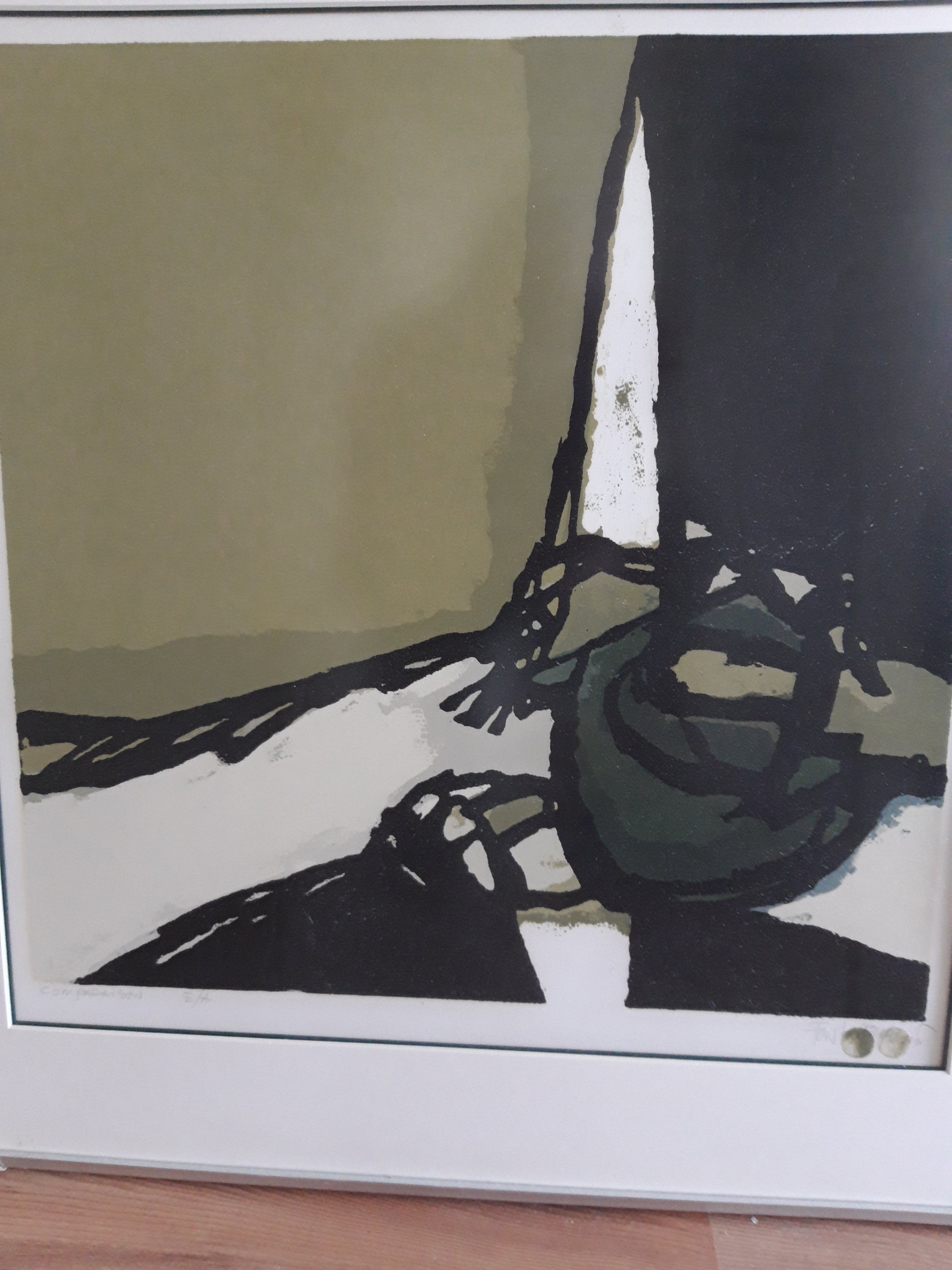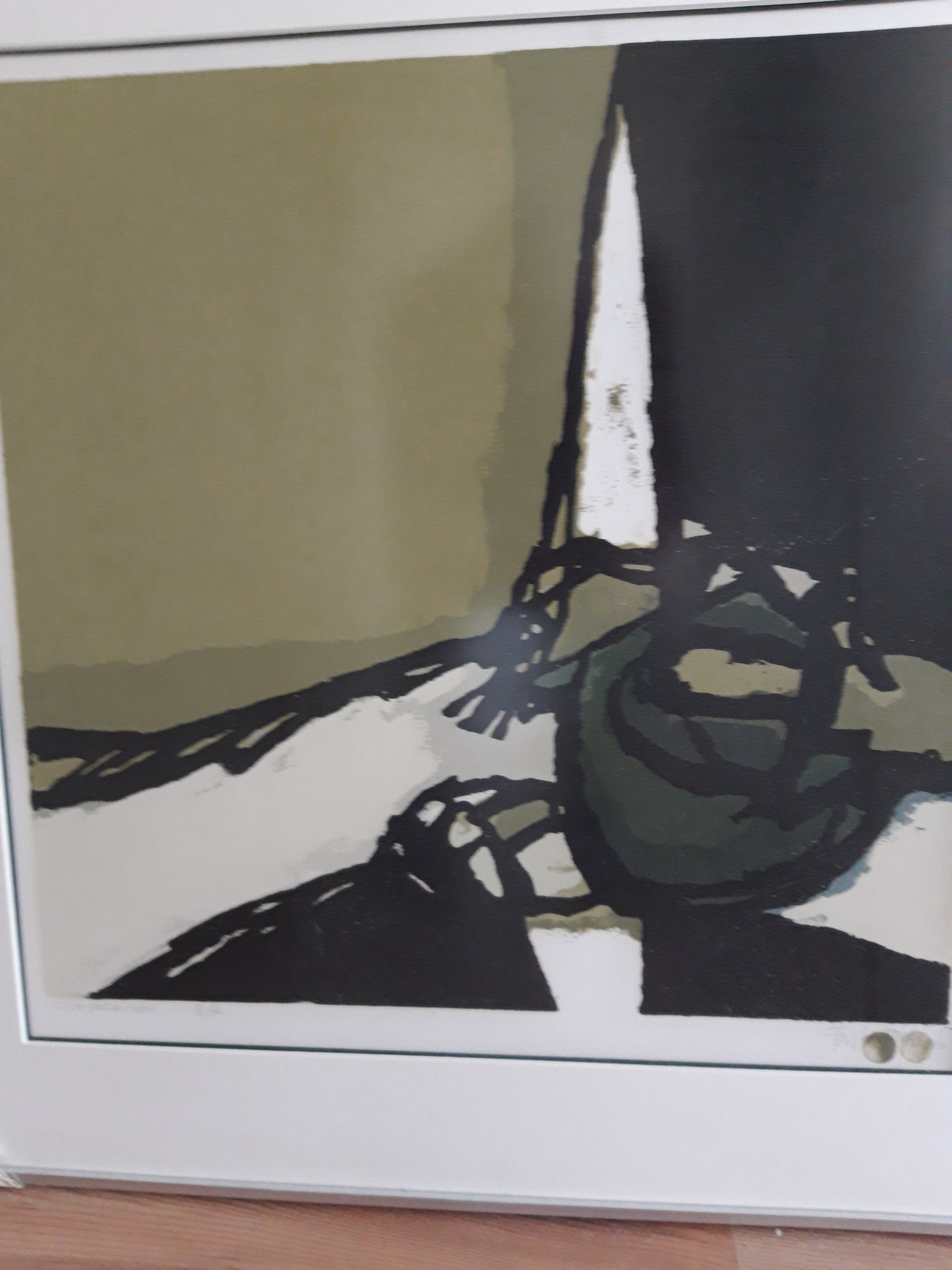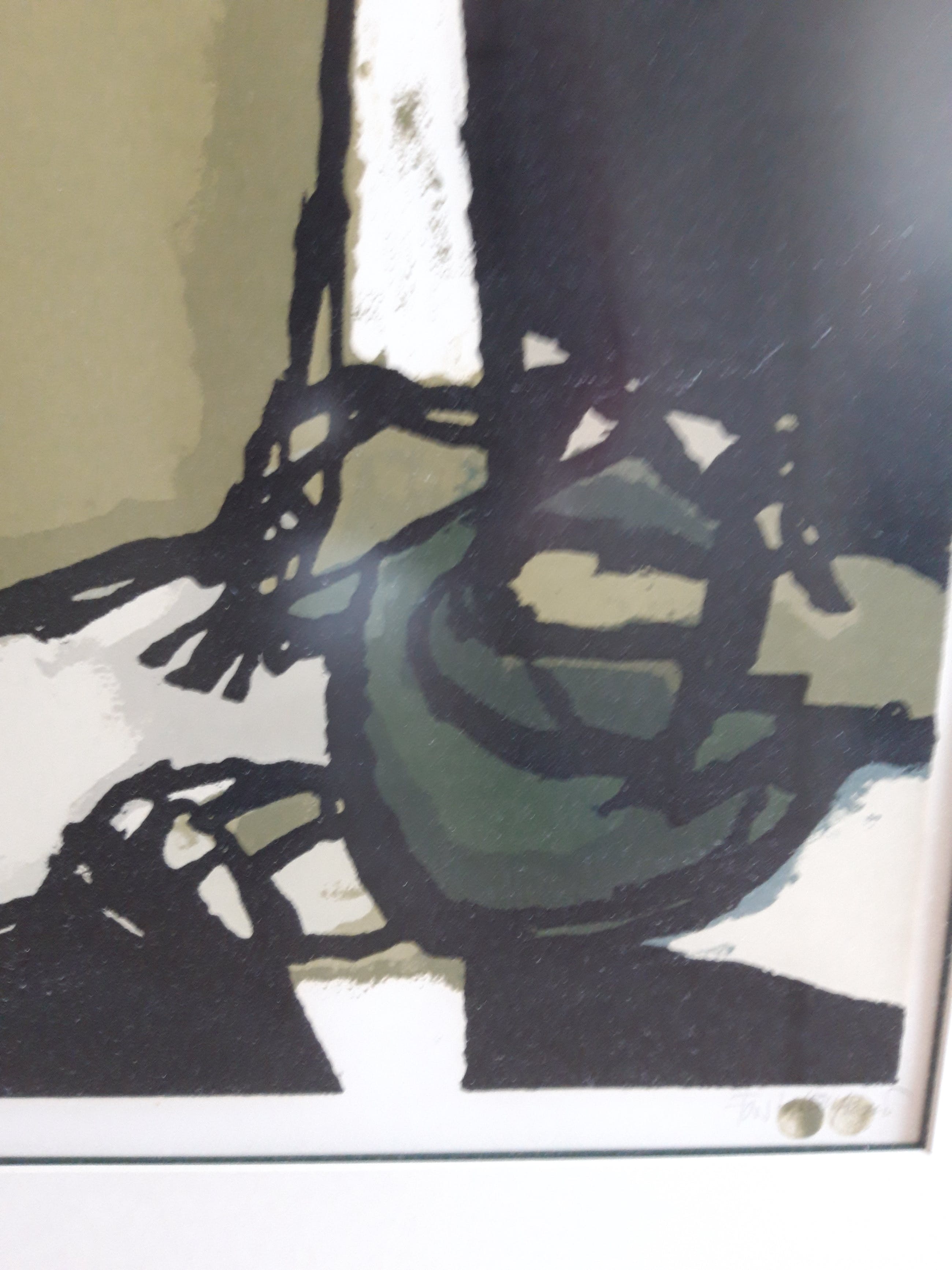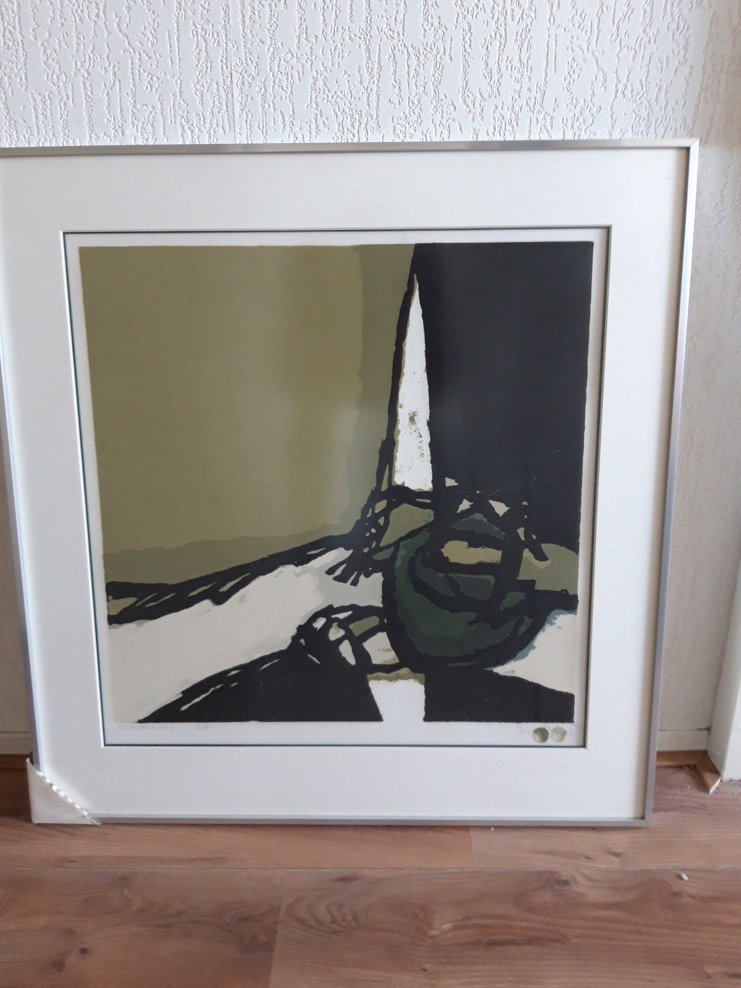 Fraai groen gekleurde boardsnede van Fon Klement- met vingerdruk gesigneerd-speciaal-