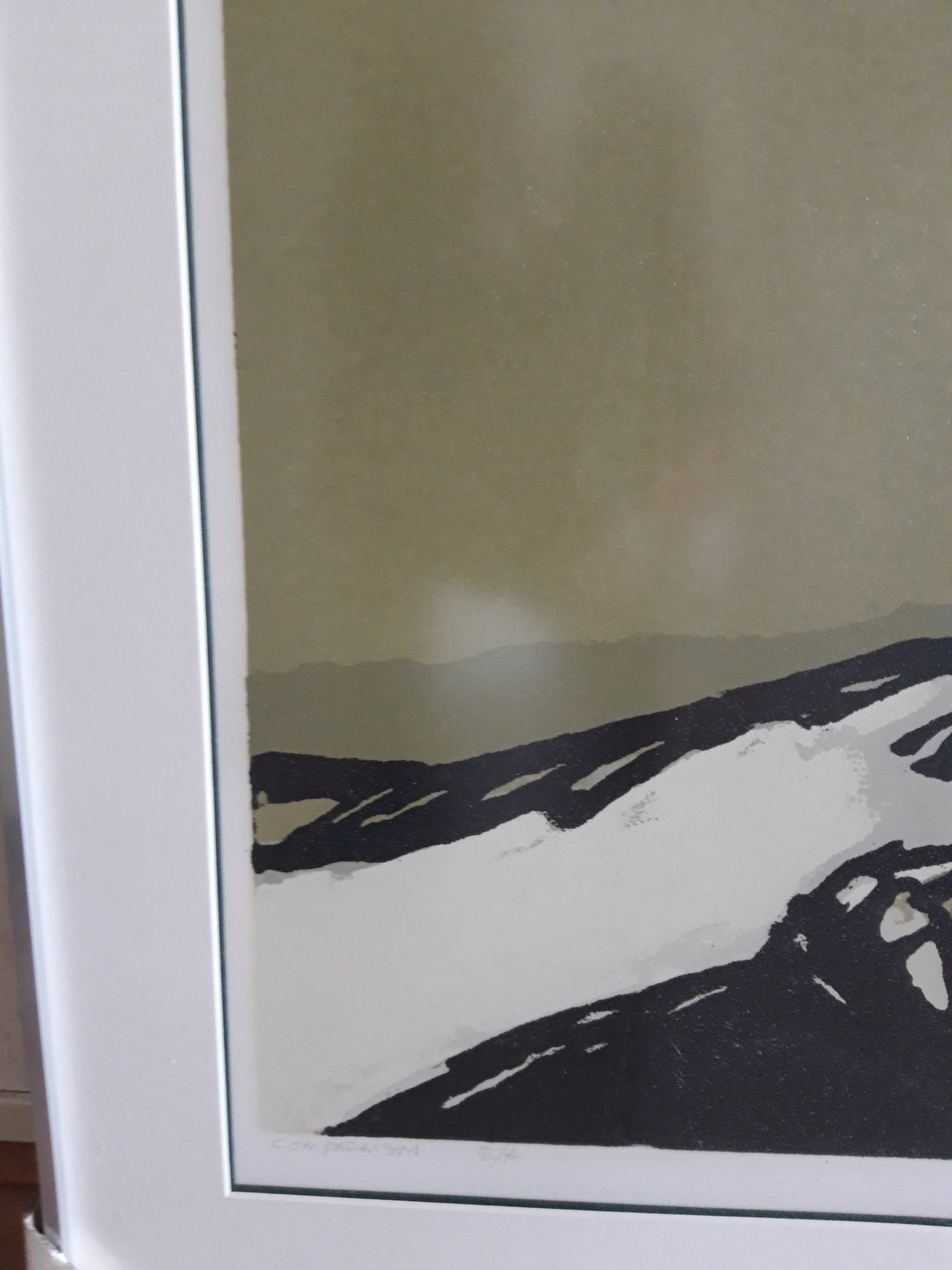 ingelijst in een strak zilveren kleurige aluminiumlijst- met een dubbel passepartout