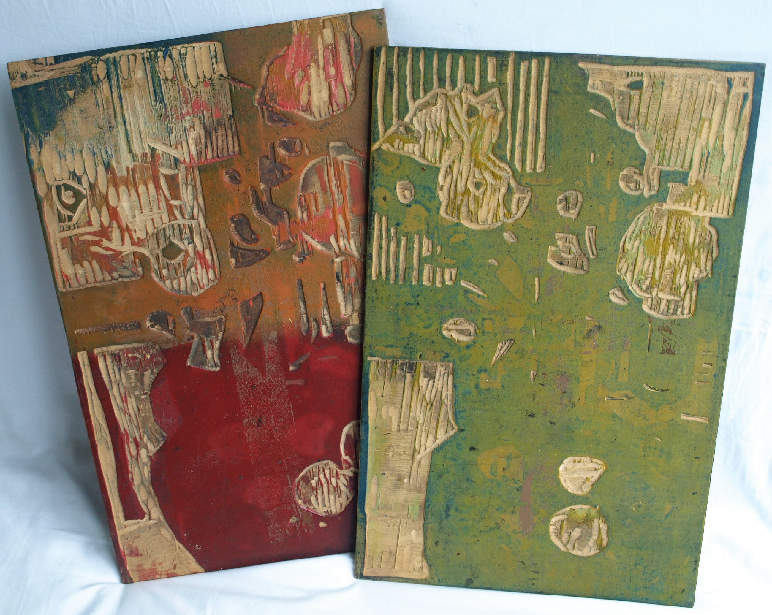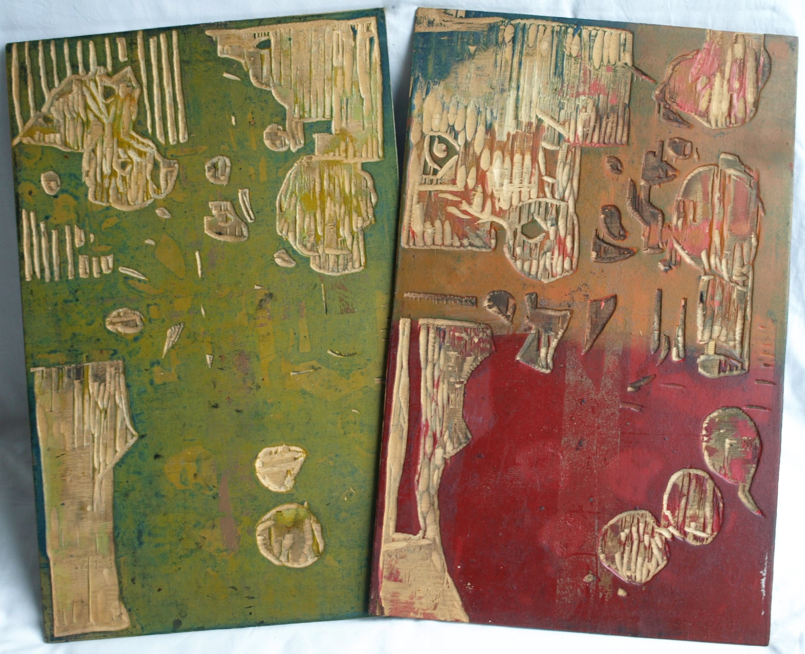 N.B. : Dit kavel bestaat uit de 2 houten panelen. De afdruk van de houtsnede zit niet bij dit kavel!