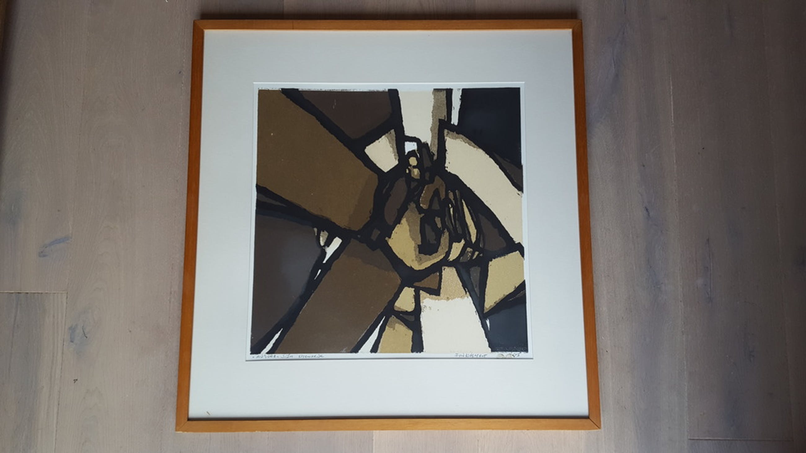 Houtsnede 3/24, gesigneerd met duimafdrukken