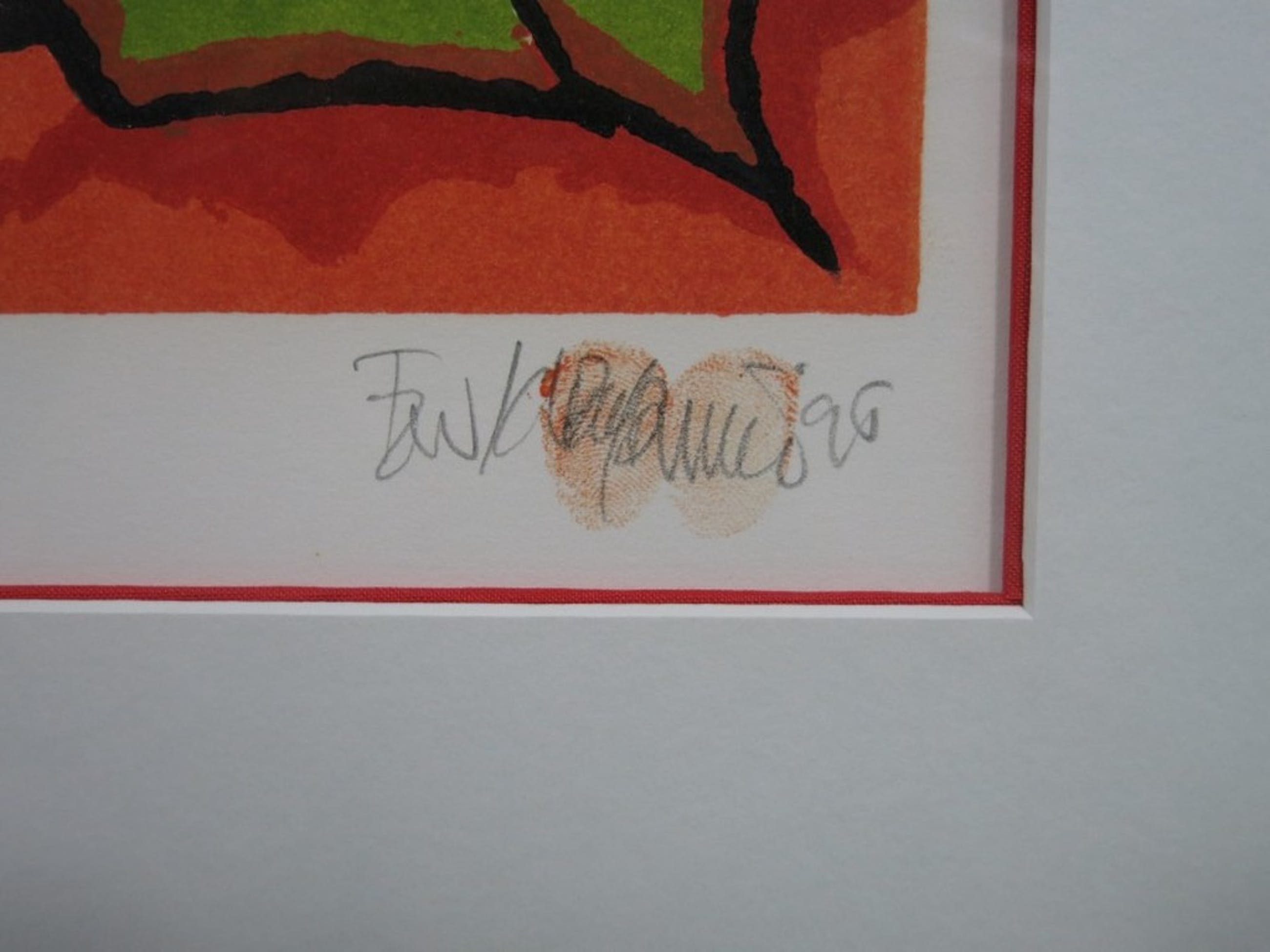 Gesigneerd: Ja, handgeschreven met potlood en met vingerafdrukken (rechtsonder)
