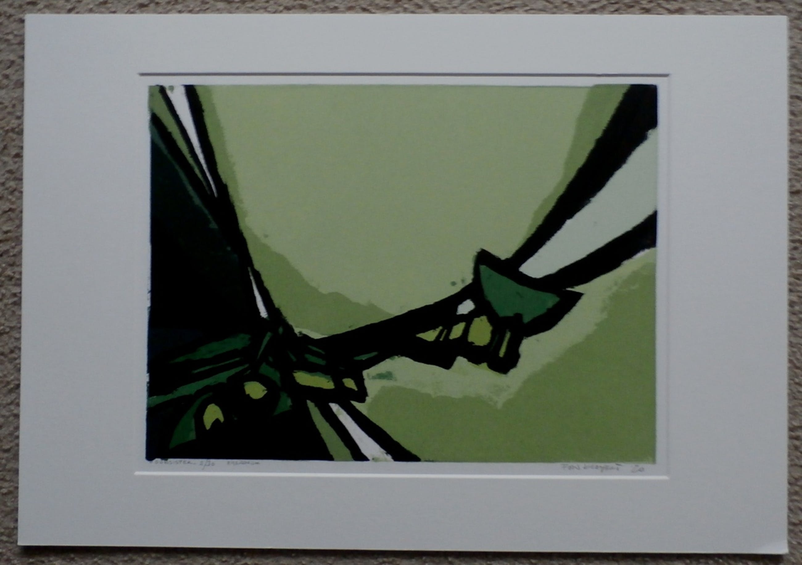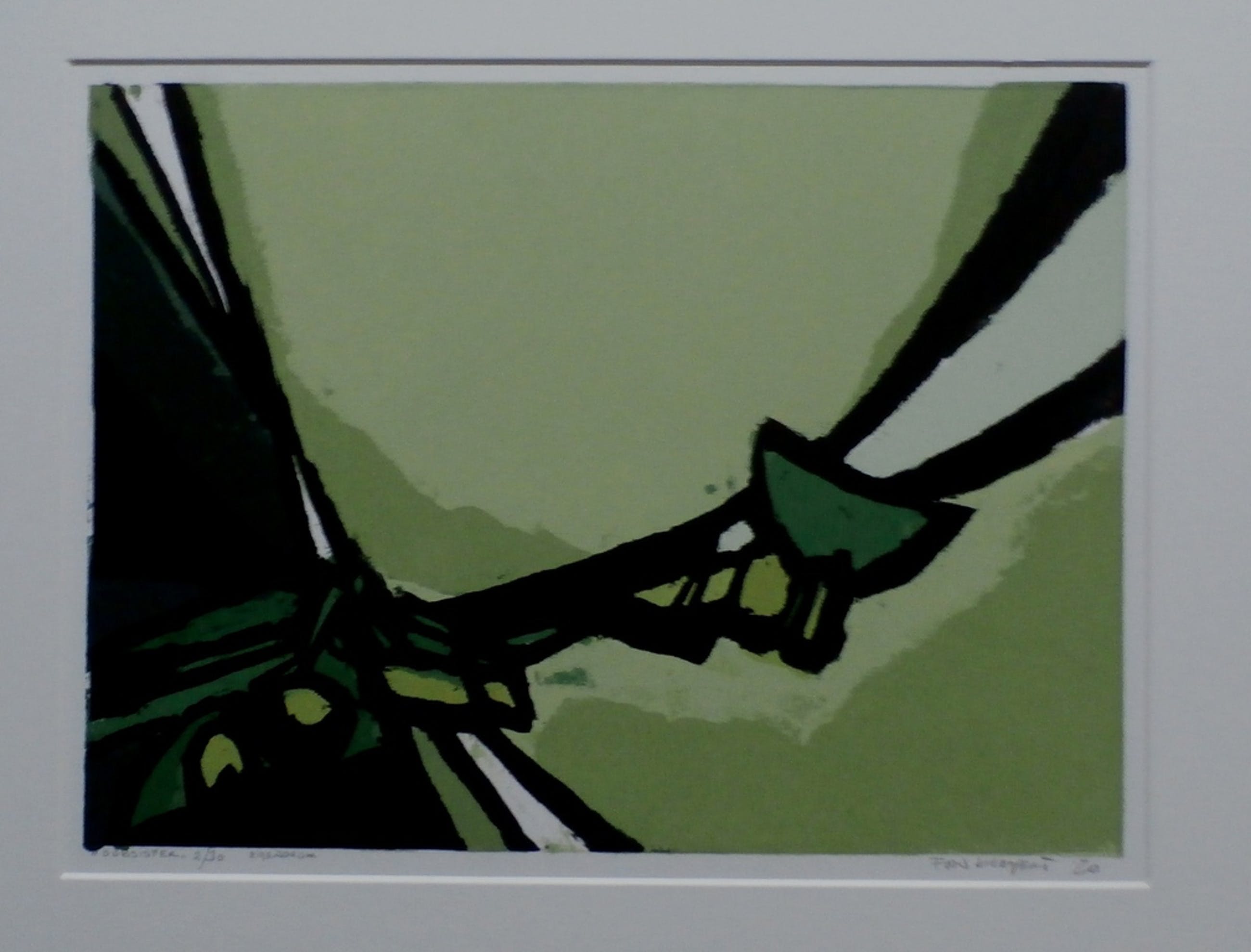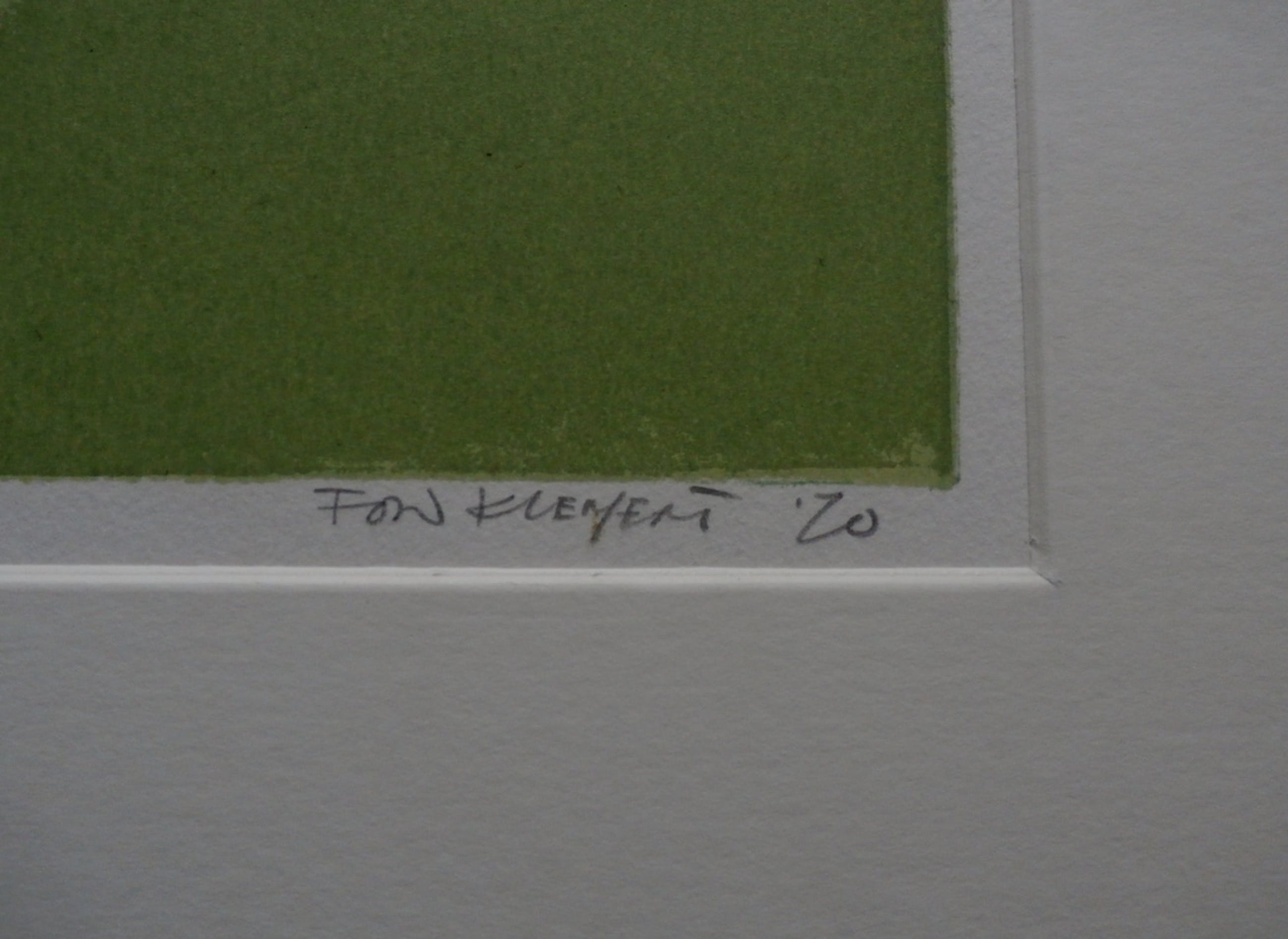 Boardsnede van Fon Klement. Titel: Subsister. Nummer: 2/30 (eigen druk). Jaar: 1970. Afmetingen inclusief passe - partout: h42,5 x b60 cm. Afmetingen werk: h31,5 x b41,5 cm. Gesigneerd rechts onder met potlood.