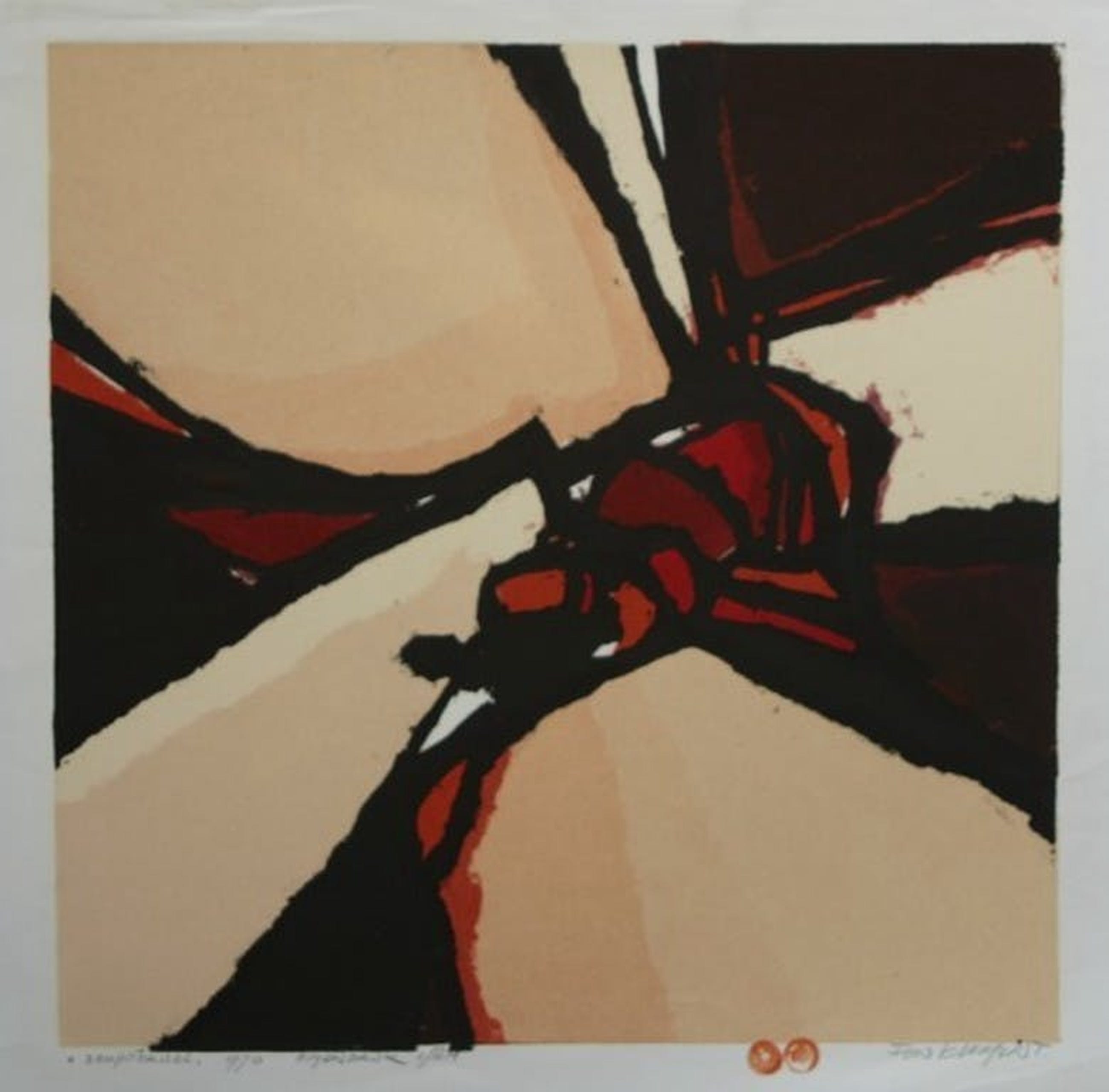 | Fon Klement, boardsnede, titel: Sempiternel uit 1970 oplagenummer 1/24 beeldformaat 50 x 50 cm. bladformaat 55.3 x 66.5 cm. de boardsnede is niet ingelijst kosten verzending in NL en BE € 10,00 | |||