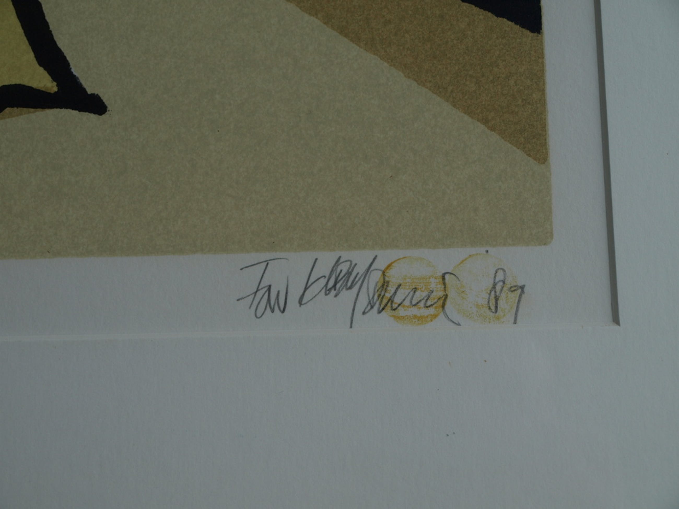 -Het werk is rechtsonder gesigneerd door de kunstenaar met handtekening en vingerafdrukken.