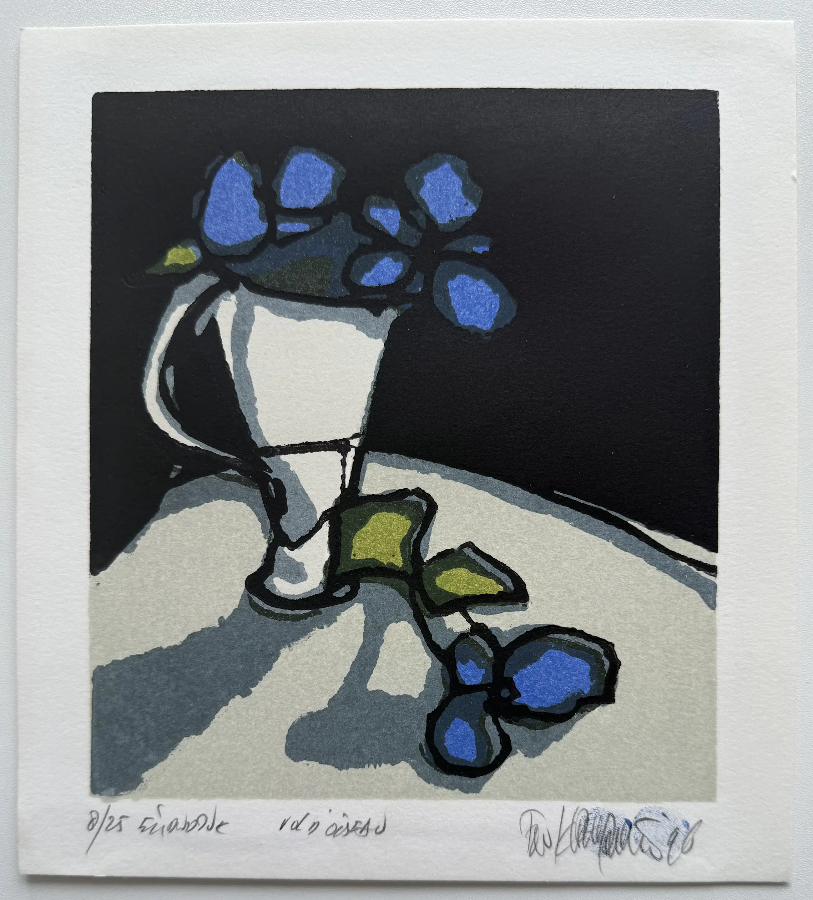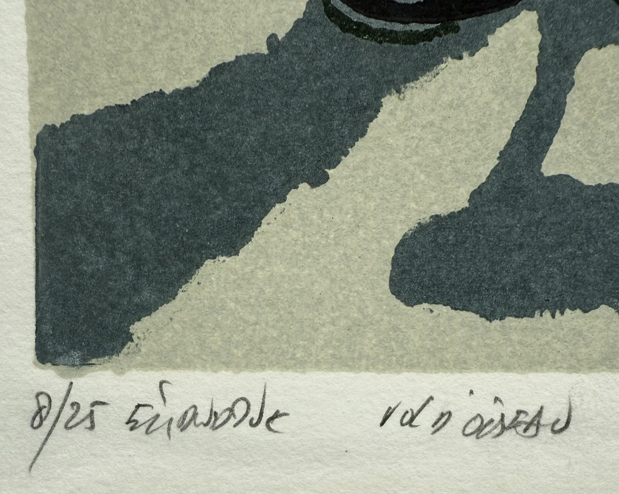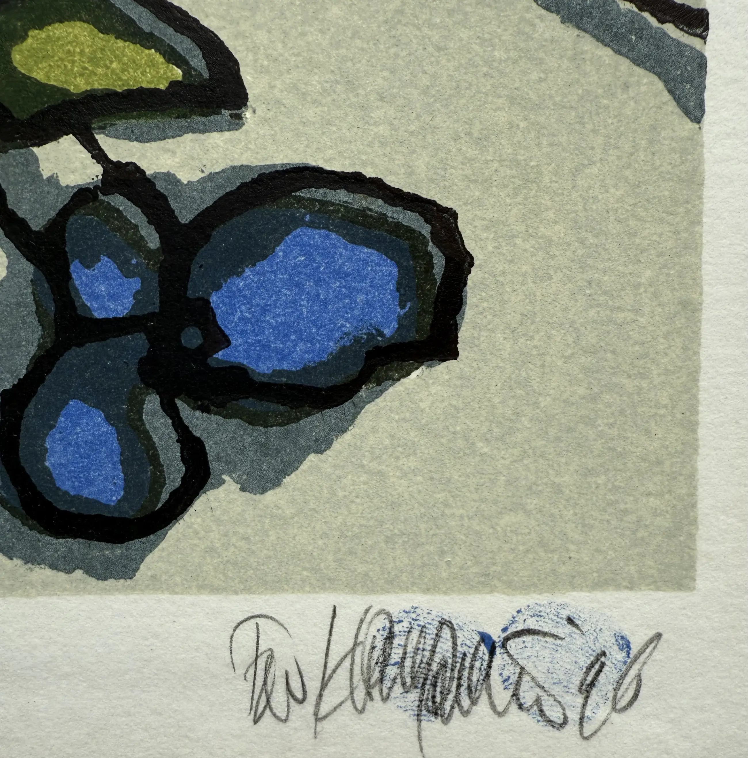 Mooie en zeldzame zeefdruk van de hand van Fon Klement. Papierformaat is 22x20cm.