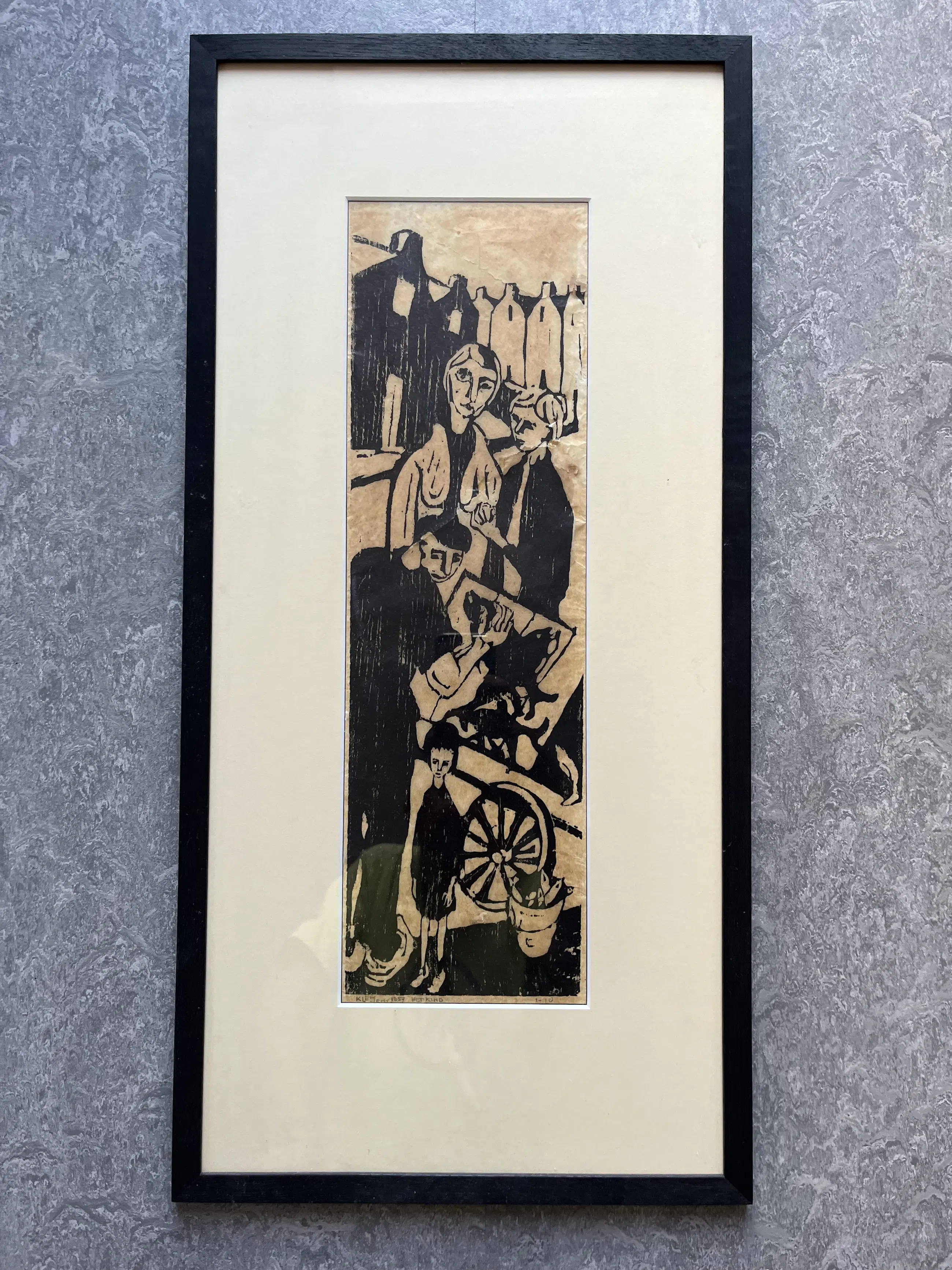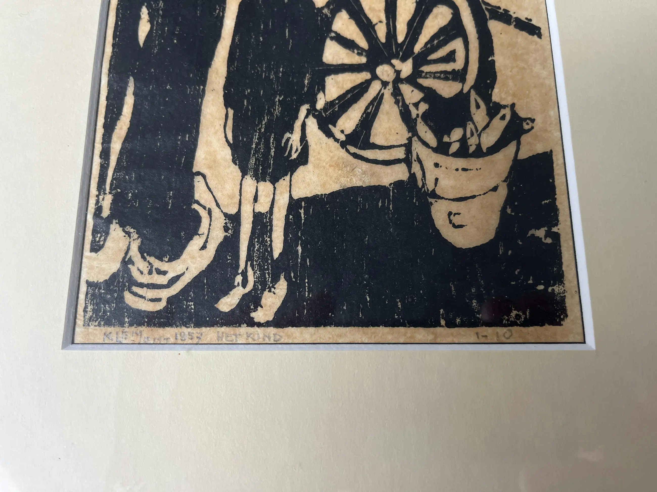 Deze houtsnede op kwetsbaar papier van Fon Klement uit 1957 is via familie in ons bezit gekomen en eind jaren 1980 ingelijst om schade te voorkomen. Toen is met potlood titel, jaartal en maker erbij geschreven. Vermelding “1- 10” is mogelijk wel origineel.