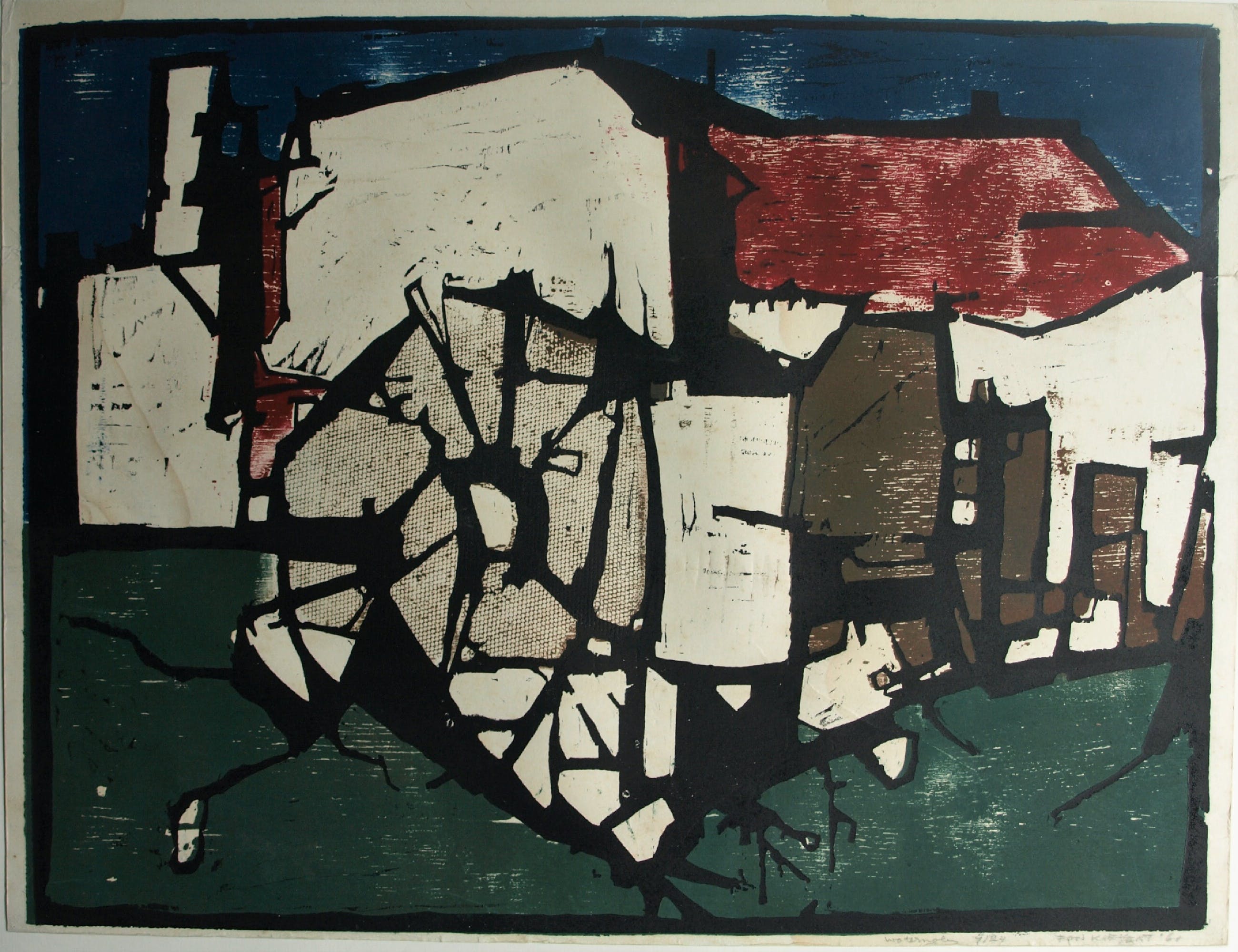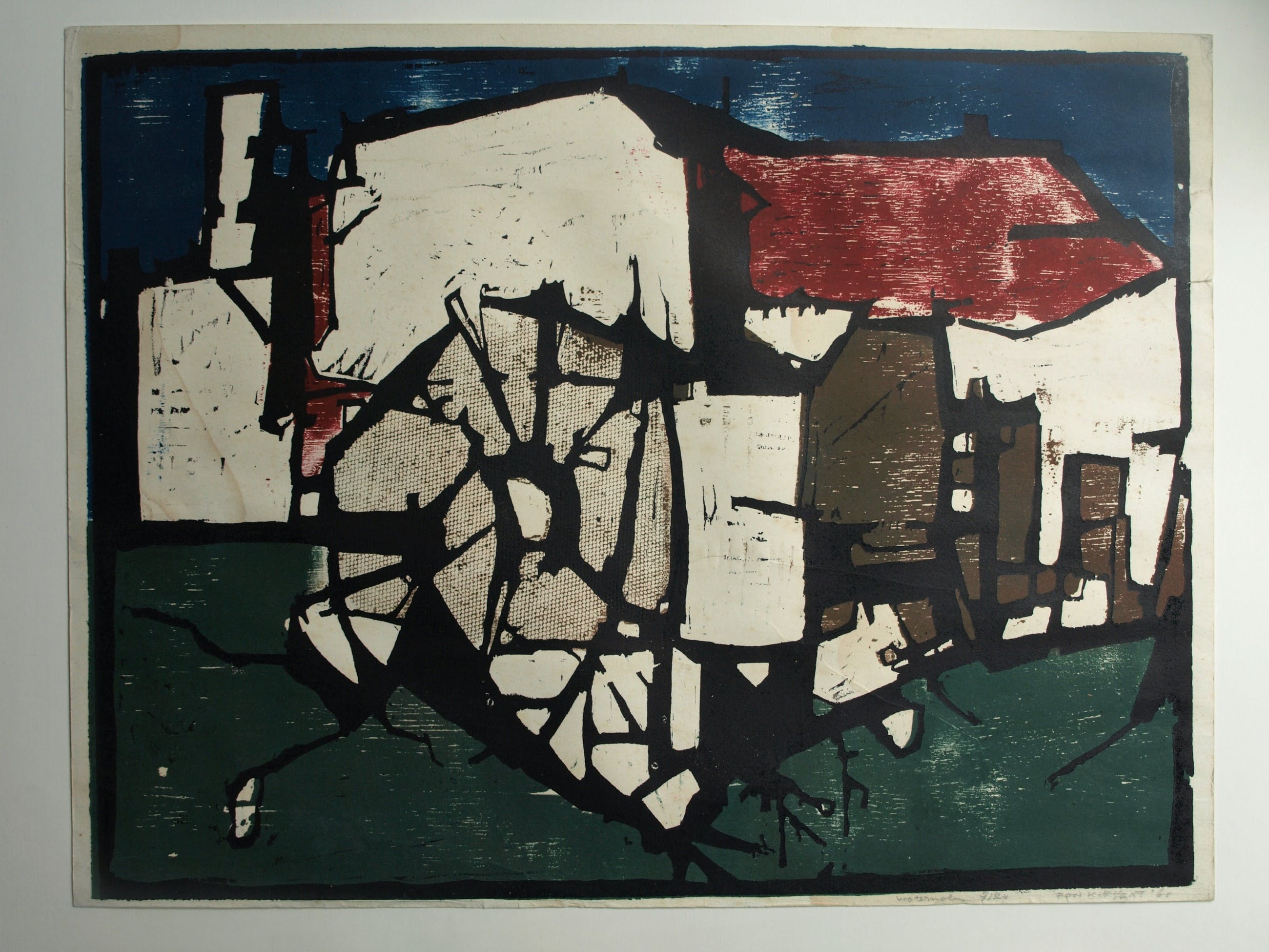 Een vroeg werk uit 1961 van de Nederlandse kunstenaar Fon Klement (1930-2000), getiteld “Watermolen”.
