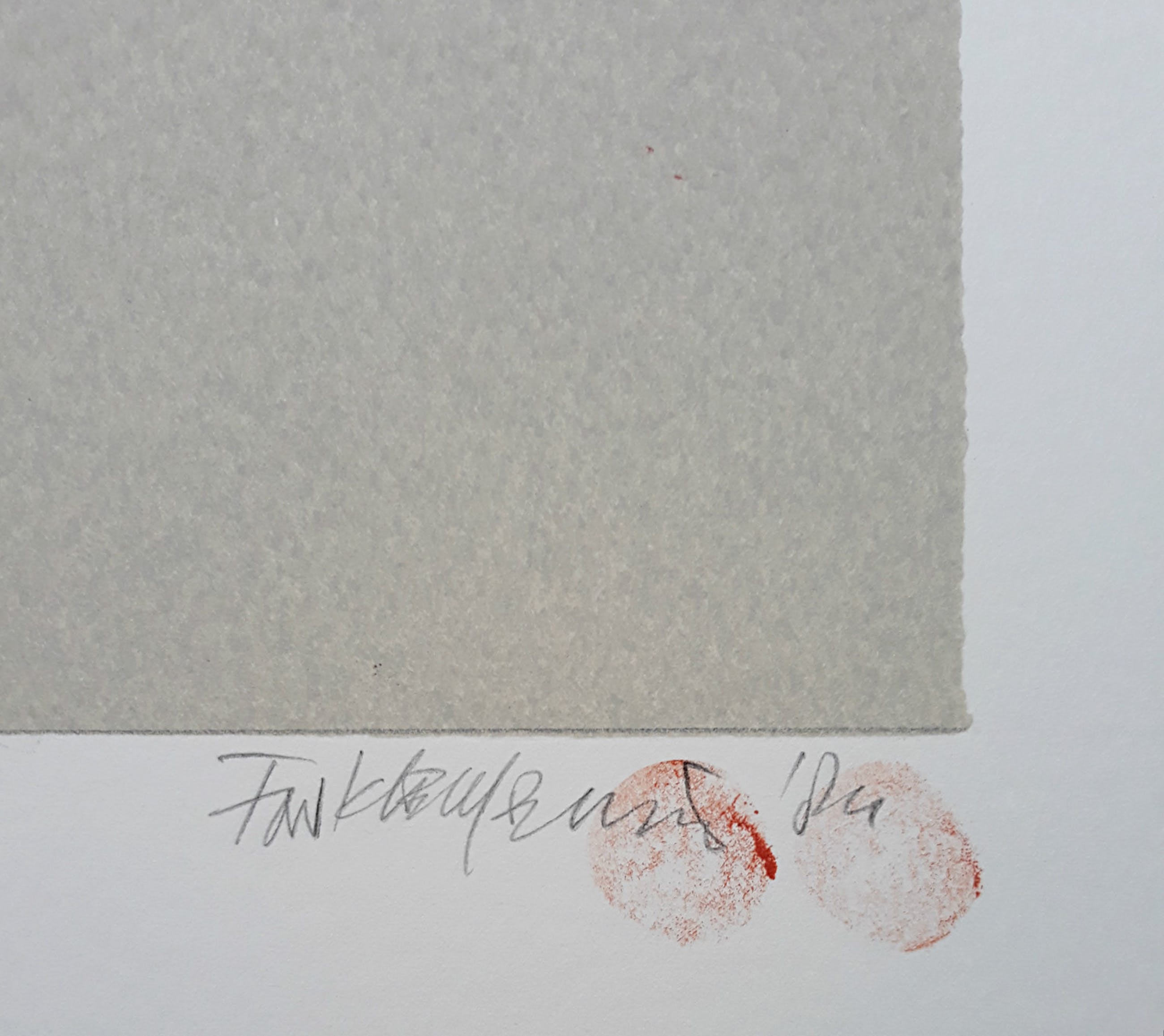 Karakteristiek, mooi werk van Fon Klement op zeer dik geschept papier. Met potlood gesigneerd, gedateerd (‘84), getiteld en genummerd (82/100). Afkomstig uit de kunstcollectie van ABNAMRO, in uitstekende conditie.
