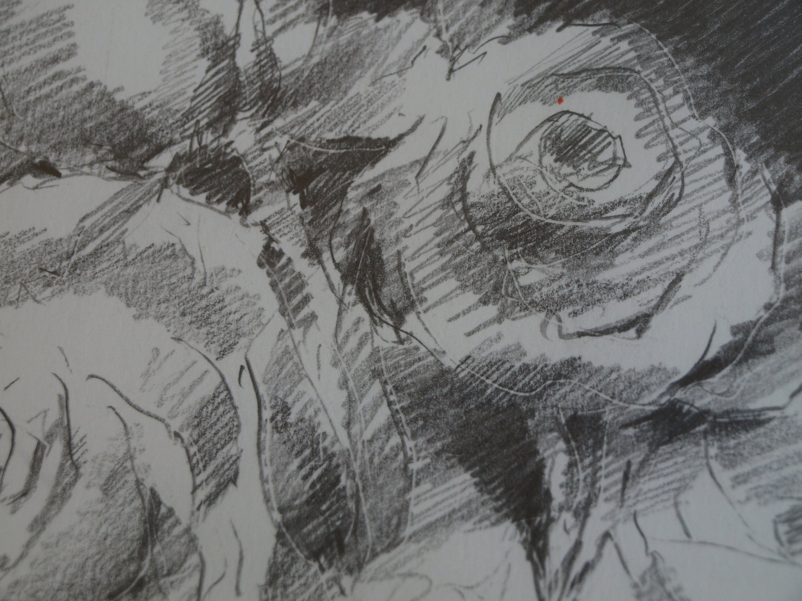 Een ingelijste tekening van de Nederlandse kunstenaar Fon Klement (1930-2000), gemaakt op 69-jarige leeftijd in het jaar van zijn overlijden.
